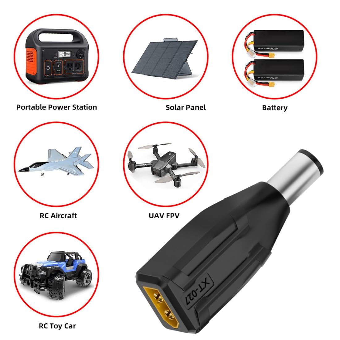 1) NOTA: nella confezione è incluso un solo adattatore. 2) Adattatore di alimentazione da XT60 a DC, progettato per collegare un saldatore TS100 a una porta di uscita XT60 per accendere la batteria. 3) Adattatore XT60 adatto per video FPV, droni, pannelli solari, veicoli e giocattoli telecomandati, ecc. 4) È molto conveniente per coloro che volano multirotori FPV e un must per le riparazioni in loco. 5) Materiale di alta qualità, resistenza alle alte temperature e buon isolamento, plug and play, facile da usare.