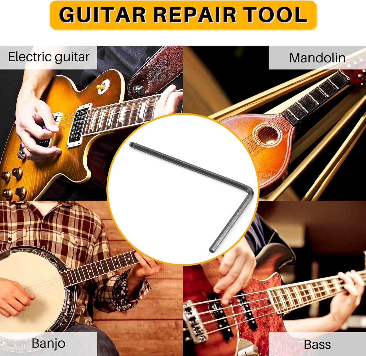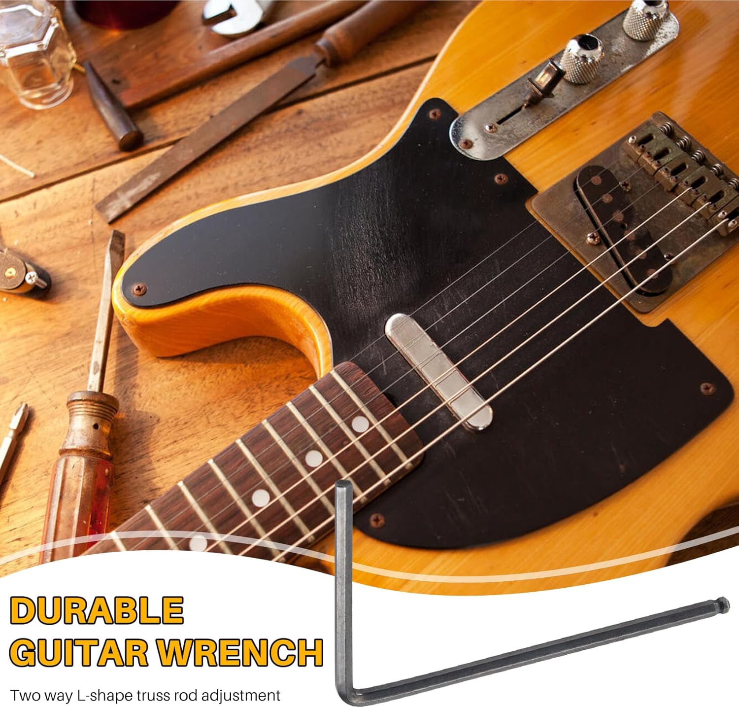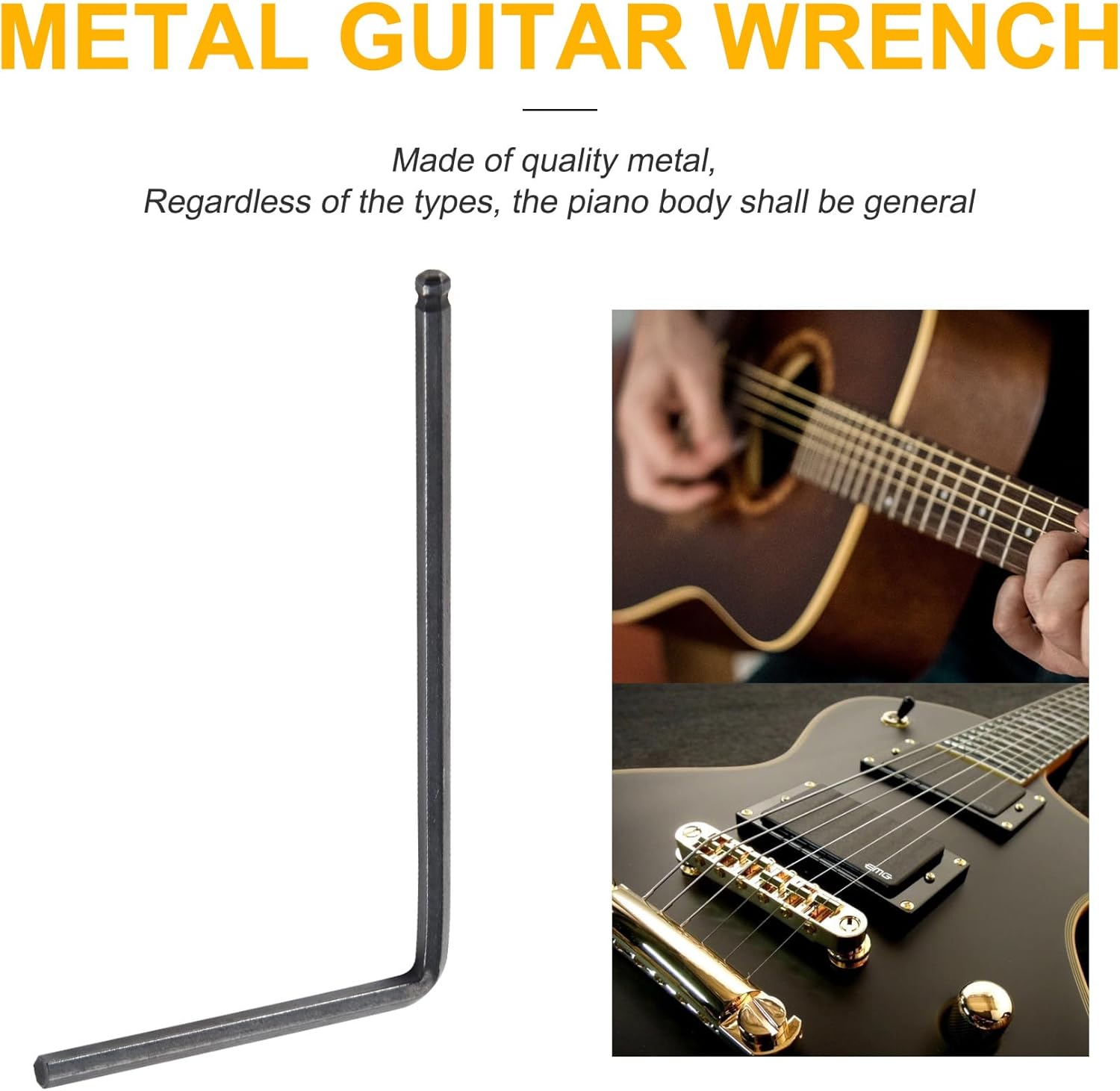 Chiave per collo specializzata per foro di regolazione del collo della chitarra relativamente profondo Regolazione truss a forma di L a due vie Per e la maggior parte della chitarra acustica Regola il manico della chitarra, adatto per chitarra , indipendentemente dal tipo, il corpo del pianoforte deve essere generale Materiale: metallo