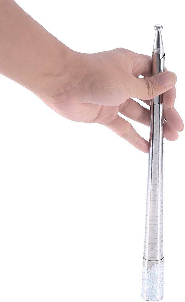 Mit Sternchenfolie passungenau umwickelt. Sehr instabil, wenn der Stick ausgefahren ist, da nur aus dünnem Blech. Umständlich auch das zurückschieben, wenn err wieder geschlossen werden soll. Für mich keine gute Qualität, höchstens ein Gimmik.