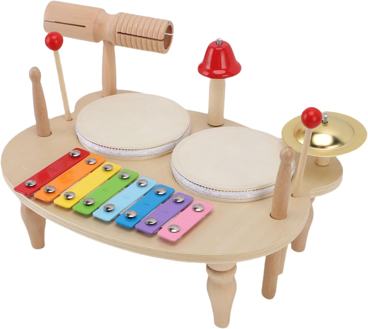 [SET PER L'APPRENDIMENTO DELLE PERCUSSIONI IN LEGNO] Questa combinazione multistrumento sviluppa il senso del ritmo durante il periodo della musica in età prescolare. [GIOCATTOLO PER LO SVILUPPO DELLE ABILITÀ MOTORIE] Le azioni di percussione del martello migliorano la coordinazione occhio-mano per i bambini dai 2 ai 5 anni nelle attività di gruppo dell'asilo nido. [ESPLORAZIONE MUSICALE INTERATTIVA] Le parti di percussioni codificate a colori introducono la differenziazione del suono attraverso sessioni di gioco di 10 minuti. [DESIGN EFFICIENTE IN SPAZIO] L'ingombro compatto con base rinforzata in ferro si adatta ai tappetini da gioco della cameretta o agli scaffali delle aule. [KIT STARTER COMPLETO] Include 2 mazze in legno e cuscinetti antiribaltamento per l'installazione immediata a casa o all'asilo.