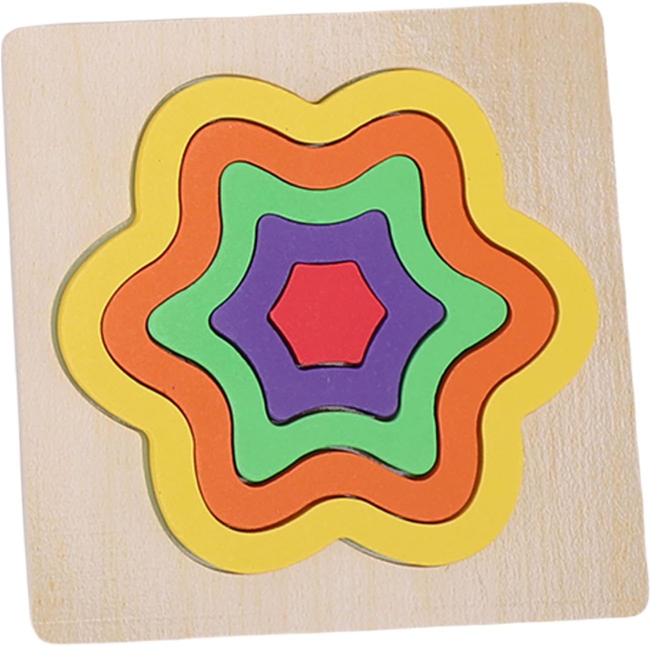 [6 FORME GEOMETRICHE E COLORI VIBRANTI] - Esplora 6 diverse forme 3D in colori vivaci per un riconoscimento accattivante di forme e colori. [ABBINAMENTO 3D E ABILITÀ MOTORIE FINE] - Migliora la coordinazione occhio-mano con grossi pezzi di legno su una tavola di tiglio. [GIOCATTOLO PER L'APPRENDIMENTO IN CASA E IN ETÀ PRESCOLARE] - Migliora l'educazione precoce attraverso il gioco da solista o sessioni interattive con i genitori. [SVILUPPO SENSORIALE E COGNITIVO] - Stimola la risoluzione dei problemi, la corrispondenza dei modelli e le capacità di osservazione durante il gioco. [COSTRUZIONE ROBUSTA IN TIGLIO] - Pezzi durevoli con finitura lucida per un uso duraturo, include 30 pezzi del puzzle.