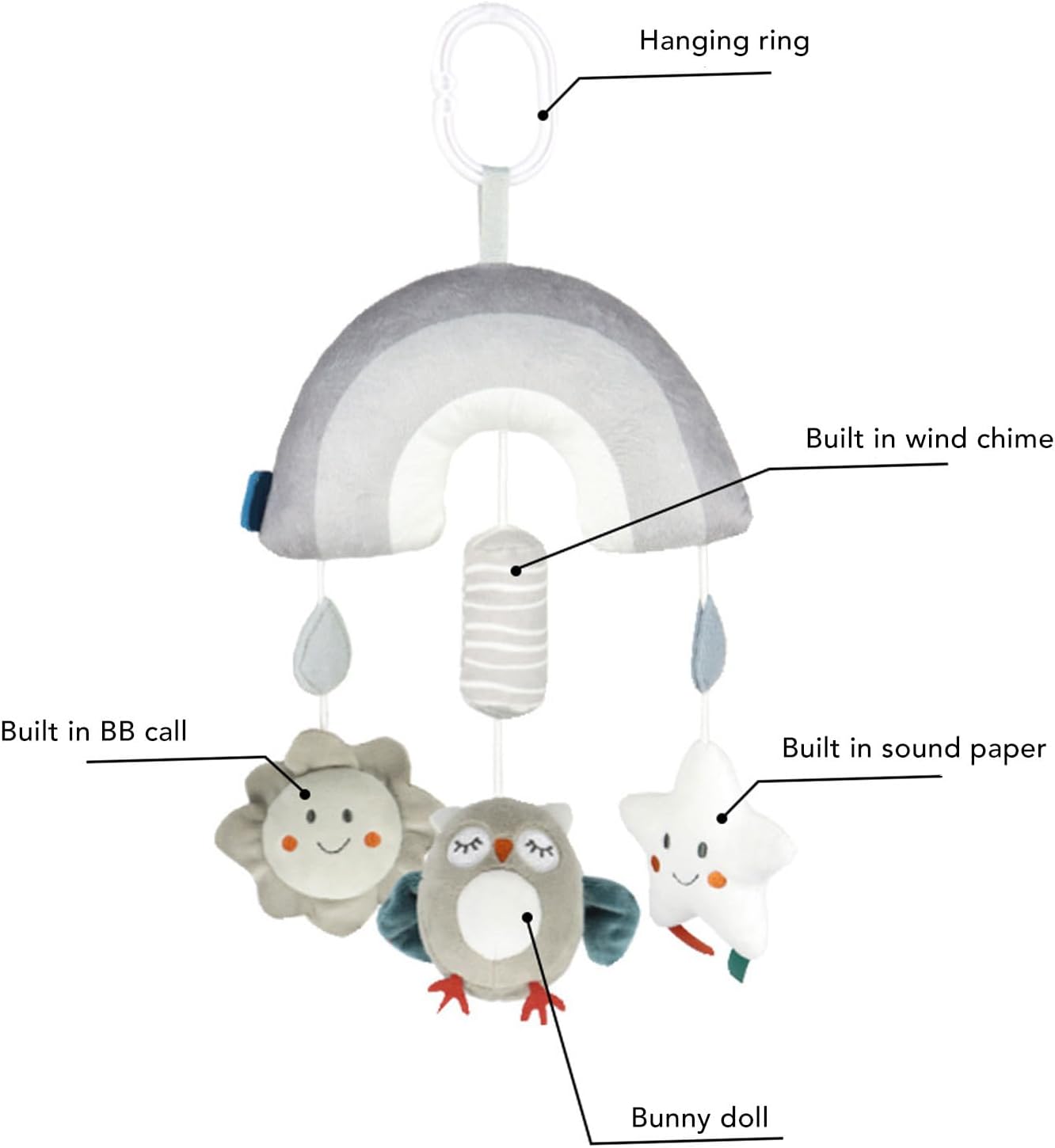 Simpatico campanello a con animali: colori vivaci e adorabili disegni di animali catturano l'attenzione del tuo bambino, stimolando lo sviluppo visivo e uditivo. Leggero e portatile: il design compatto e leggero consente un facile trasporto e utilizzo sia all'interno che all'esterno, rendendolo comodo per l'intrattenimento durante il viaggio. Materiale morbido peluche: il giocattolo sospeso in peluche è costruito con materiali ecologici e non irritanti per garantire la sicurezza e la salute del tuo bambino. Design multifunzionale: può essere facilmente appeso a un passeggino o a una culla, offrendo un facile intrattenimento per il tuo piccolo e promuovendo lo sviluppo sensoriale e motorio. Facile da pulire: il materiale lavabile consente una pulizia senza problemi, garantendo che il prodotto rimanga pulito, igienico e di facile manutenzione per le mamme.