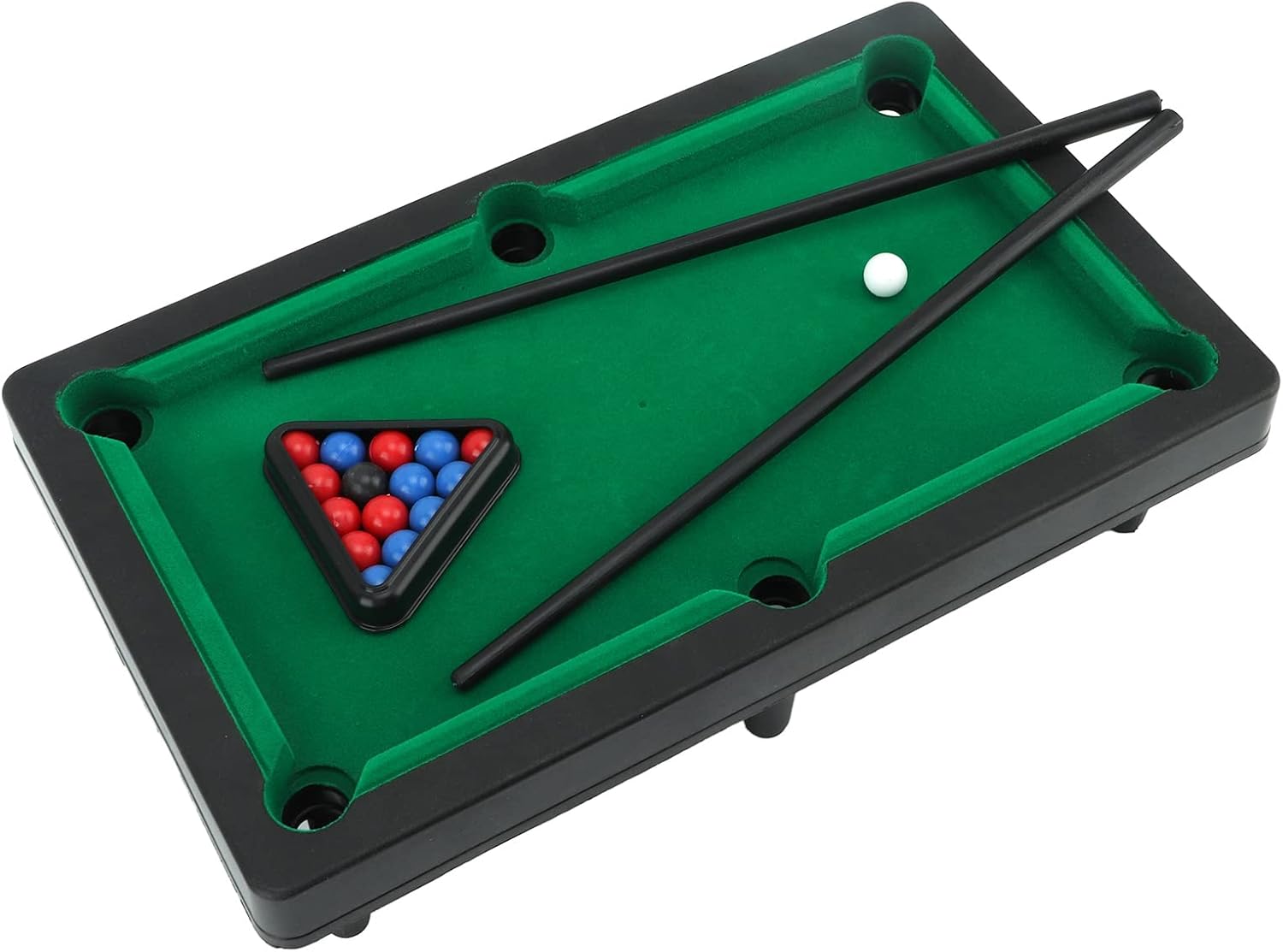 RISPARMIO DI SPAZIO: il set di giochi da biliardo in miniatura consente di risparmiare spazio ed è per i luoghi in cui non si dispone di spazio sufficiente per un tavolo da biliardo di dimensioni standard, come una sala giochi o il pavimento di una camera familiare. GIOCATTOLO INTERESSANTE: il mini gioco di biliardo da tavolo è un fantastico per bambini per concludere compleanni, vacanze o come ricompensa. È un divertente e può essere utilizzato come una fantastica aggiunta a qualsiasi scrivania. DIMENSIONI COMPATTE: il tavolo da biliardo in miniatura è di dimensioni compatte per garantire che i più piccoli ne traggano il massimo. Facile da trasportare e divertirsi in viaggio e può essere giocato su quasi tutte le superfici piane della casa. ROBUSTO E DUREVOLE: il gioco di biliardo in miniatura combina un design robusto con materiali di in grado di resistere a tutta la concorrenza. Ottimo per bambini dai 5 anni in su, tiene i bambini occupati per ore lunghe ed emozionanti. COORDINAZIONE OCCHIO MANO: il mini tavolo da biliardo esercita la vista dei giocatori e la coordinazione occhio-mano. Lascia che tuo figlio usi le mani e il cervello, giochi in coppia, promuova la comunicazione e migliori le sue abilità sociali.