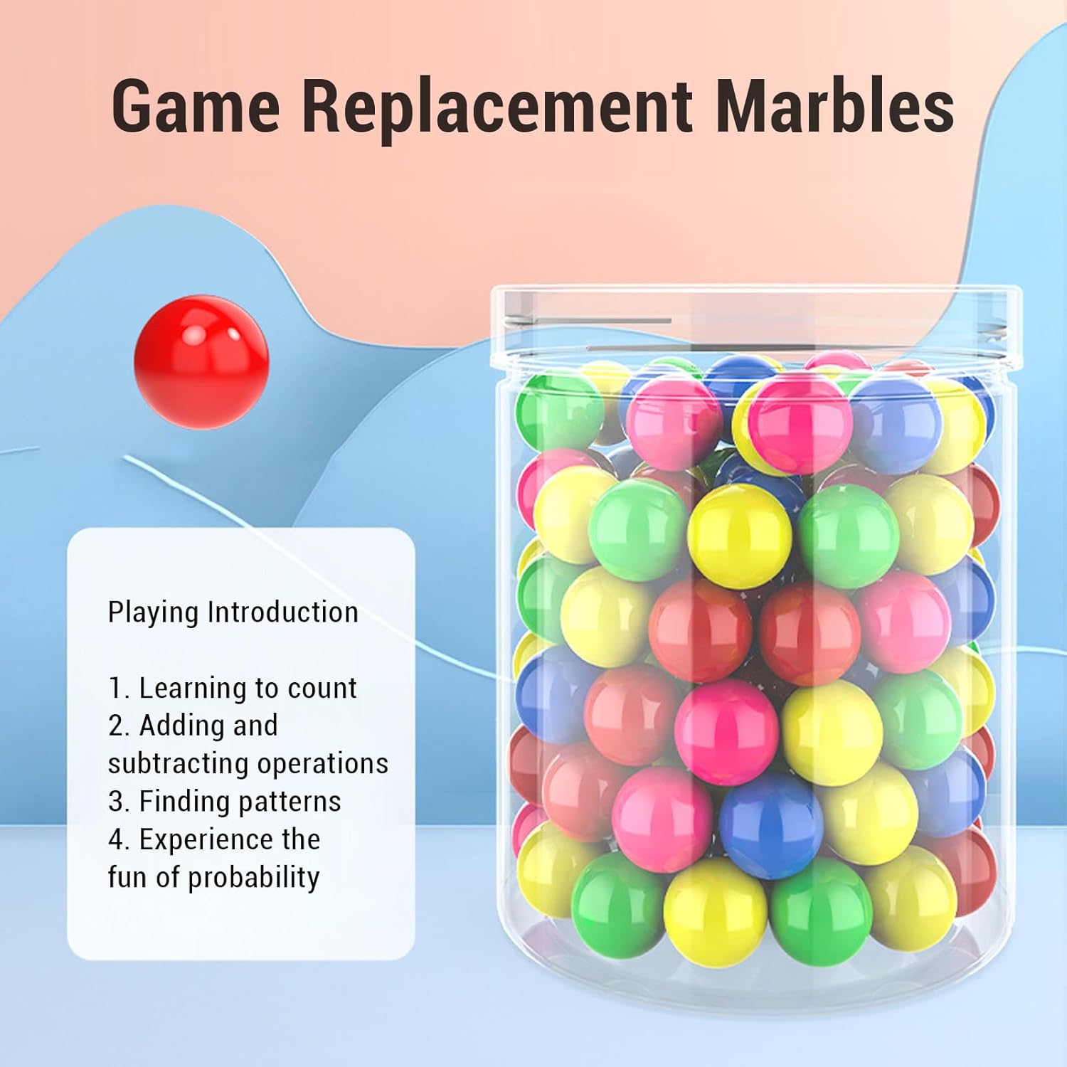 [Design impegnato e colorato] I colori vivaci migliorano l'apprendimento visivo e l'attrazione. [Strumento di insegnamento efficace] L'approccio pratico aiuta i bambini a comprendere i concetti matematici. [Materiale robusto e sicuro] realizzato in plastica stabile per sicurezza e durata. [Facile da salvare e trasportare] include una scatola di stoccaggio per lo stoccaggio organizzato e semplici mezzi di trasporto. [Abbondante cura per l'apprendimento versatile] 100 Conteggio delle palle varietà di simulazioni matematiche.