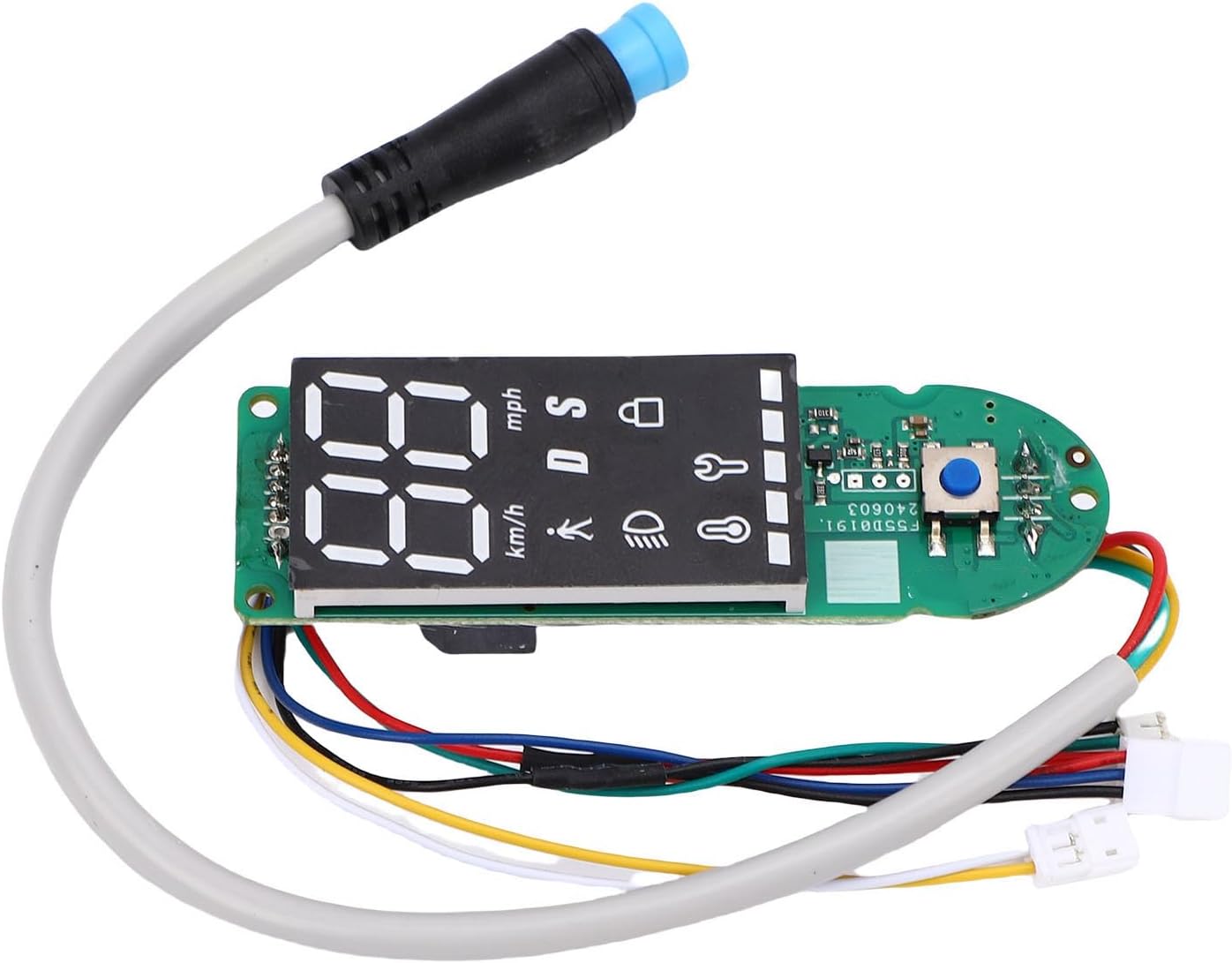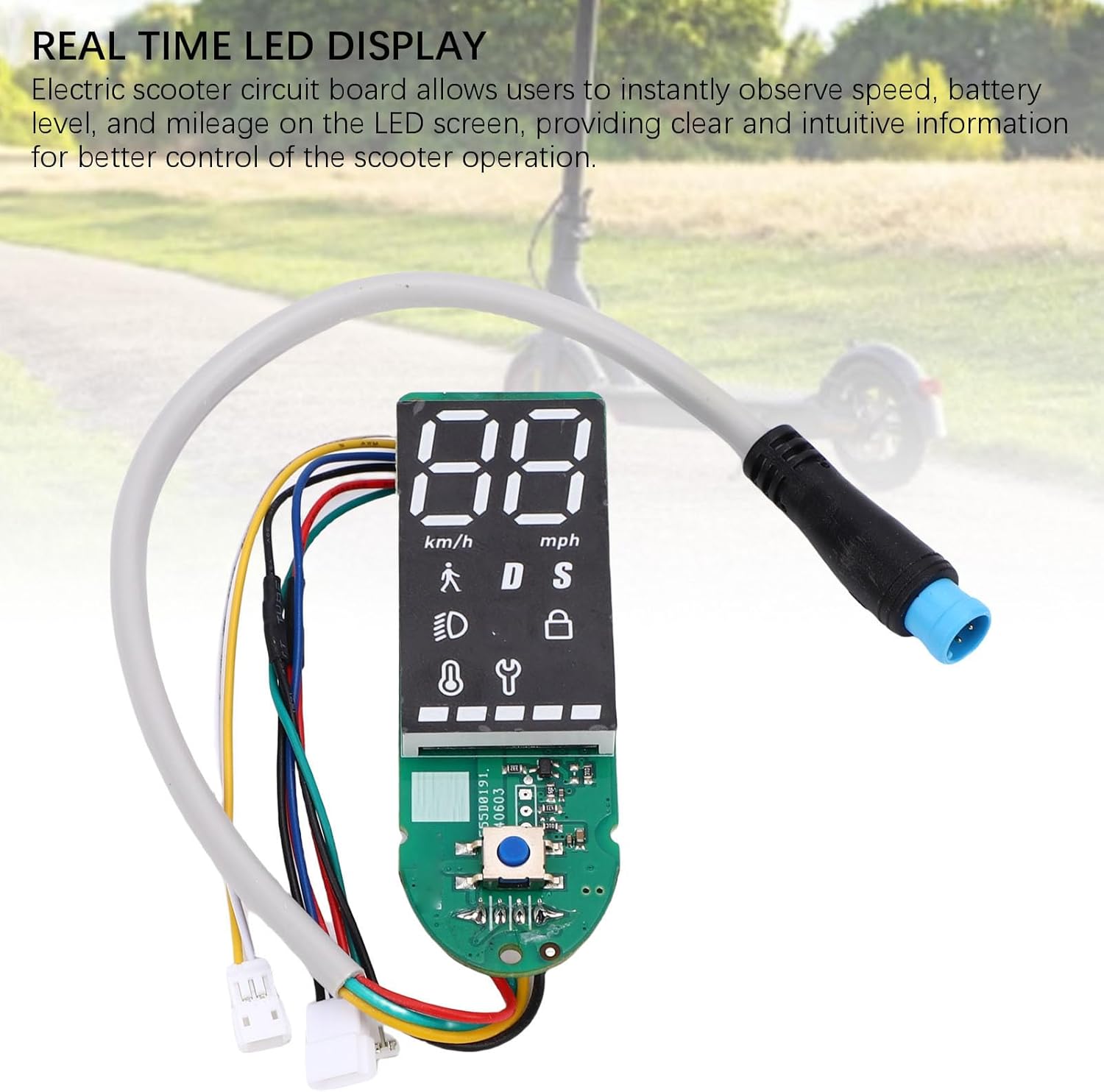 [Monitoraggio dei dati di guida in tempo reale] Questo circuito avanzato per scooter elettrico è dotato di schermo a LED luminoso che mostra chiaramente a colpo d'occhio il livello della batteria e il chilometraggio. l'interfaccia intuitiva ti consente di monitorare contemporaneamente tutti i parametri di guida critici garantendo un controllo migliore e un funzionamento più sicuro del tuo scooter elettrico. [Connettività intelligente] Migliora la tua esperienza di guida con la tecnologia integrata che si abbina facilmente al tuo smartphone. tramite app dedicate puoi accedere a impostazioni avanzate, personalizzare le preferenze di visualizzazione e ricevere avvisi di manutenzione trasformando il tuo scooter in un dispositivo connesso e intelligente. [Adatto per scooter Mi3] Progettata specificamente come cruscotto sostitutivo per scooter elettrici Mi3, questa scheda di controllo garantisce compatibilità perfetta e installazione plug-and-play.non sono necessarie modifiche complicate: sostituisci semplicemente la vecchia scheda e goditi prestazioni stabili e immediate con funzionalità migliorate. [Centro di controllo tutto in ] Il nostro design innovativo combina le funzioni di visualizzazione e controllo in un unico modulo semplificato. questa soluzione salvaspazio elimina l'ingombro fornendo allo stesso tempo tutte le interfacce operative necessarie, rendendo il tuo scooter più efficiente e facile da usare che mai. [Aggiornamento Premium per prestazioni migliorate] Essendo un componente sostitutivo di alta qualità, questa scheda di controllo offre prestazioni e affidabilità superiori rispetto alle parti di serie. la resistente struttura in PVC resiste all'uso quotidiano, mentre i circuiti aggiornati garantiscono letture accurate e controlli reattivi per un'esperienza di guida più .