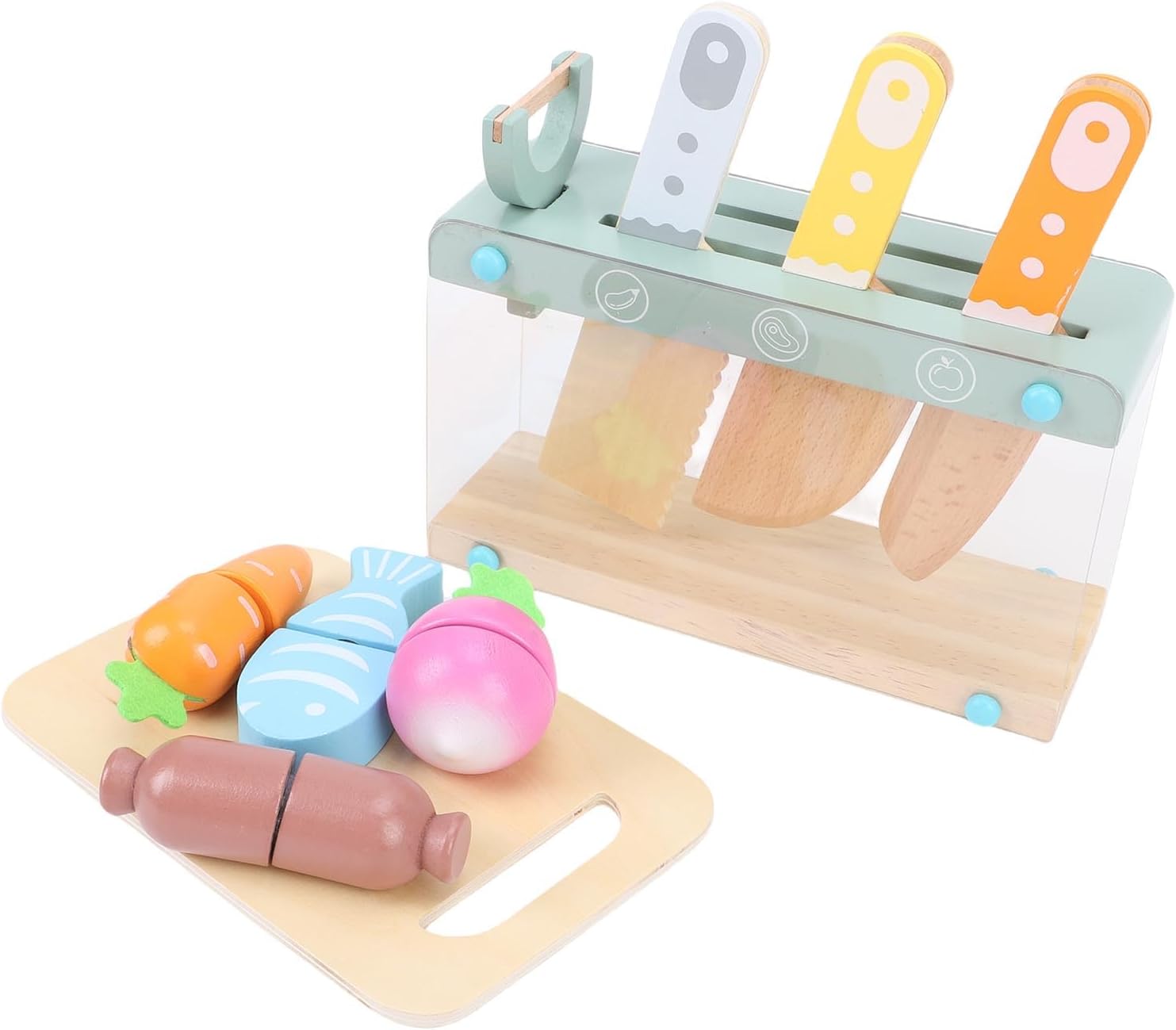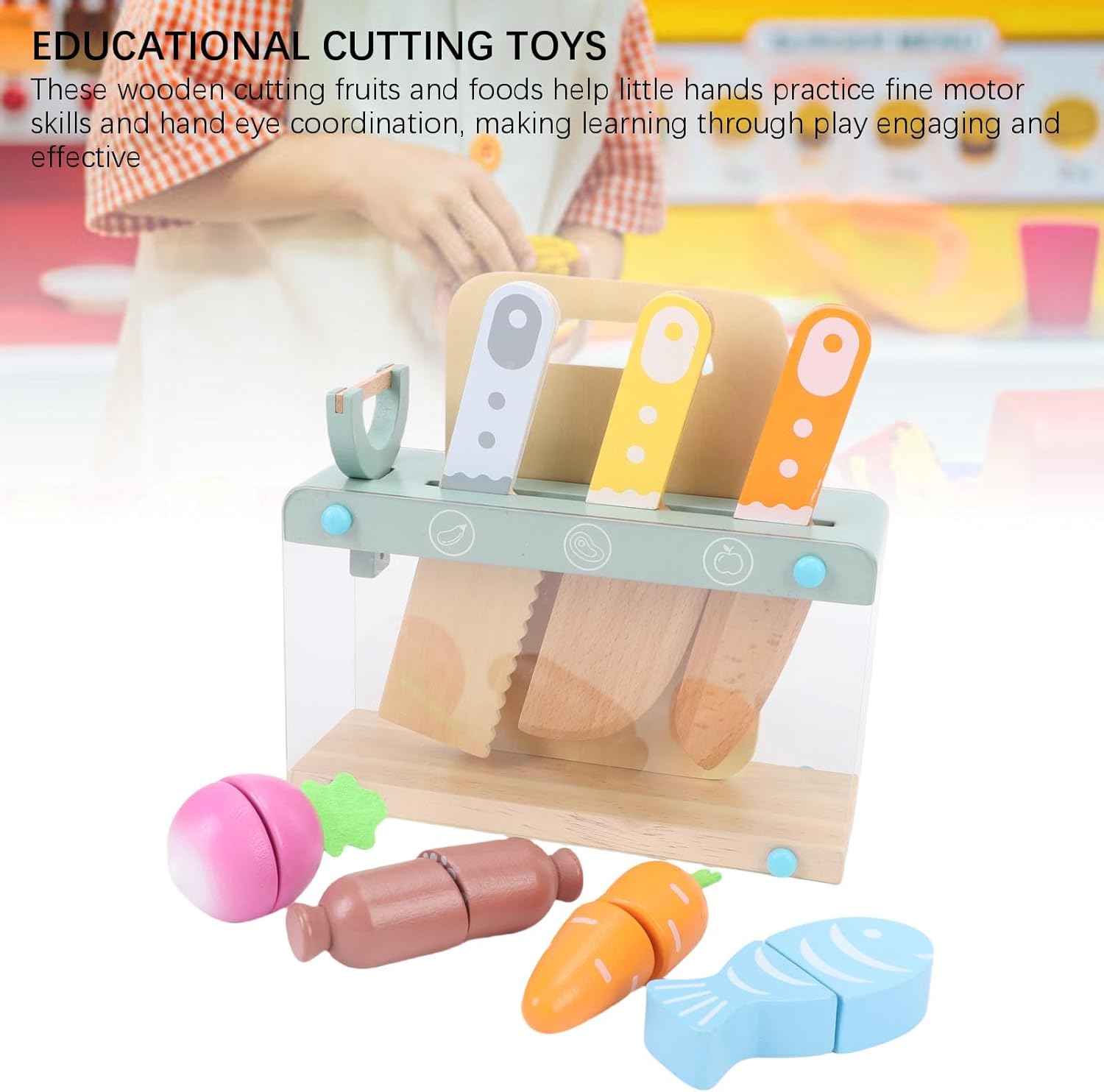[Gioco di ruolo creativo] Incoraggia scenari di cucina fantasiosi per i bambini mentre sviluppa abilità sociali e legame con i genitori. [Divertimento educativo] Promuove le capacità motorie e la coordinazione occhio-mano attraverso attività di taglio coinvolgenti con frutti di legno e prodotti alimentari sicuri. [Materiali di qualità] Realizzato in resistente legno di faggio per un esterno liscio, garantendo un'esperienza di gioco e piacevole. [Sviluppo delle abilità] Gli oggetti dai colori vivaci introducono forme, colori e nomi di alimenti, migliorando le prime abilità linguistiche durante il gioco. [ per bambini dai 2 ai 10 anni] Progettato per consentire ai giovani chef di esplorare la propria creatività culinaria, rendendo la preparazione dei pasti fantasiosa e divertente.