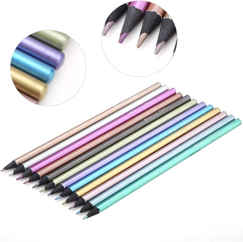 [Brilliant Metallic Colours] - intraprendi un viaggio colorato con queste matite colorate metalliche. Il core di colore metallico lucido porta un'esplosione di brillantezza alle tue opere d'arte. [Durevoli e facili da affilare] - Queste matite sono progettate per resistere alla rottura, garantendo un'esperienza da colorare senza soluzione di continuità. Affilali senza sforzo colorazione precisa. [Materiali]-Realizzati con legno , queste matite sono ecologiche e non. Divertiti a colorare con una coscienza chiara. [Affidamento Effetto colore] - Aggiungi un tocco di scintillio alla tua opera d'arte con queste matite metalliche. Il nucleo metallico crea un effetto brillante e scintillante, rendendo vivi i tuoi disegni. [Evidenzia i tuoi capolavori] - Usa queste matite per evidenziare elementi in metallo lucido nelle tue opere d'arte. Sono per creare punti salienti e aggiungere profondità ai tuoi disegni.