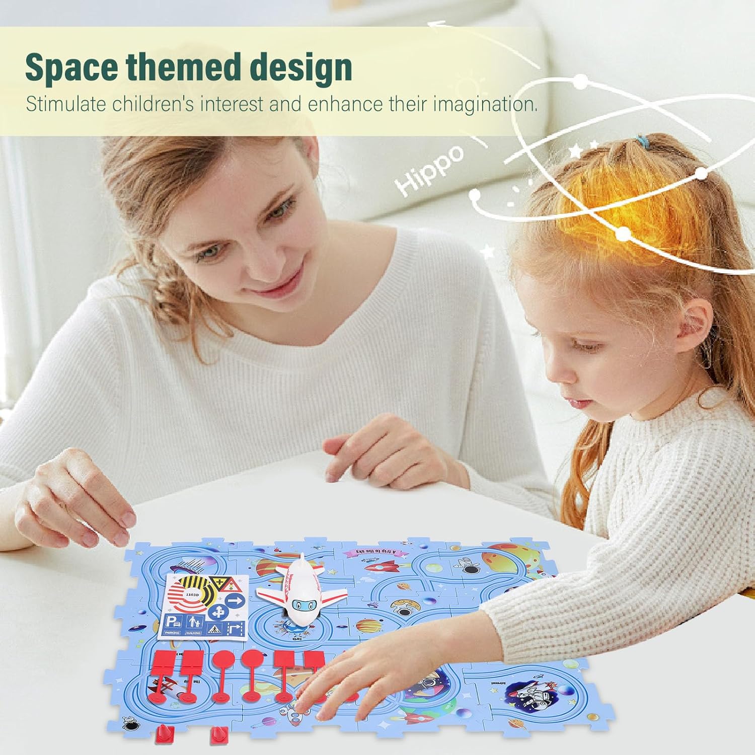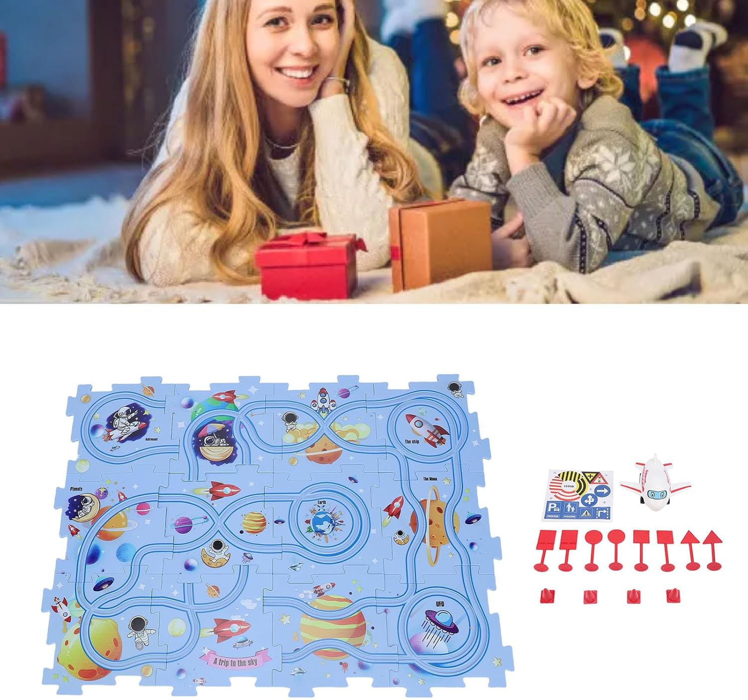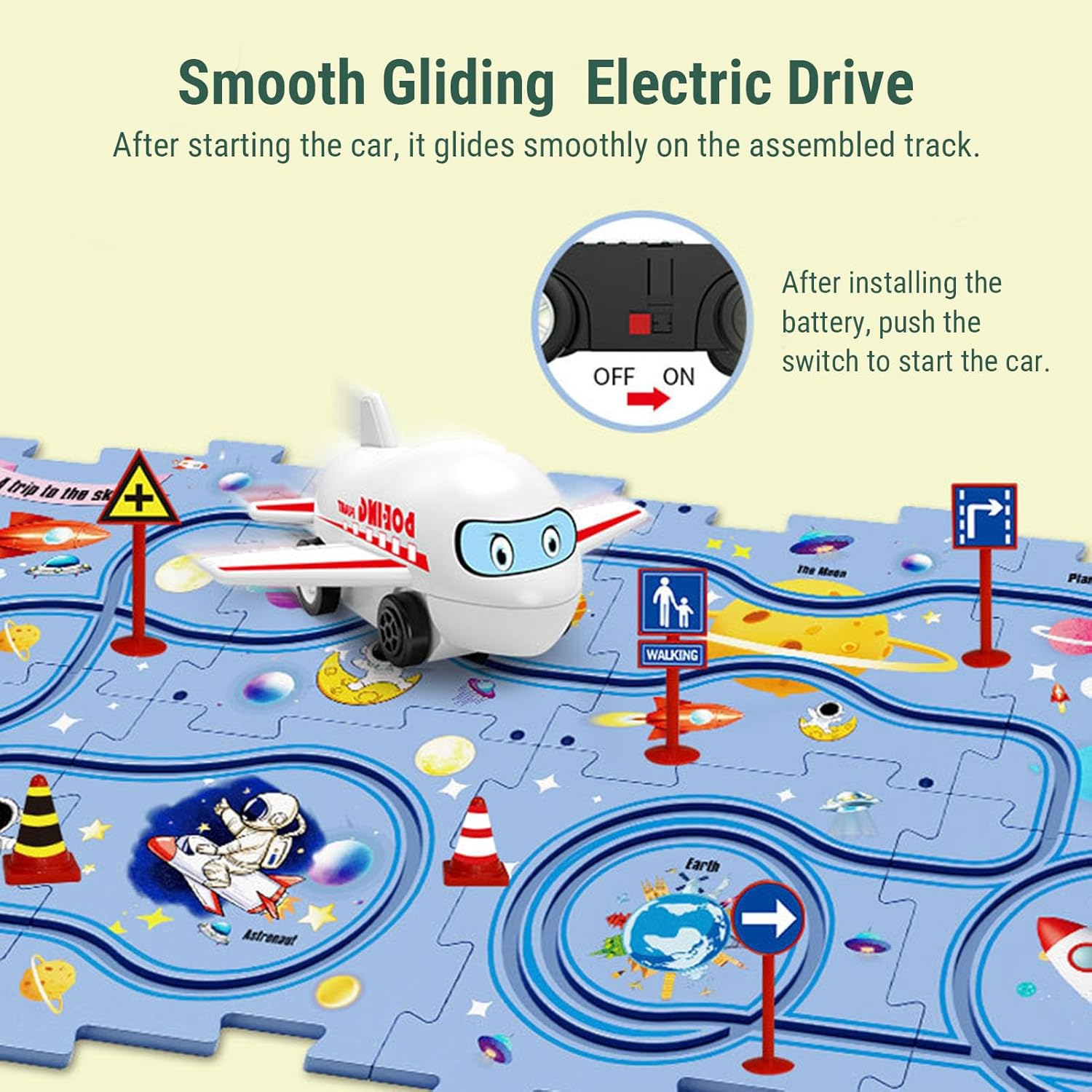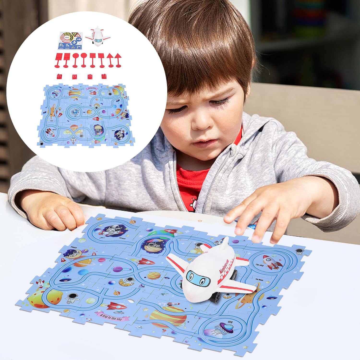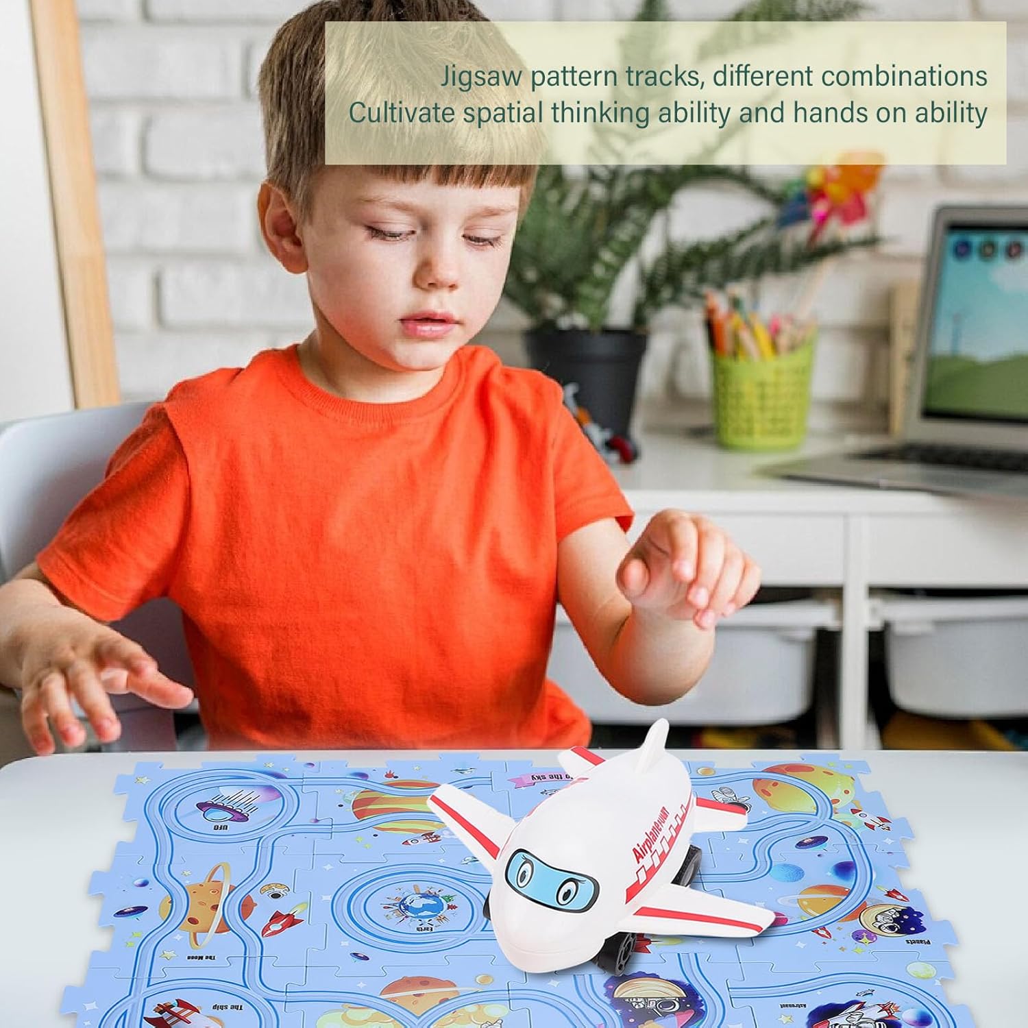 Design a tema spaziale: accendi l'interesse di tuo figlio per l'esplorazione dello spazio con scene spaziali fantasiose con l'universo, i pianeti e gli astronauti. Educazione e divertimento combinati per migliorare la cognizione e l'immaginazione. Assemblaggio dei binari del puzzle: incoraggia il pensiero spaziale e la destrezza manuale con la struttura del puzzle che consente ai bambini di assemblare liberamente i binari. Ogni combinazione porta nuove sfide. Interattivo e divertente: con un piccolo modello di aeroplano e accessori per binari rossi, è possibile condurre esperimenti dinamici sui binari, migliorando l'interattività e il divertimento del gioco. Materiale sicuro: realizzato in plastica di alta qualità, tutte le parti del set da gioco hanno bordi lisci per garantire la sicurezza dei bambini durante il gioco. I genitori possono sentirsi più a loro agio. Giocattolo educativo multifunzionale: combina puzzle, costruzione di binari e ragionamento logico per esercitare l'attenzione dei bambini, la coordinazione occhio-mano e le capacità di risoluzione dei problemi, ideale per l'educazione precoce e l'allenamento del cervello.