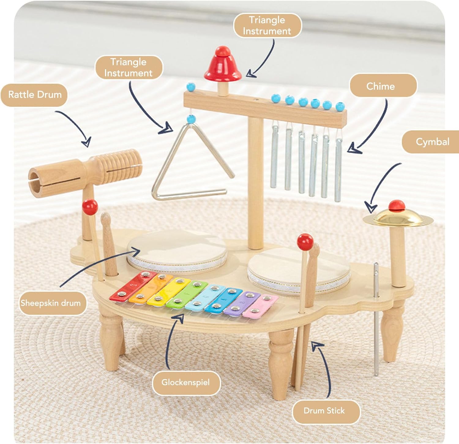[Sviluppare abilità motorie] Gli strumenti a percussione aiutano a migliorare il coordinamento degli occhi e le abilità motorie nei bambini mentre creano musica. [Varietà di strumenti] La stazione di musica per bambini comprende tamburi, glockenspiel, cartello, campana e piatti per un divertimento musicale infinito. [Educazione globale] progettata per ispirare i bambini, questo set di strumenti fornisce un'educazione precoce e l'illuminazione intellettuale. [Sicuro e resistente] Realizzato in robusto legno e ferro, questo set musicale garantisce un gioco sicuro per i più piccoli mentre esplorano il mondo della musica. [Spark creatività] Incoraggiando i bambini a esplorare la musica, questo set stimola la creatività e l'immaginazione attraverso interazioni giocose.