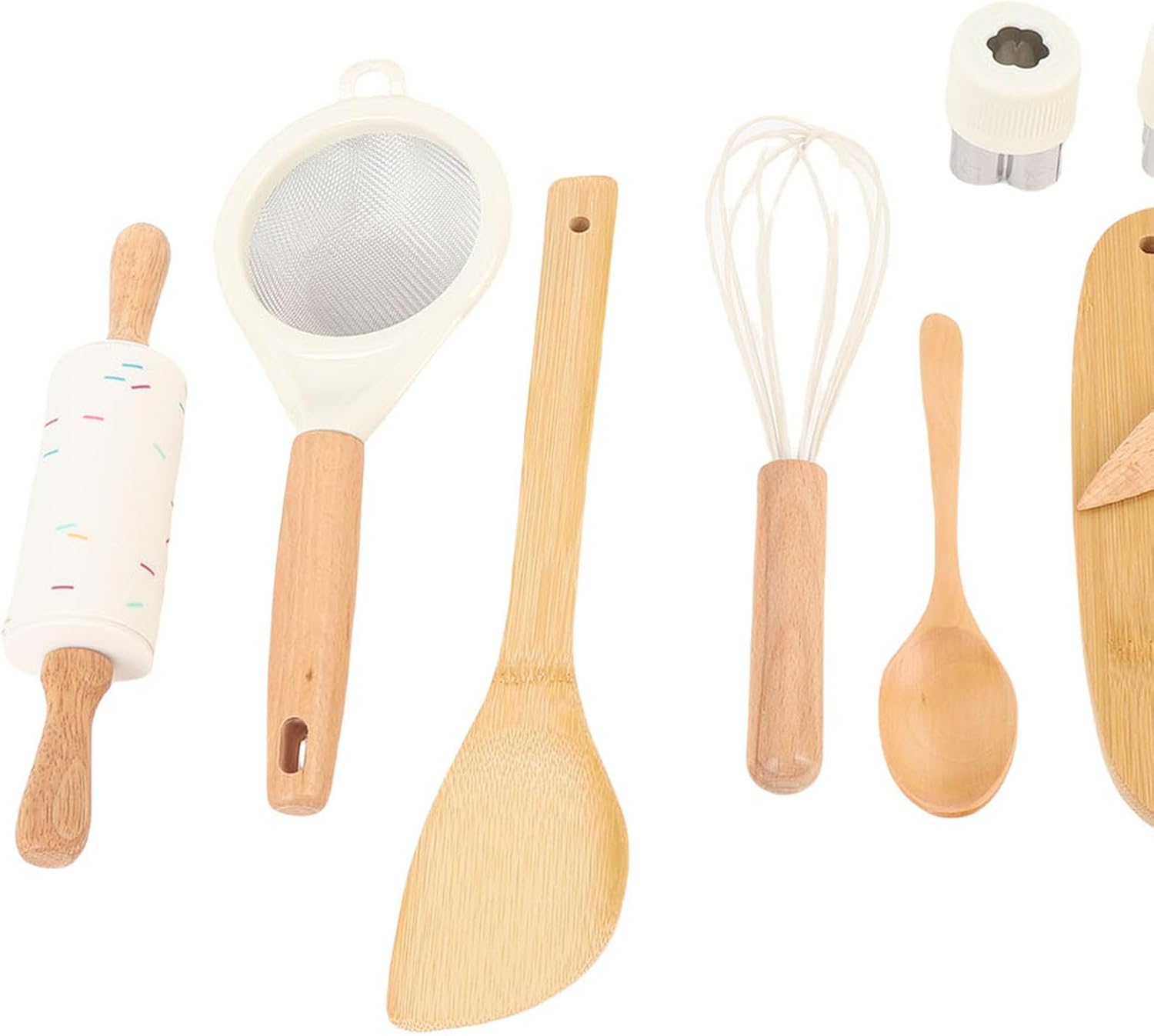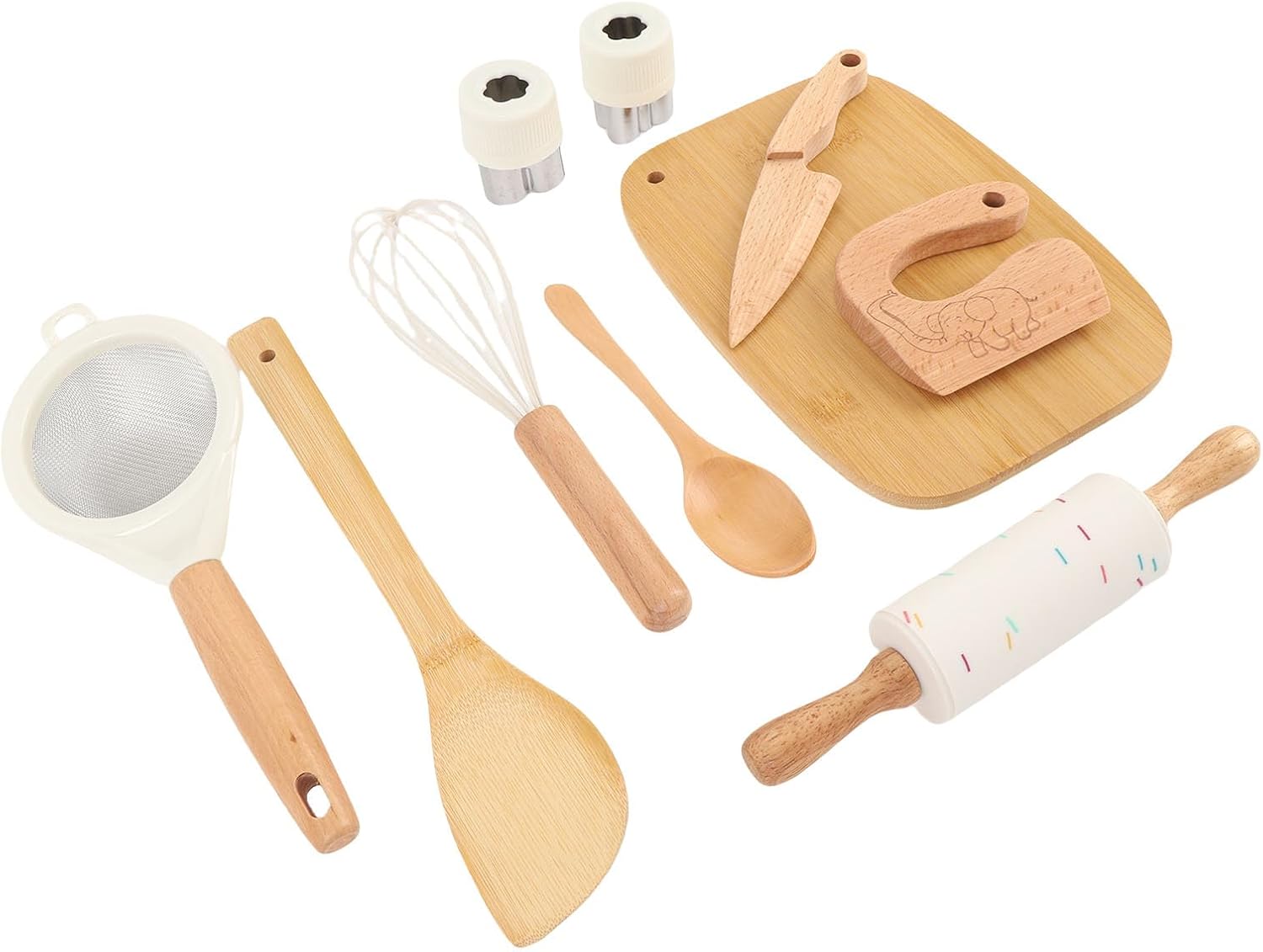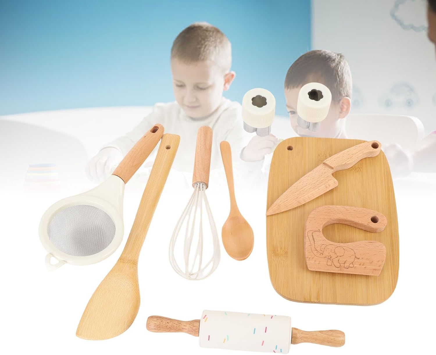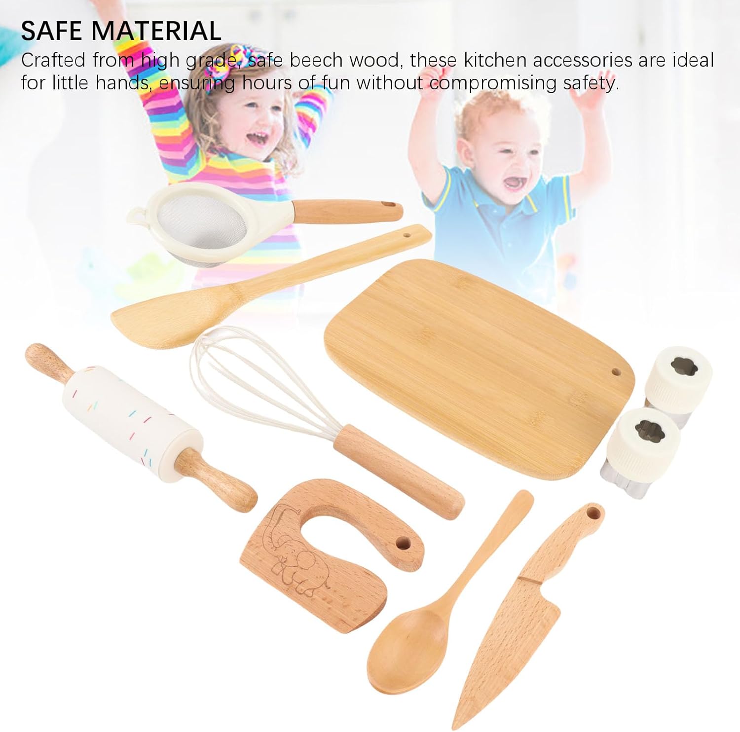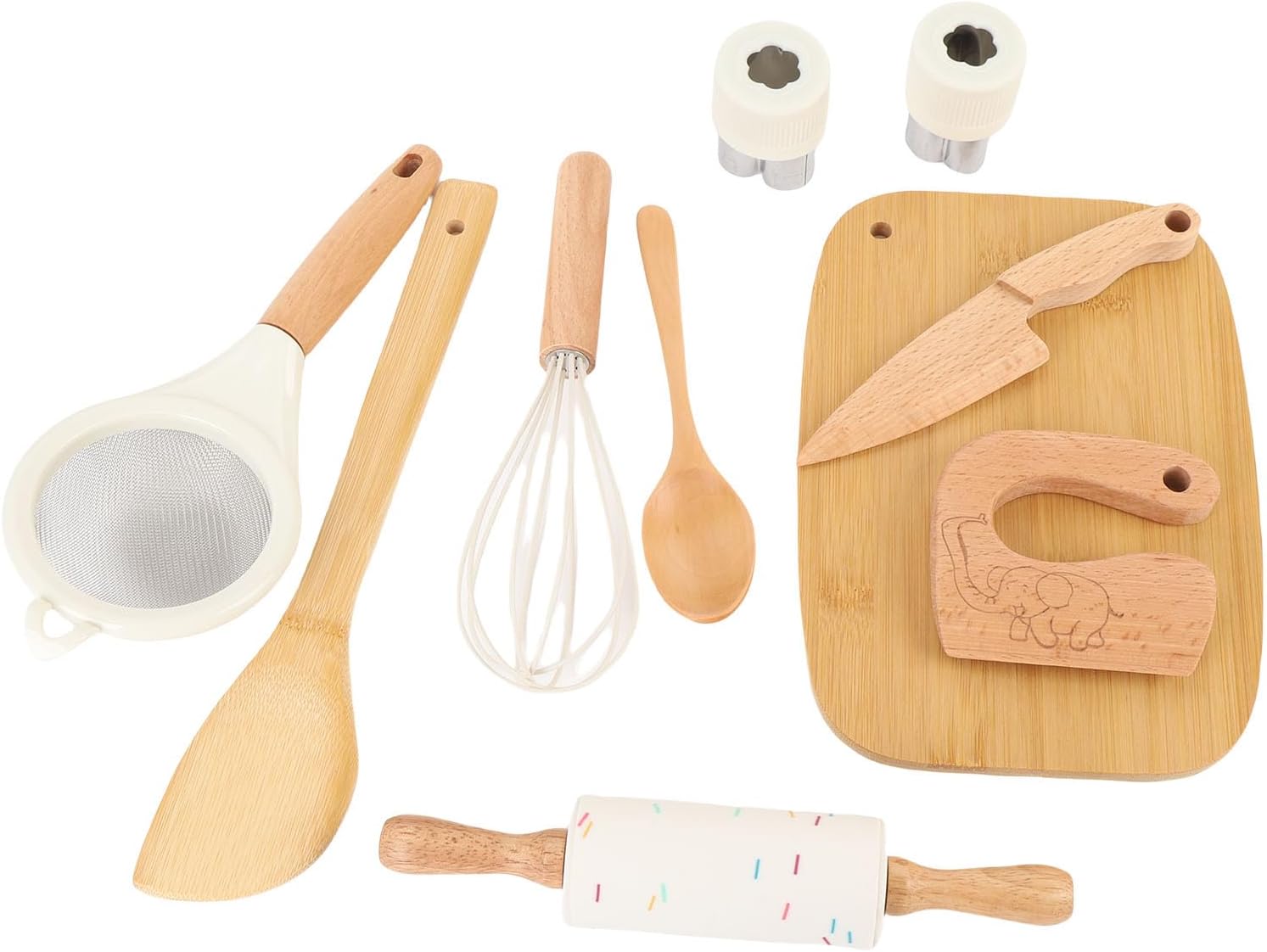 [Completa finta set di cucina] Questo set di coltelli per bambini in legno da 10 pezzi include tutto ciò che il tuo piccolo chef ha bisogno per iniziare la loro avventura culinaria. Con un robusto tagliere, coltello per bambini, cucchiaio, mattarello e altri strumenti da cucina, questo set offre infinite opportunità per il gioco fantasioso. per i bambini di età pari o superiore a 3+ per esplorare il divertimento della cucina mentre sviluppano importanti abilità di vita in un ambiente si [Costruzione e resistente] Realizzato in legno di faggio premium con bordi lisci e arrotondati, il nostro set da cucina per bambini garantisce la massima sicurezza per le mani piccole. Il design non tossico e senza schegge soddisfa rigorosi standard di sicurezza mantenendo una durata eccezionale. Guarda mentre tuo figlio gode di ore di cucina senza bordi o materiali dannosi. [Strumento di sviluppo educativo] Più dei semplici giocattoli, questi accessori da cucina aiutano a sviluppare sottili capacità motorie, coordinamento occhio-mano e capacità cognitive. I bambini imparano la preparazione del cibo, la sicurezza della cucina e le abitudini alimentari sane attraverso il gioco coinvolgente. Il design realistico incoraggia il gioco di ruolo che costruisce fiducia e abilità di vita pratiche. [Attività di legame familiare divertente] Guarda l'immaginazione di tuo figlio prendere vita mentre ospitano il proprio spettacolo di cucina o prepara i pasti finti per la famiglia. Questo Playset interattivo crea meravigliose opportunità per i genitori e i fratelli di unirsi al divertimento. Sparca la creatività e la narrazione mentre si fanno ricordi preziosi insieme in cucina. [ ideale per i giovani chef] splendidamente progettato e crementosamente realizzato, questo set di giochi di cucina completo è un per compleanni, vacanze o qualsiasi occasione speciale. Adatto a ragazzi e ragazze, incoraggia il gioco mentre soddisfa tutti i bisogni di sviluppo della prima infanzia. La finitura in legno naturale e il design realistico delizieranno qualsiasi aspirante giovane cuoco.