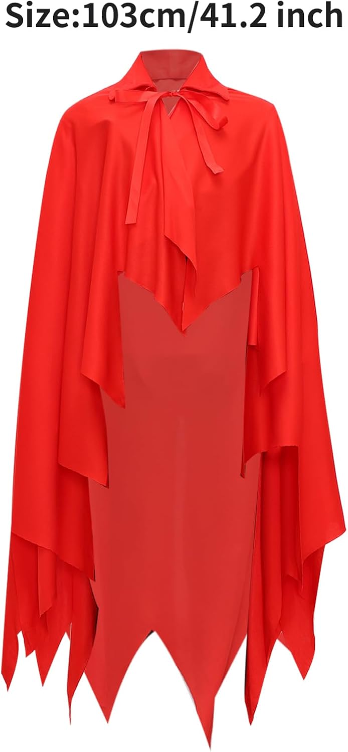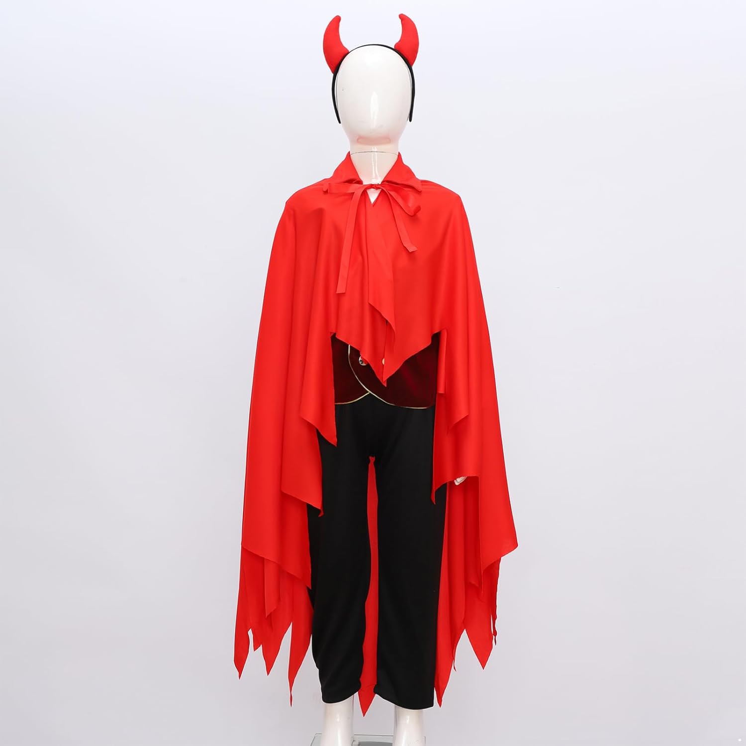 CHICTRY Mantello Rosso per Costume Di Halloween + Corna da Diavolo Su Cerchietto Mantello da Vampiro Mantello da Strega Collo Alto per Carnevale Festa A Tema