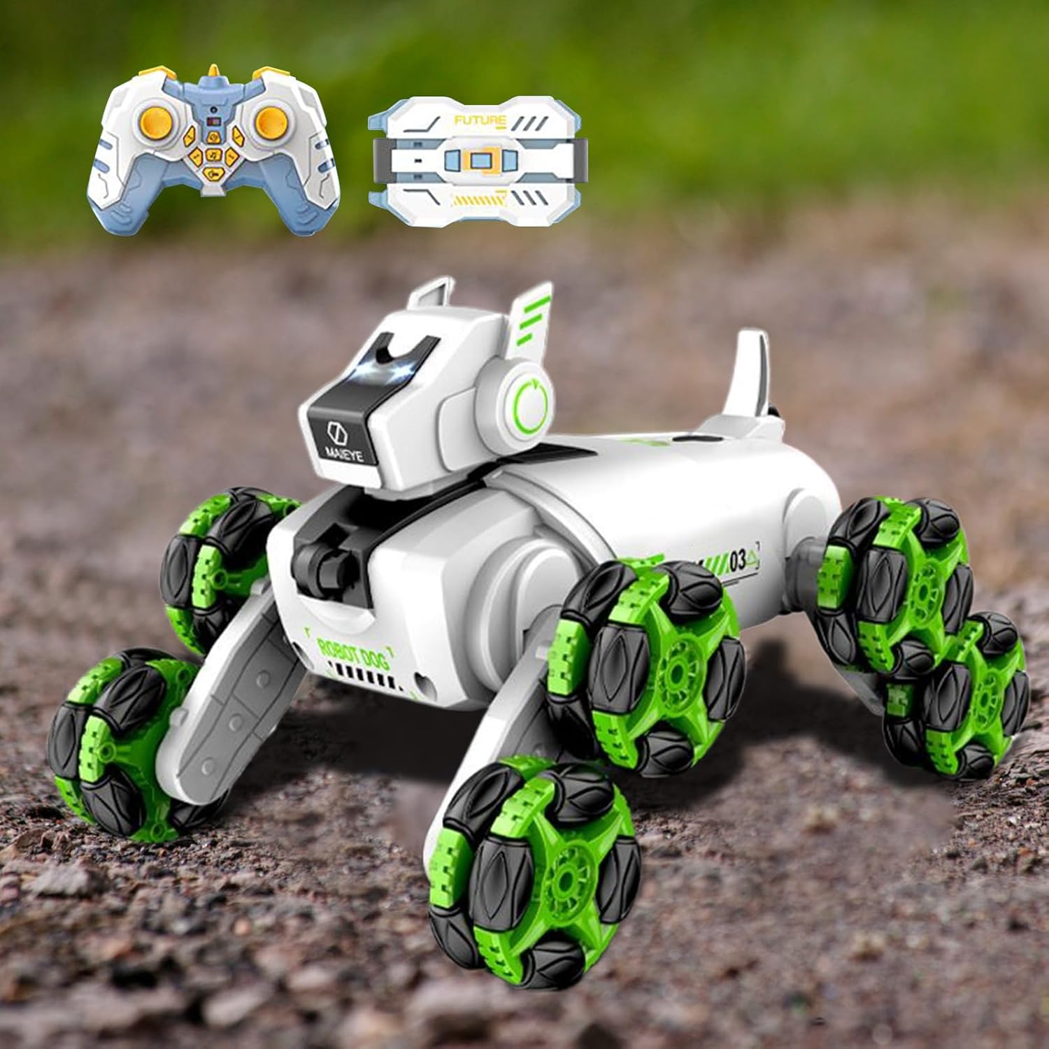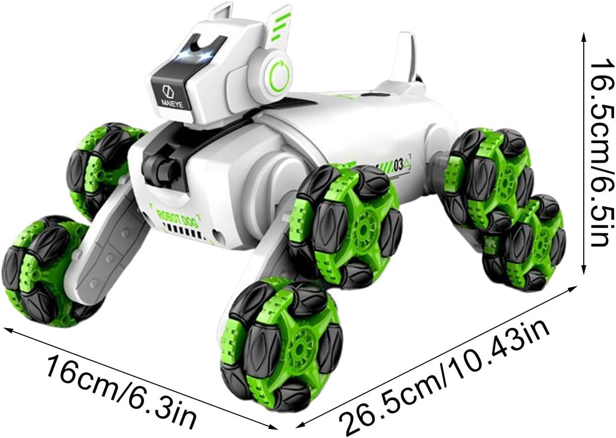 Piacere di gioco interattivo: testimonia il fascino di un'illuminazione fantastica e di funzionalità musicali dinamiche mentre questo cane robot con rotazioni di deriva a 360 gradi e varie acrobazie. Attiva ricche funzioni interattive con un semplice per un divertimento ancora maggiore durante il gioco Grande versatilità sui terreni: le ruote Mecanum del cane robot, alimentate da un intelligente di trasmissione interna, gli conferiscono la capacità di conquistare facilmente terreni impegnativi con i suoi bracci oscillanti anteriori e posteriori Divertimento che dura a lungo: grazie alla batteria ricaricabile da 3,7 V inclusa, questo cane robot promuove un impegno prolungato, rendendo il di gioco comodo ed economico a lungo termine Configurazione semplice: premendo l'ombelico del cane robot, chiare istruzioni operative ti guidano per una configurazione semplice. Controlla facilmente all'interno e all'esterno con il telecomando per iniziare a giocare Controllo remoto intuitivo: manovra facilmente il cane robot con la tecnologia avanzata di rilevamento dei gesti tramite telecomando o guarda per un'esperienza utente dinamica