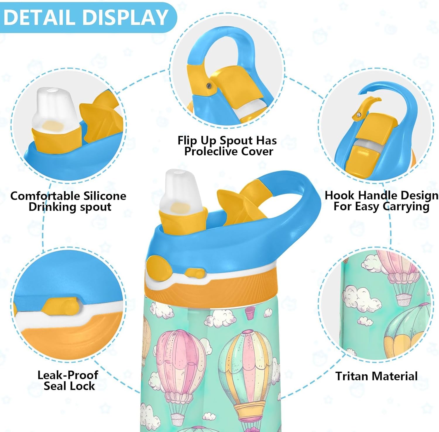 Materiale: questa borraccia per bambini è realizzata in tritan di alta qualità, resistente e leggera. Combinato con un beccuccio in silicone alimentare, fornisce una soluzione di idratazione sicura e affidabile per l'uso quotidiano. Capacità: con una capacità di 16 once, le nostre borracce per bambini aiutano i bambini a rimanere adeguatamente idratati durante le ore scolastiche, lo sport, l'asilo o le attività all'aperto. Beccuccio ribaltabile: questa borraccia sportiva per bambini dispone di un beccuccio ribaltabile che si apre con la semplice pressione di un pulsante, rendendo facile bere per i bambini. Quando non in uso, il coperchio può essere tenuto chiuso per evitare perdite e fuoriuscite. Comoda maniglia: progettata con un'ampia maniglia superiore, questa borraccia da viaggio per bambini può essere trasportata comodamente a mano o collegarla a uno zaino da scuola o da viaggio. Sia che si tratti di andare a lezione o di andare al parco, i bambini possono mantenere l'idratazione a portata di mano. Stampe divertenti: disponibile in una gamma di motivi carini ed eleganti, questa borraccia per bambini aggiunge personalità all'idratazione quotidiana. Combina praticità e design giocoso, rendendolo un'idea regalo premurosa per compleanni, vacanze, ritorno a scuola.