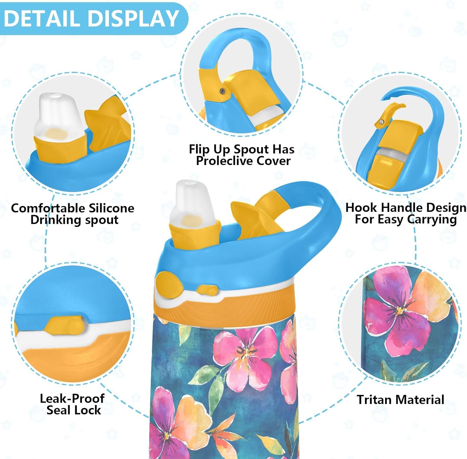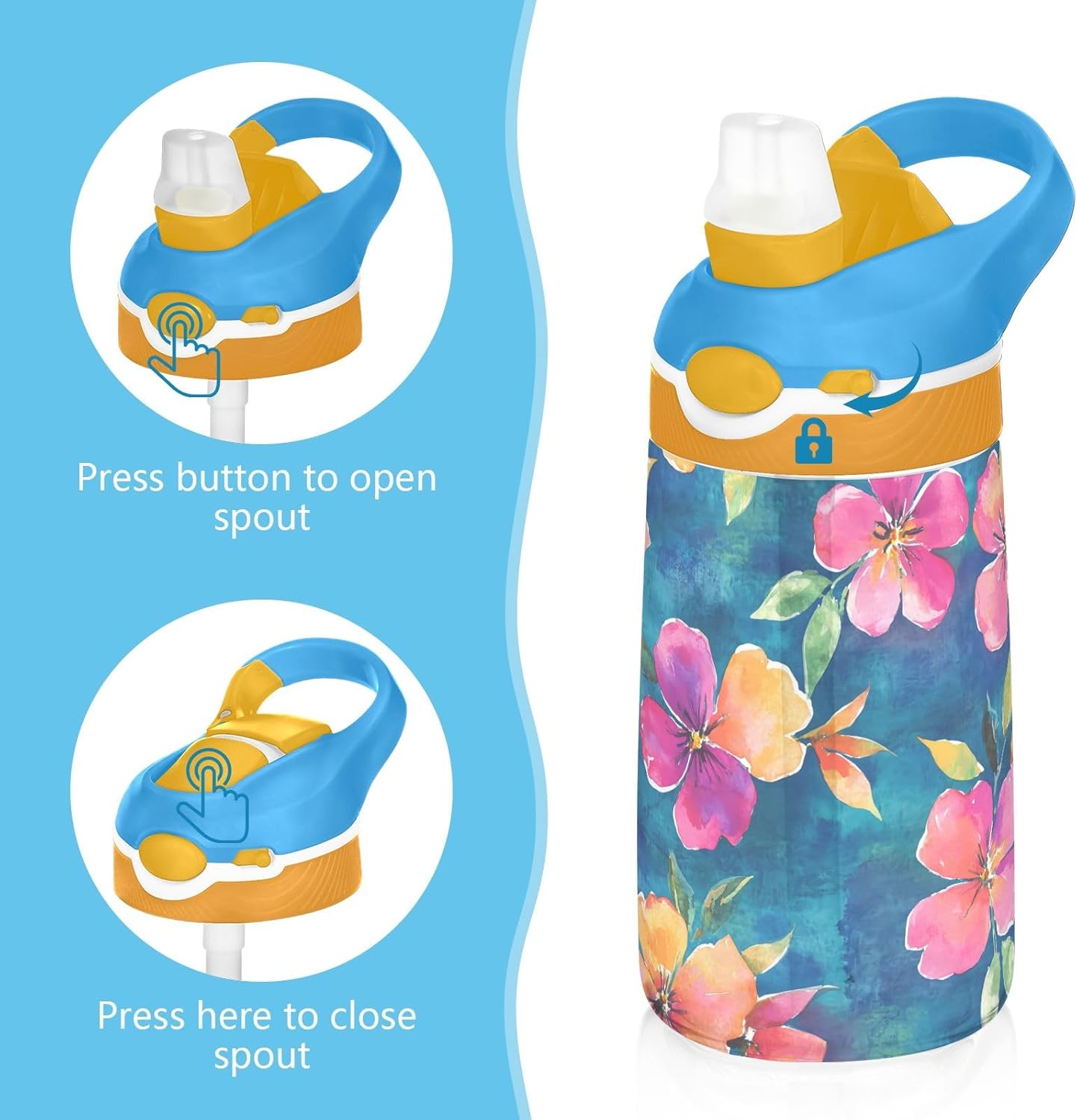 Materiale: realizzata in tritan di alta qualità, questa borraccia per bambini offre durata pur rimanendo leggera e facile da usare per i bambini. Il beccuccio in silicone alimentare garantisce un'esperienza di bere sicura e confortevole, rendendolo ideale per l'idratazione quotidiana. Capacità: con una capacità di 473 ml, le nostre tazze da viaggio per bambini aiutano i bambini a rimanere adeguatamente idratati durante le ore scolastiche, lo sport, l'asilo o le attività all'aperto. Beccuccio ribaltabile: progettata per un uso indipendente, questa borraccia per adolescenti include un beccuccio in silicone apribile che si apre premendo un pulsante. Il coperchio rimane chiuso quando non in uso, proteggendo dalle perdite e mantenendo pulito il beccuccio. Portatile e facile da trasportare: questa bottiglia d'acqua con cannuccia presenta un manico ampio e robusto che si adatta alle mani piccole e consente di trasportare, tenere a mano o appendere agli zaini, ideale per viaggi, parchi o parchi giochi. Stampe divertenti: disponibile in una gamma di motivi carini ed eleganti, questa borraccia sportiva per bambini aggiunge personalità all'idratazione quotidiana. Combina praticità e design giocoso, rendendolo un'idea regalo premurosa per compleanni, vacanze, ritorno a scuola.