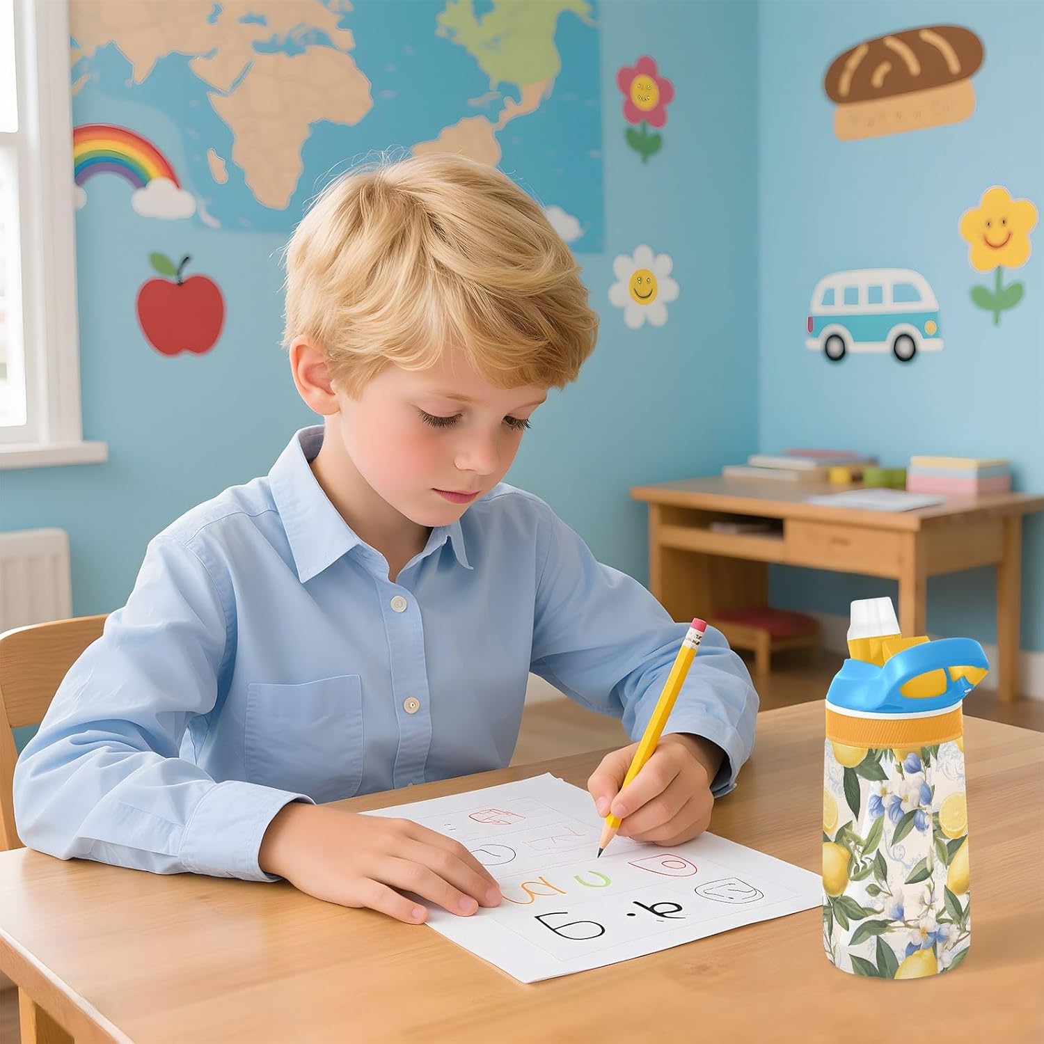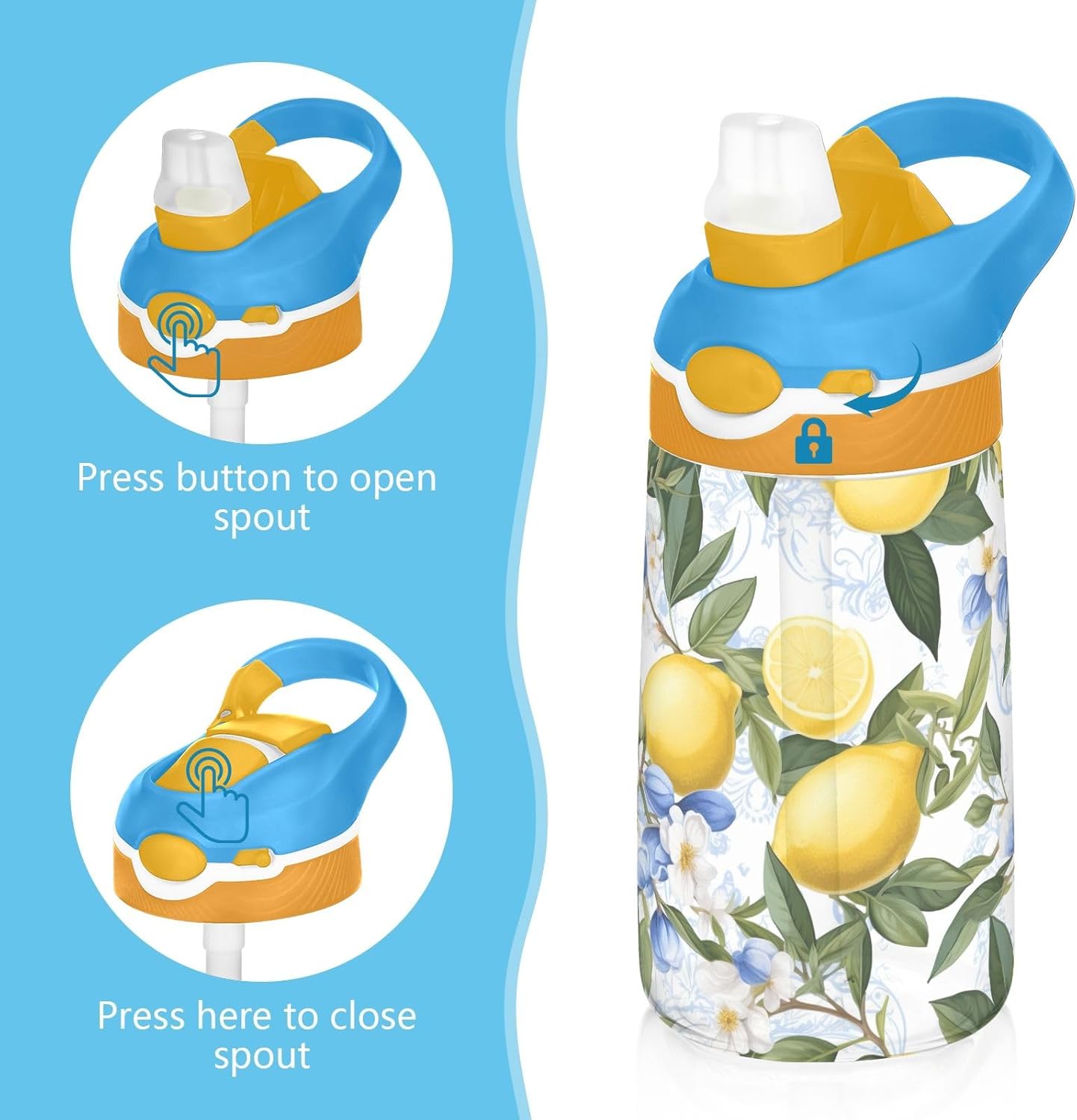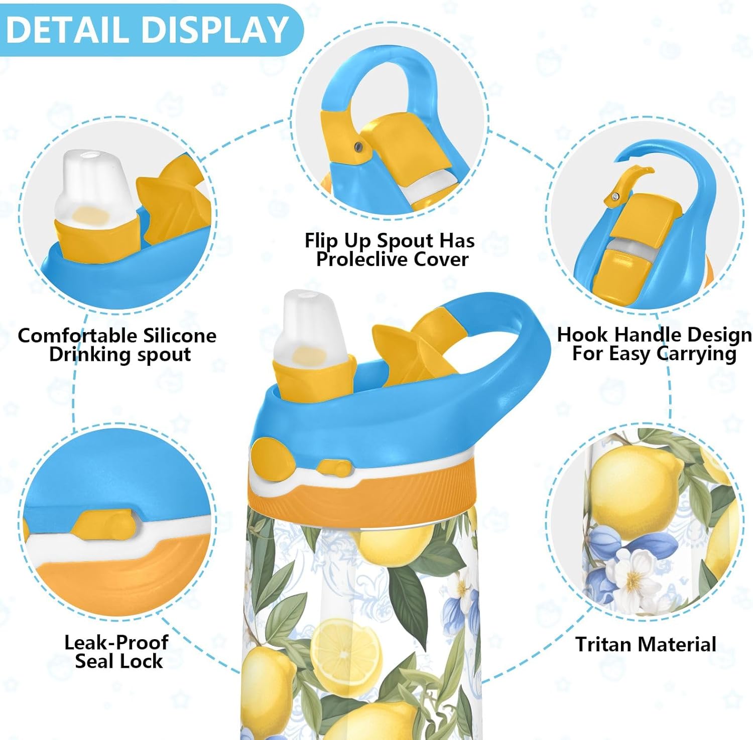 Materiale: realizzata in tritan di alta qualità, questa borraccia per bambini è robusta e leggera, ideale per l'uso quotidiano da parte di bambini attivi. Il beccuccio in silicone alimentare offre un'esperienza di bere sicura e confortevole per l'idratazione quotidiana. Capacità: con una capacità di 473 ml, i nostri bicchieri per bambini aiutano i bambini a rimanere adeguatamente idratati durante le ore scolastiche, lo sport, l'asilo nido o le attività all'aperto. Beccuccio ribaltabile: questa borraccia per bambini dispone di un beccuccio ribaltabile che si apre premendo un pulsante, rendendo facile per i bambini bere. Quando non in uso, il coperchio può essere tenuto chiuso per evitare perdite e fuoriuscite. Facile da trasportare: questa borraccia sportiva è progettata con un manico ampio e robusto che si adatta comodamente alle mani piccole e può essere facilmente attaccata agli zaini, rendendola un compagno ideale per scuola, viaggi, parchi giochi o gite nel fine settimana. Design carino: caratterizzato da una varietà di motivi divertenti e alla moda, questa borraccia per bambini aggiunge gioia all'idratazione ed è un regalo affascinante per ragazzi e ragazze durante compleanni, Natale, ritorno a scuola o altre occasioni speciali.