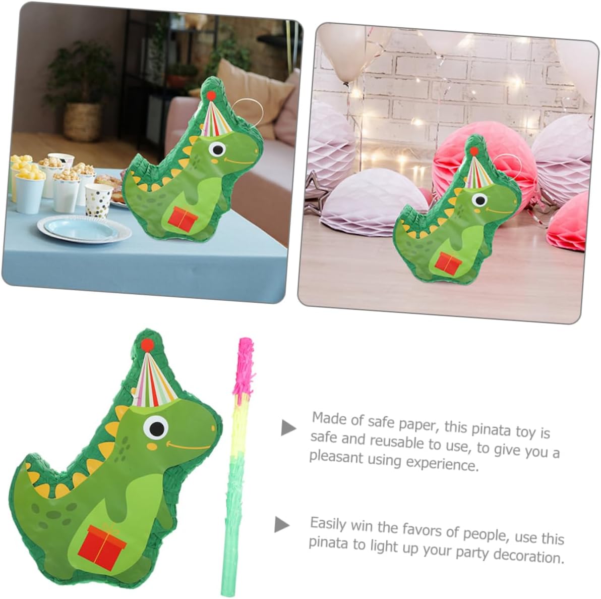Decorazione per feste: il design di questa pignatta a forma di dinosauro è divertente, bello, interessante e attira sempre l'attenzione, decorazione di pignatta Decorazione di pignatta appesa: eccellente fattura, presta attenzione ad ogni dettaglio per darle un aspetto divertente e unico, ciondolo per festa di pignatta caramelle: decorazione carina per feste e supporto fotografico per aggiungere un'atmosfera felice e rilassata a ogni occasione, decorazione di pignatta appesa per compleanno di dinosauro: adatta per un'atmosfera più allegra, ti rende più felice, ampiamente utilizzata per vari eventi come feste di compleanno, feste scolastiche, feste a tema e altri eventi simili, decorazioni per feste di compleanno pinata: molto adatta per feste, feste di compleanno e festival o celebrazioni, decorazione di pinata per feste