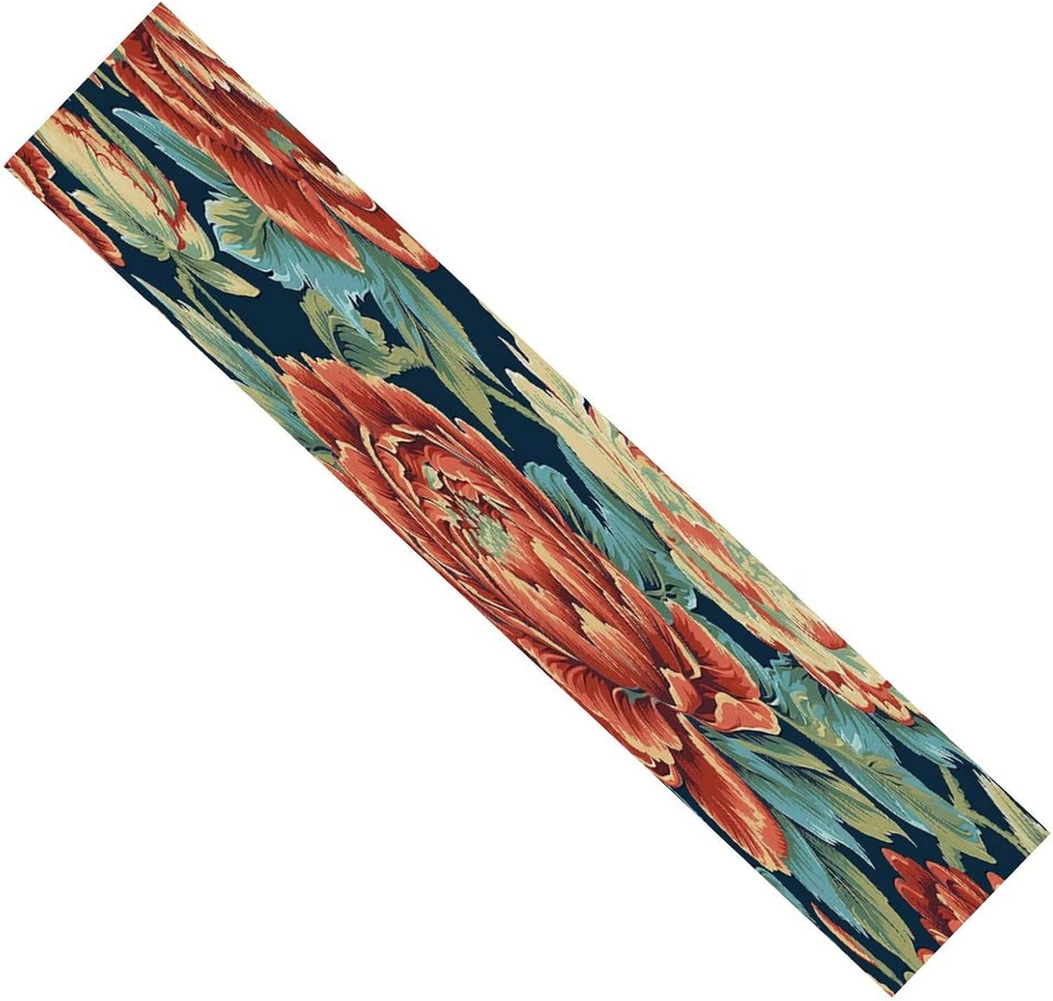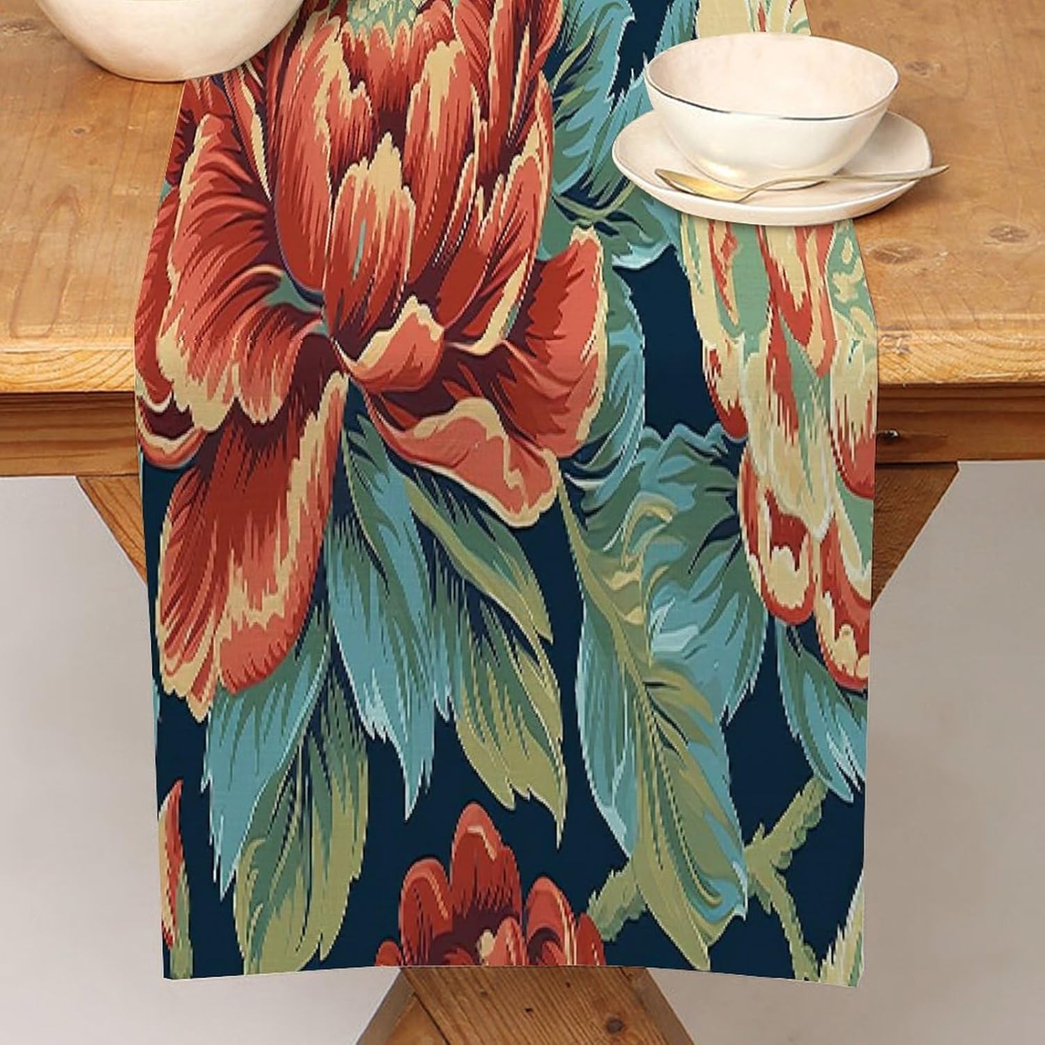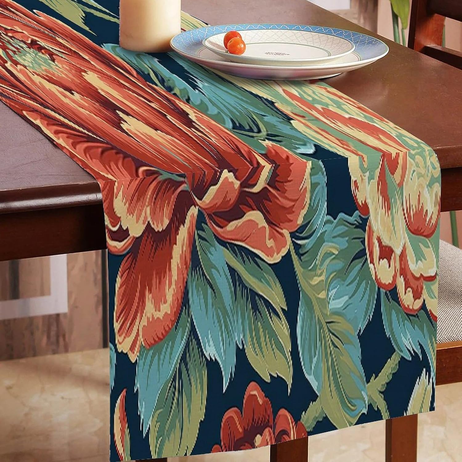 Chinoiserie, Runner da tavola con peonie rosse e fiori, 33 x 274 cm, in iuta, rustico, facile da pulire, per soggiorno, cena, casa, decorazione per la tavola, idea regalo per la casa