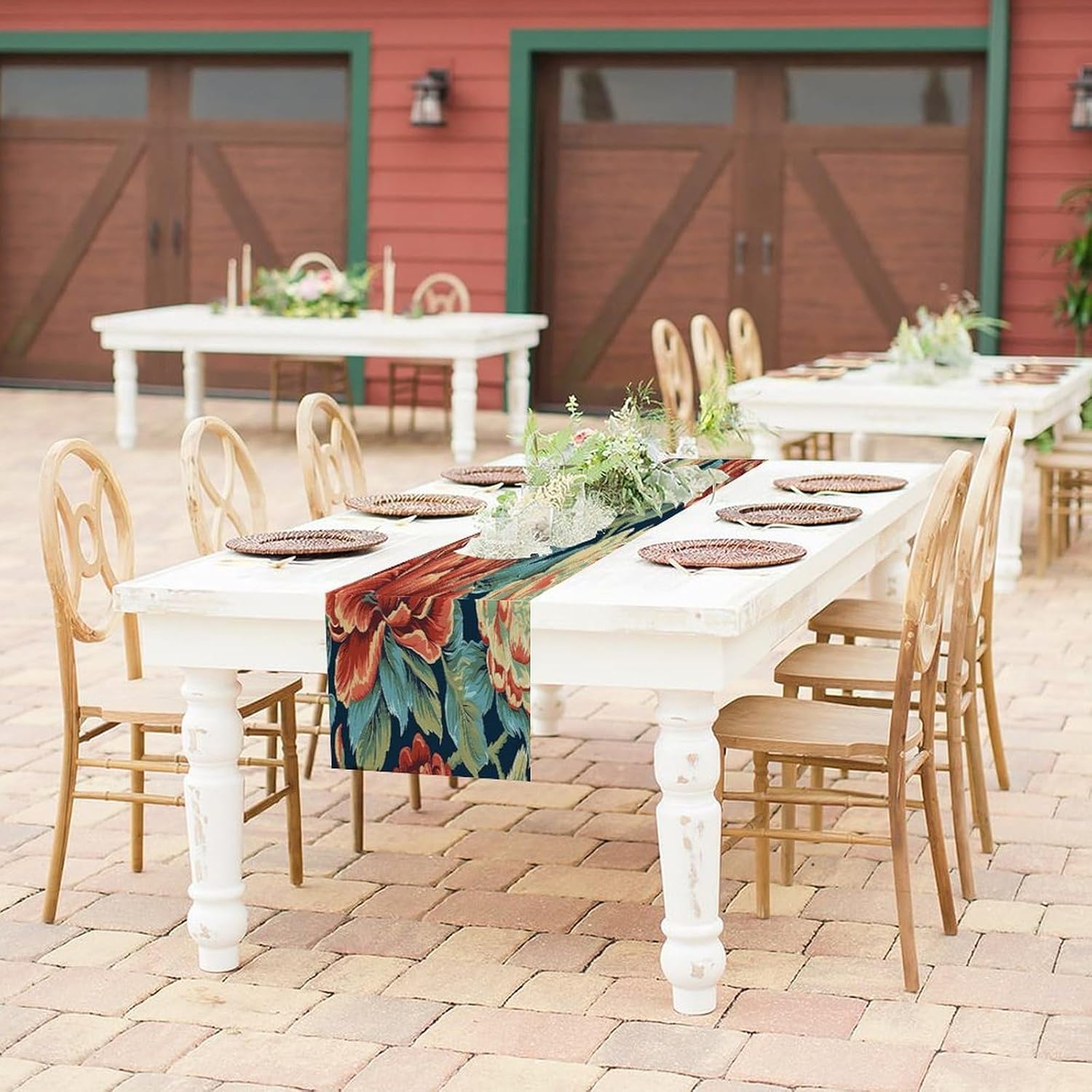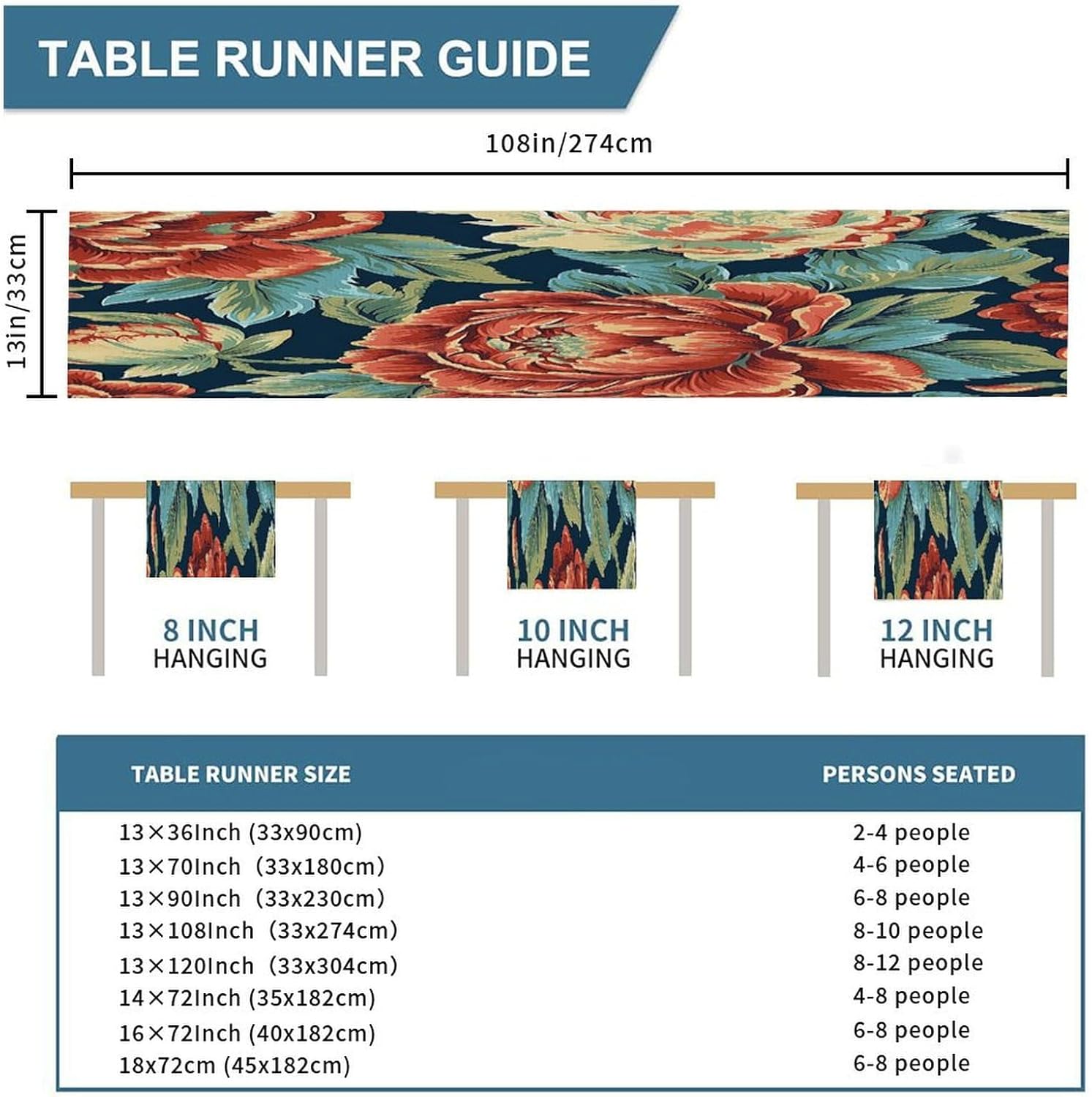 Dimensioni: 274 x 33 cm. Materiale: realizzato in morbido lino di cotone, comodo e durevole, resistente all'usura. Protegge la superficie del tavolo per la decorazione quotidiana della tavola, proteggendo la superficie del tavolo da pentole calde, graffi, danni causati dal calore. [Grande decorazione]: i runner da tavola sono un modo veloce, facile ed economico per aggiornare il tavolo della sala da pranzo, la camera da letto, il comò. Sarà il tuo compagno perfetto per colazione, pranzo e cena. Questa tovaglia dal design elegante aumenterà il fascino del tavolo da pranzo. [Uso multiuso]: alla ricerca di un runner da tavola per più occasioni? Non cercare più! Questo runner da tavola può andare dal ringraziamento alla festa di Natale ed è ottimo anche per una serata estiva informale. Sarà anche un regalo perfetto per i tuoi cari per l'inaugurazione della casa, il Ringraziamento o Natale. Ampia applicazione: caratterizzato da un motivo elegante con un bel bordo con nappe, sembra bello e vintage. Adatto per l'uso quotidiano, balli, matrimoni, feste o qualsiasi vacanza speciale. Ideale per uso interno ed esterno, come cucina, giardino, tè pomeridiano, caffè, cene, balcone, potlucks.
