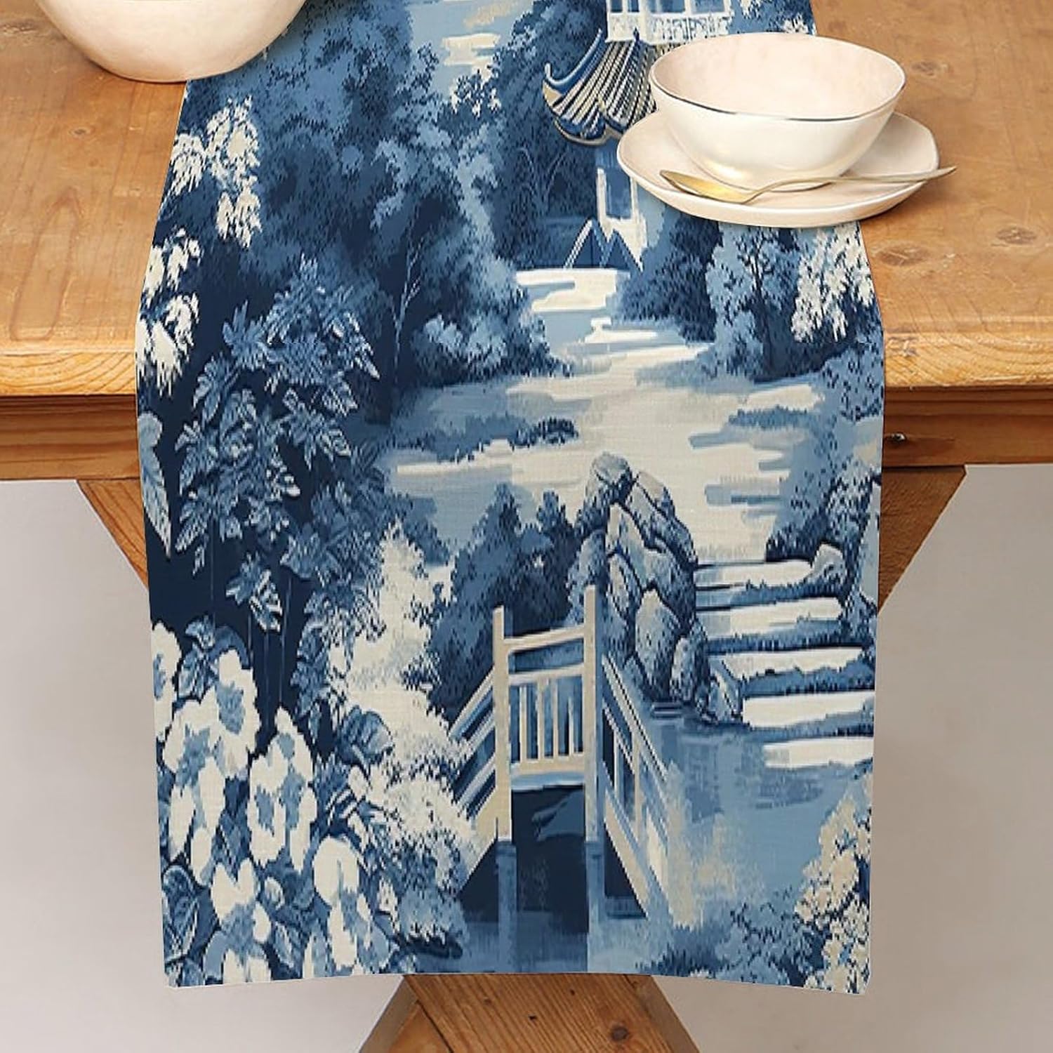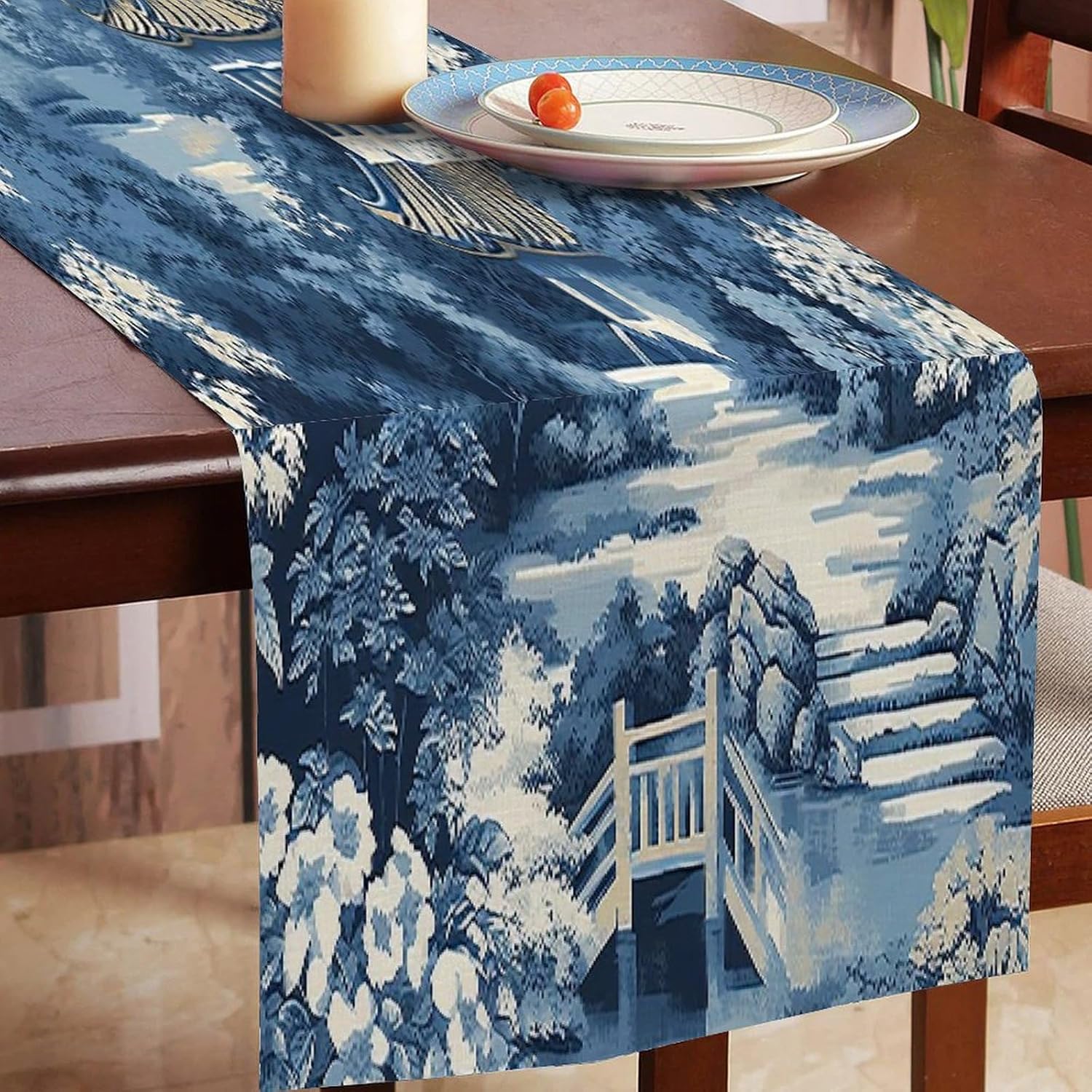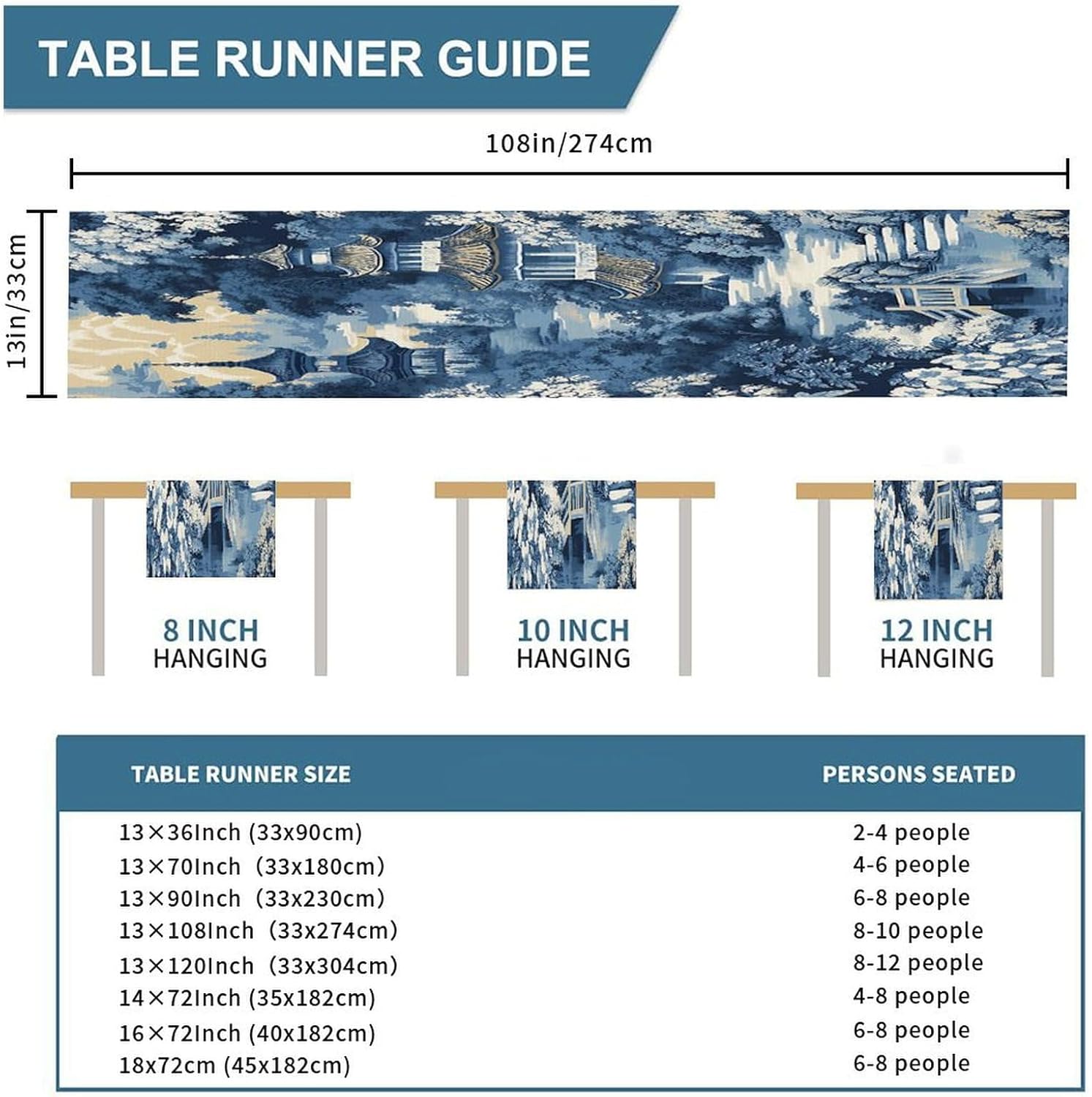 Chinoiserie Runner da tavolo da pranzo per comò e sciarpe, runner da cucina per cene in fattoria, feste festive, matrimoni, eventi, decorazione, 33 x 274,3 cm