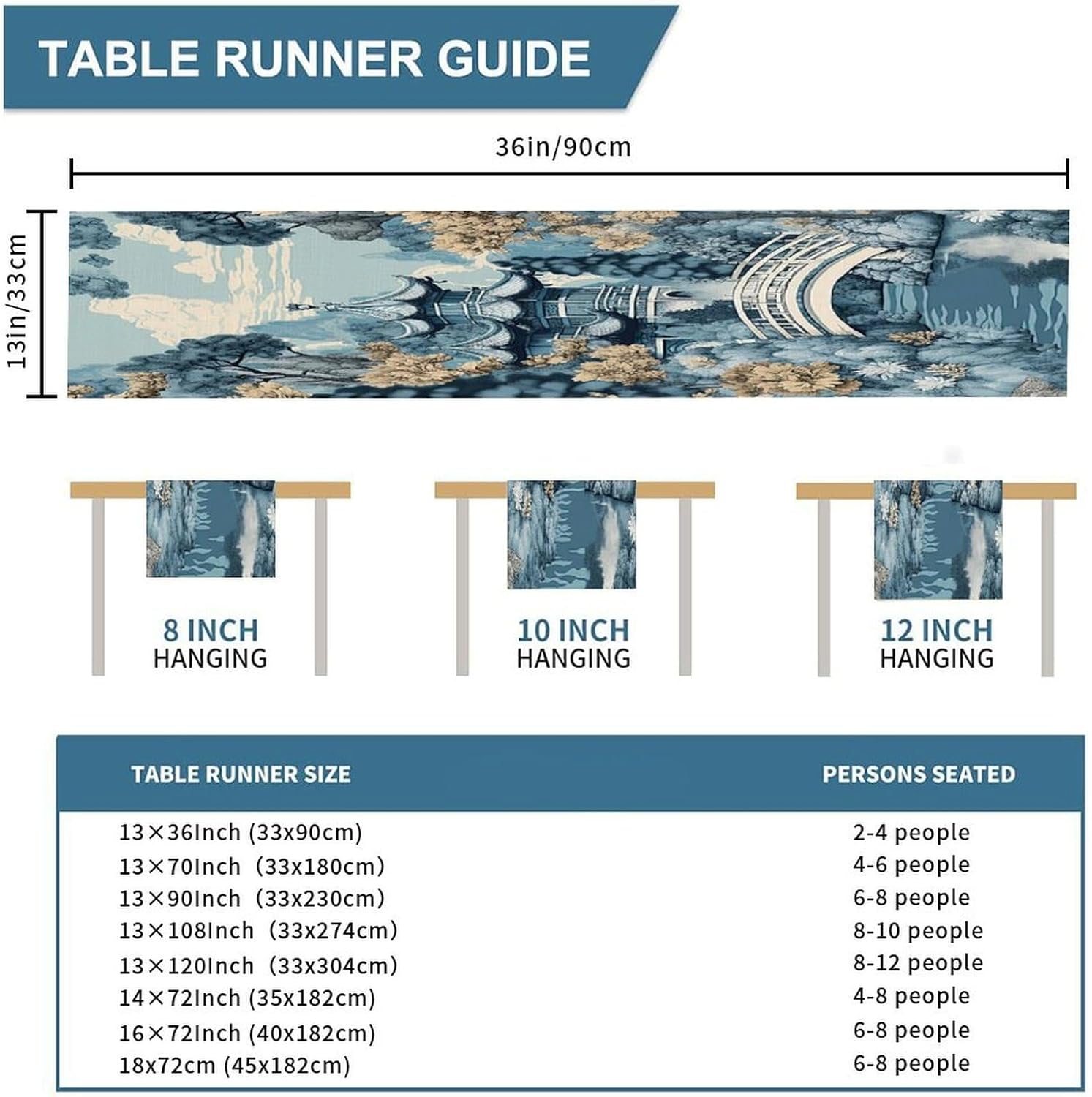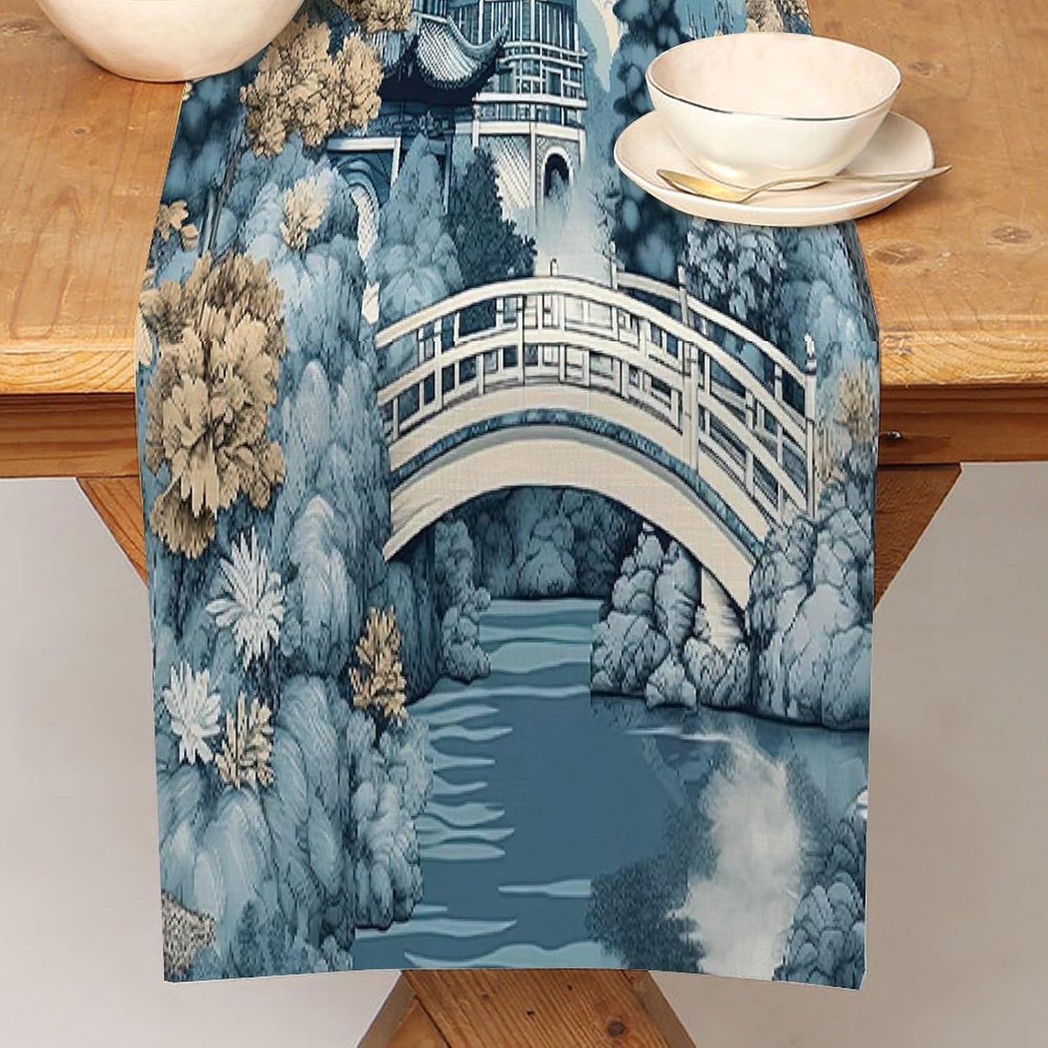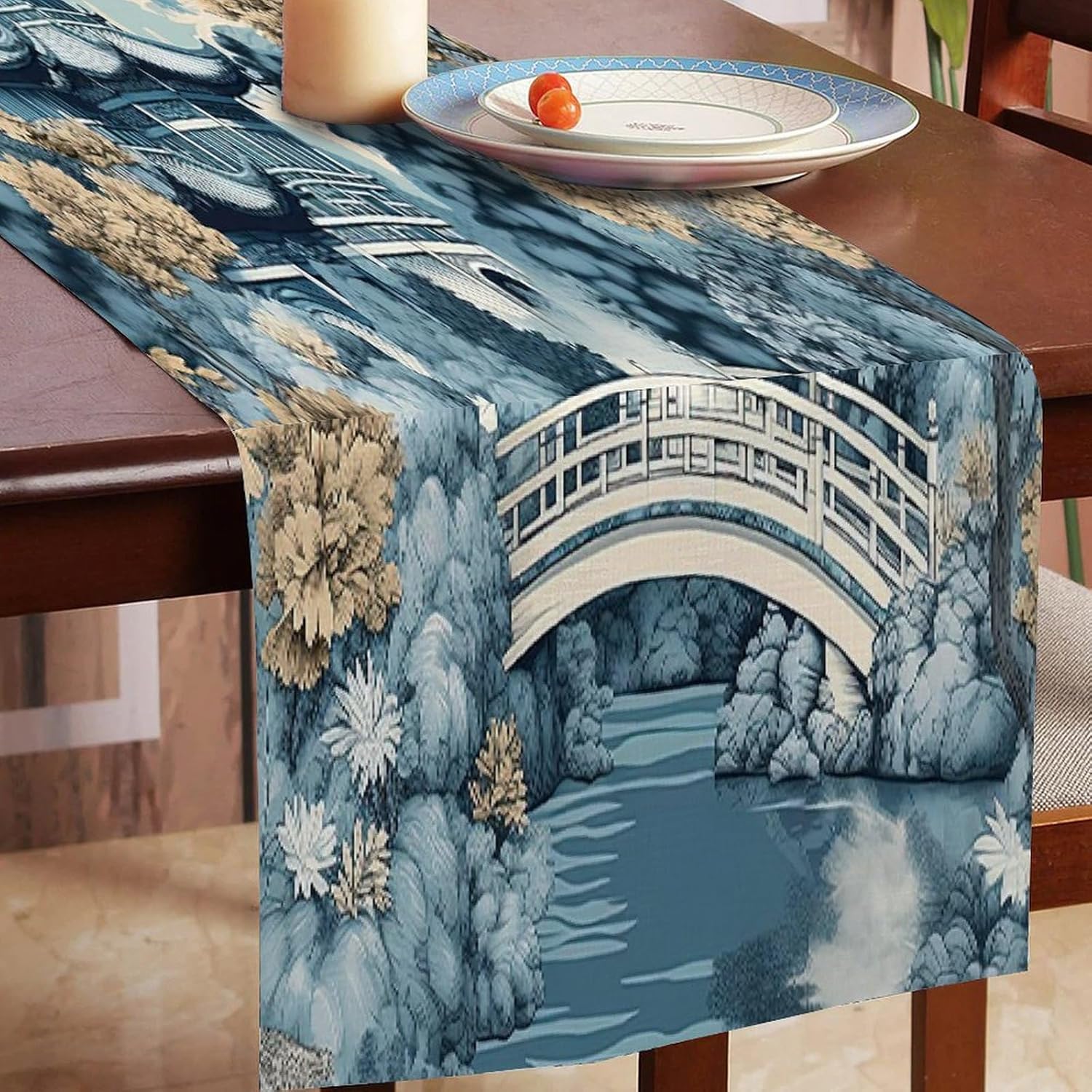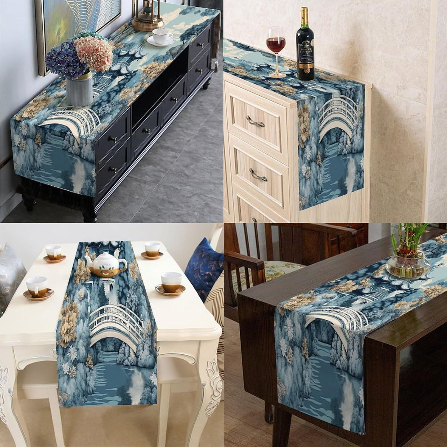 Chinoiserie Runner da tavolo da pranzo per comò e sciarpe, runner da cucina per cene in fattoria, feste festive, matrimoni, eventi, decorazione, 33 x 91,4 cm