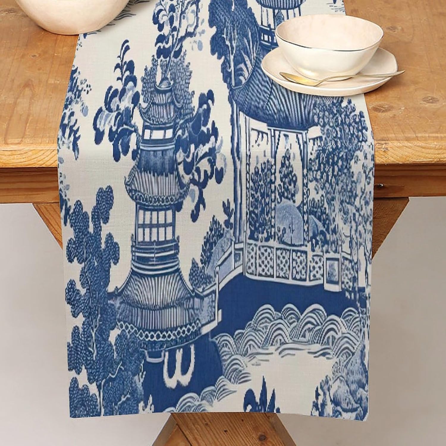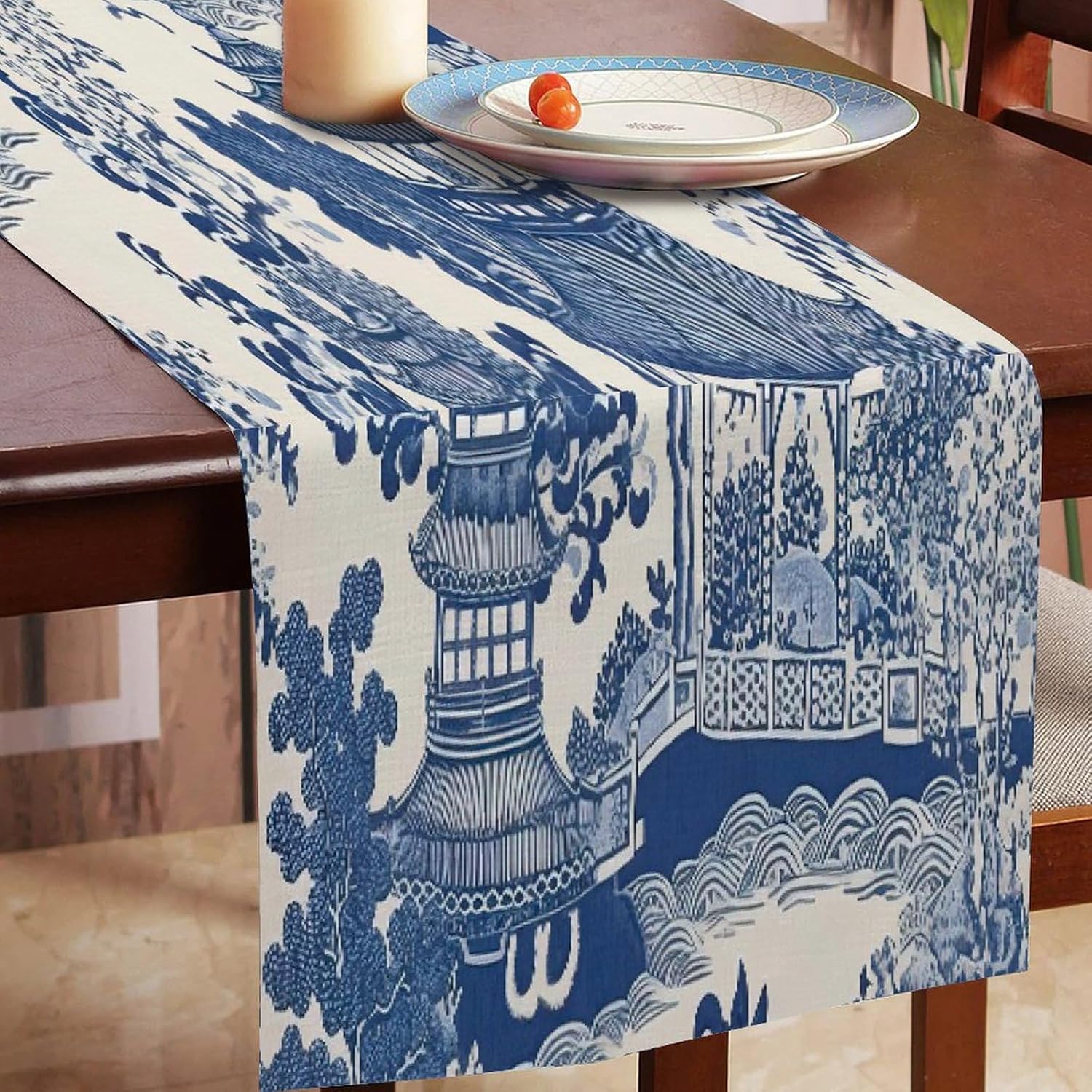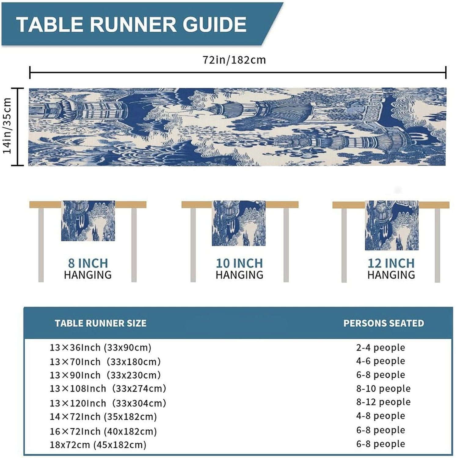 Chinoiserie Runner da tavolo da pranzo per comò e sciarpe, runner da cucina per cene in fattoria, feste festive, matrimoni, eventi, decorazione, 35,6 x 182,9 cm