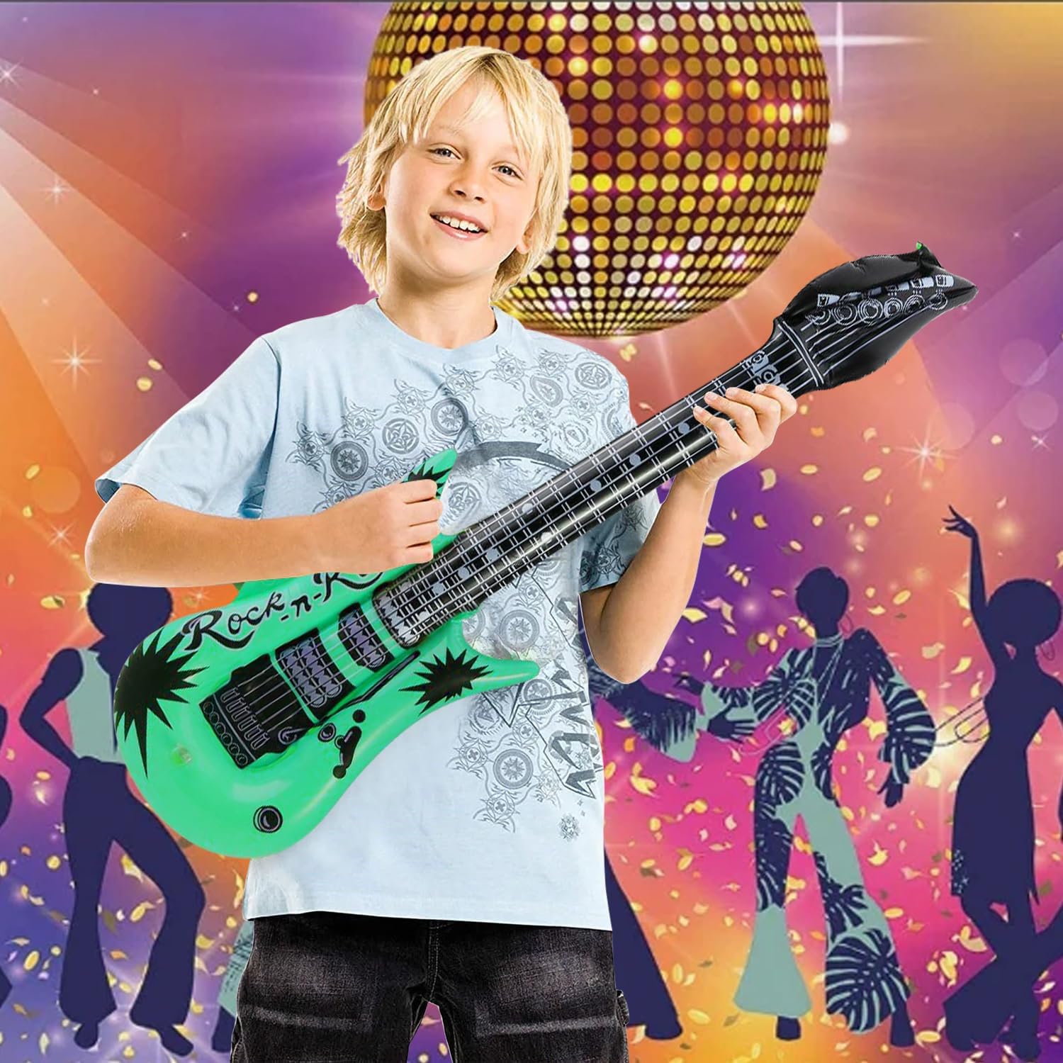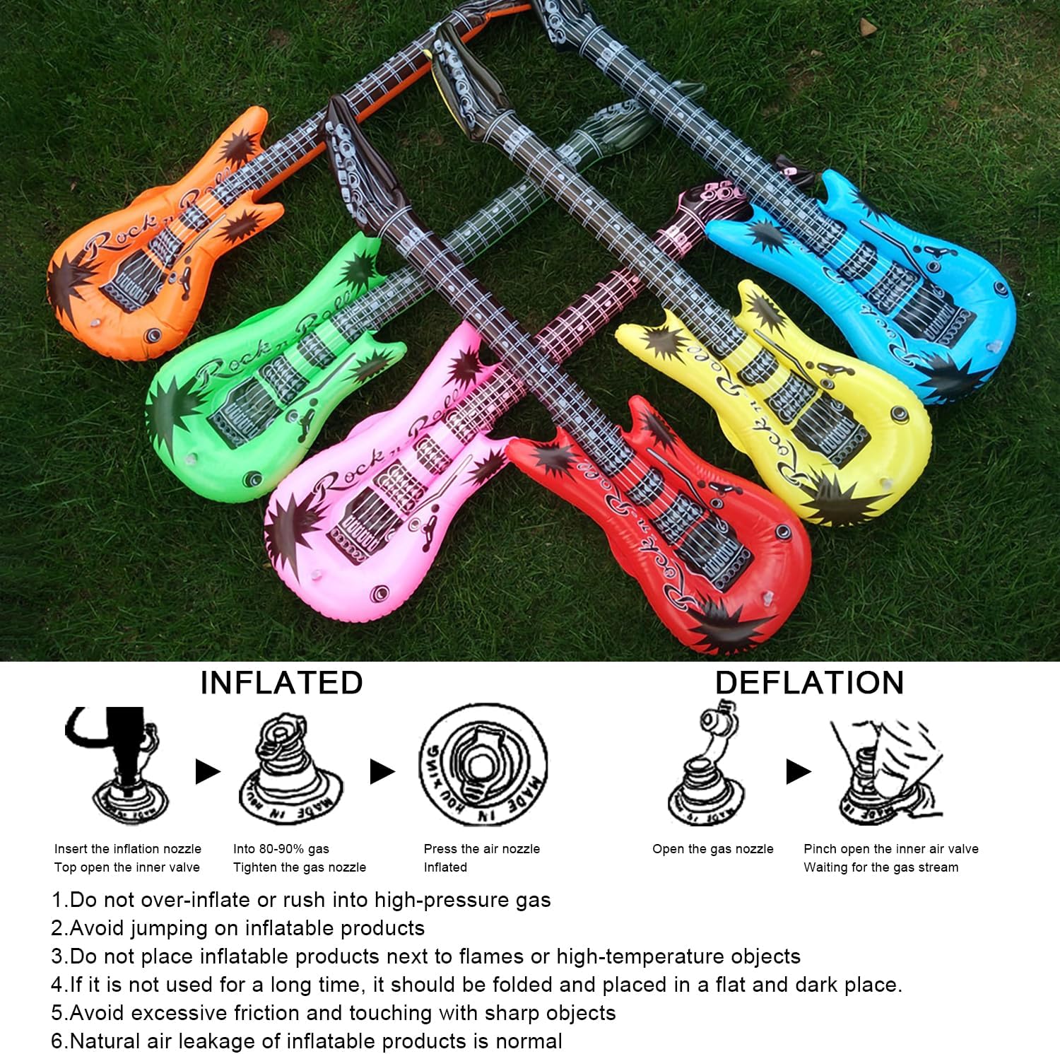 Le dimensioni del prodotto sono 100 cm. Si prega di notare che potrebbero verificarsi lievi variazioni tra i prodotti gonfiabili. Questo accessorio in PVC di alta qualità è sicuro ed ecologico. Il giocattolo gonfiabile è dotato di una valvola di alta qualità che garantisce il gonfiaggio per giorni. È resistente e a prova di perdite. Questa chitarra gonfiabile è perfetta per feste di compleanno, matrimoni, Halloween, Natale, feste in maschera e altri eventi. È anche un accessorio ideale per la fotocamera. Questo set di strumenti musicali gonfiabili include 6 chitarre gonfiabili. Goditi ore di divertimento e gioia musicale!