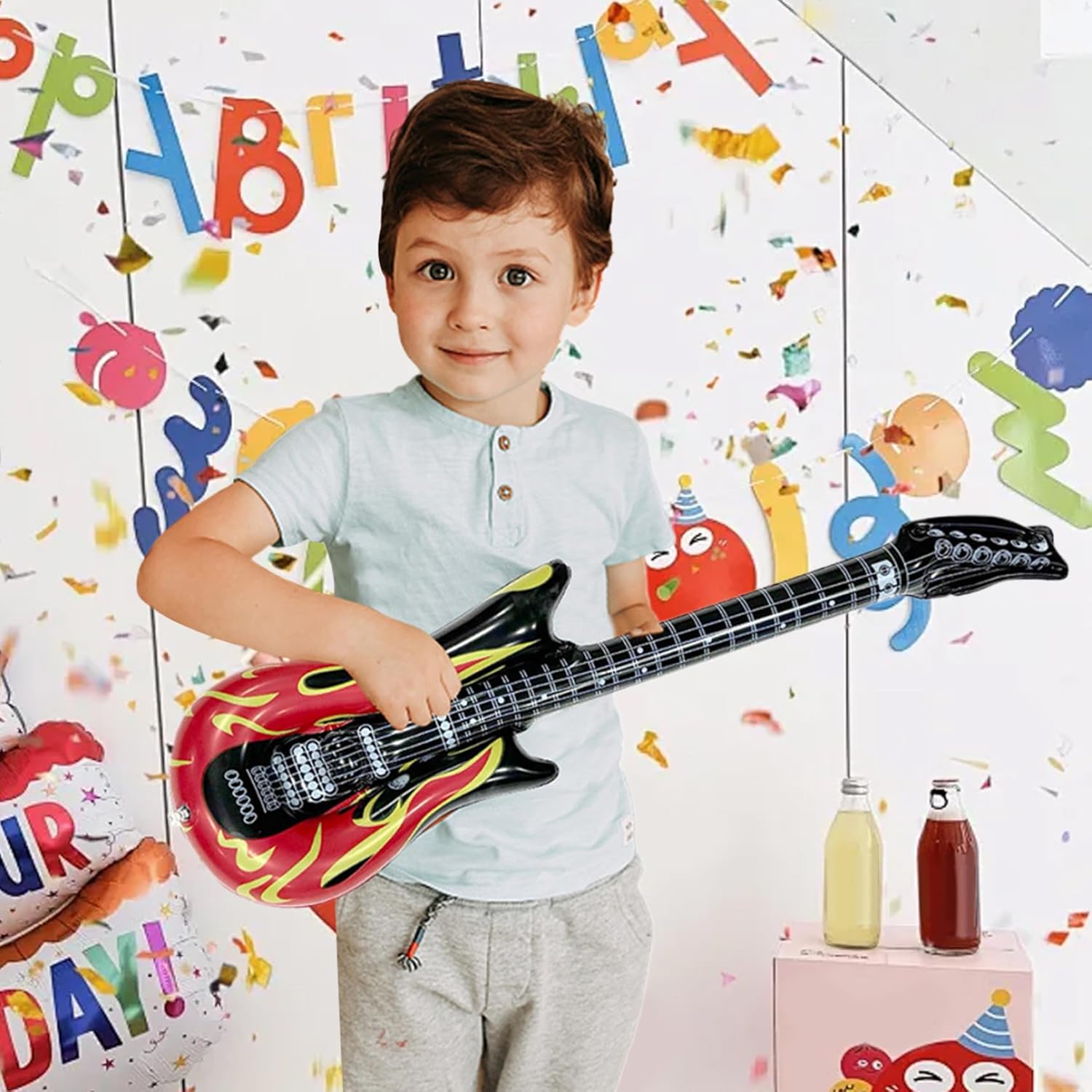 Facile da gonfiare: le chitarre gonfiabili per bambini sono dotate di una valvola che facilita il gonfiaggio e lo sgonfiaggio..Basta gonfiare la chitarra fino alla dimensione desiderata e goderti ore di divertimento e intrattenimento. Materiale in PVC impermeabile: le nostre chitarre gonfiabili sono realizzate in materiale PVC impermeabile, garantendo durata e longevità..Il materiale è resistente all'usura, rendendolo adatto per uso esterno ed interno. Grandi dimensioni: la chitarra gonfiabile misura 36,61x9,06 pollici, offrendo ampio spazio ai bambini per giocare e scatenarsi..La dimensione è adatta a bambini di tutte le età, rendendolo un giocattolo versatile per feste e momenti di gioco. Bomboniere: la chitarra gonfiabile per bambini è una fantastica bomboniera per compleanni, feste in piscina e altre occasioni speciali..Sono leggeri e facili da trasportare, il che li rende un'aggiunta pratica e divertente a qualsiasi festa. Design divertente e colorato: le nostre chitarre gonfiabili sono disponibili in una varietà di colori vivaci e motivi a fiamma, aggiungendo un tocco divertente e giocoso a qualsiasi festa o momento di gioco..Le chitarre presentano un design classico, completo di corde e tasti, fornendo un aspetto realistico.