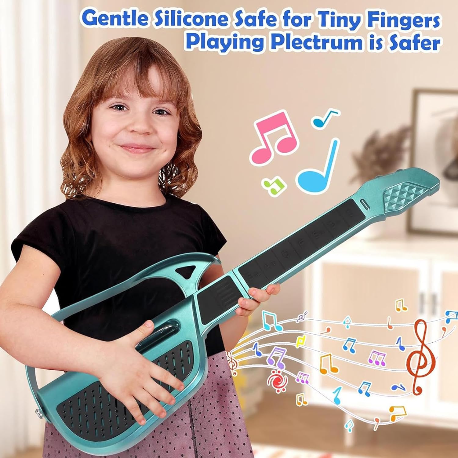 Esplorazione musicale sicura: Offre una sensazione autentica da chitarra con 7 pulsanti di accordi e un plettro, promuove lo sviluppo ritmico in un formato sicuro senza corde progettato per ispirare efficacemente i giovani apprendisti Portabilità Facile: La caratteristica pieghevole di questa chitarra per bambini consente una gestione semplice e un riporlo compatto, rendendola una scelta ideale per le famiglie che cercano una soluzione portatile per supportare la crescita musicale dei più piccoli, senza compromettere la facilità di accesso strumento o la sua trasportabilità in ogni occasione. Creazione intuitiva melodie: La chitarra per bambini integra una tecnologia di sensori intelligenti che permette ai giovani musicisti di produrre melodie in modo rapido senza bisogno di competenze avanzate, rendendo il gioco musicale divertente e accessibile per tutti i livelli di abilità con strumento musicale interattivo e educativo per l'apprendimento Struttura ABS Affidabile: Il corpo della chitarra è realizzato in ABS robusto ma sicuro per i bambini, garantendo durabilità e una maggiore tranquillità per i genitori che cercano strumenti affidabili per i propri figli, con una costruzione che resiste all'uso quotidiano Occasione Speciale: Eccellente idea regalo per compleanni e feste, porta gioia ai bambini e accresce il loro interesse musicale con un design accattivante e un suono piacevole che stimola la curiosità e l'esplorazione sonora in modo intuitivo e appassionante.