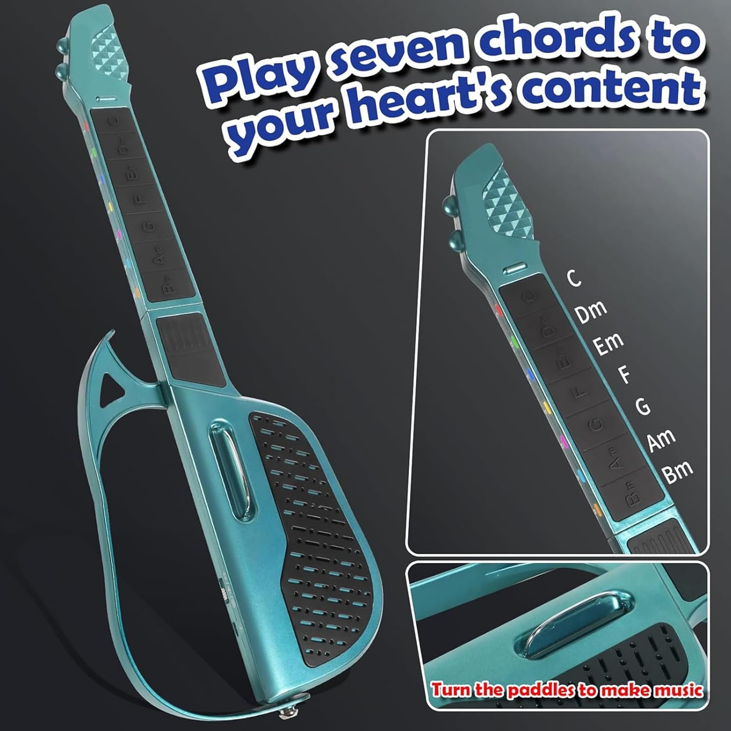 Gioco musicale bambino: Offre un gioco autentico con 7 pulsanti di accordi e un plettro, favorisce il ritmo musicale attraverso un design senza corde che permette ai bambini di esplorare la musica in modo naturale e sicuro Design Viaggi-Friendly: La chitarra per bambini vanta una struttura pieghevole innovativa che garantisce una conservazione compatta e una portabilità senza sforzo, permettendo ai giovani musicisti di portare con sé il loro strumento musicale in ogni viaggio o avventura, mantenendo tutta la praticità per l'uso quotidiano durante le lezioni di musica o il dedicato al gioco e alla creatività. Divertimento musicale accessibile: Il design con di sensori intelligenti reattivi assicura che anche i principianti possano creare melodie con facilità, rimuovendo le barriere delle tecniche complesse e favorendo la creatività attraverso un gioco intuitivo e coinvolgente per bambini di diverse età Resistenza nel : Caratterizzata da una robusta costruzione in ABS, questa chitarra assicura un utilizzo prolungato mentre priorizza la sicurezza dei bambini durante le attività di gioco, con una superficie liscia e bordi arrotondati per una presa comoda Regalo : Ideale per compleanni e festività, questa chitarra ispira creatività e divertimento mentre coltiva l'amore per la musica nei giovani apprendisti, offrendo un'esperienza coinvolgente che unisce gioco e sviluppo musicale in modo spontaneo e gioioso.