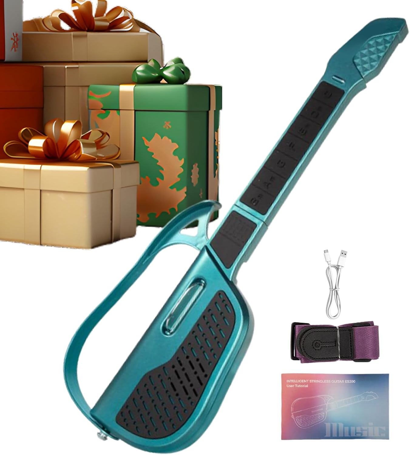 Gioco musicale bambino: Offre un gioco autentico con 7 pulsanti di accordi e un plettro, favorisce il ritmo musicale attraverso un design senza corde che permette ai bambini di esplorare la musica in modo naturale e sicuro Design Viaggi-Friendly: La chitarra per bambini vanta una struttura pieghevole innovativa che garantisce una conservazione compatta e una portabilità senza sforzo, permettendo ai giovani musicisti di portare con sé il loro strumento musicale in ogni viaggio o avventura, mantenendo tutta la praticità per l'uso quotidiano durante le lezioni di musica o il dedicato al gioco e alla creatività. Apprendimento musicale senza sforzo: Dotata di un di sensori intelligenti integrato questa chitarra permette ai giovani apprendisti di suonare melodie rapidamente senza bisogno di tecniche complesse promuovendo l'esplorazione musicale senza sforzo e il divertimento attraverso il gioco intelligente e educativo per bambini Struttura ABS Affidabile: Il corpo a chitarra è realizzato in ABS robusto ma sicuro per i bambini, garantendo durabilità e una maggiore tranquillità per i genitori che cercano strumenti affidabili per i propri figli, con una costruzione che resiste all'uso quotidiano Espressione Creativa: Modo unico per i bambini di esprimersi attraverso ritmo e melodia durante eventi speciali come compleanni e festività, favorendo lo sviluppo 'identità artistica e la gioia a creazione musicale spontanea e personale.