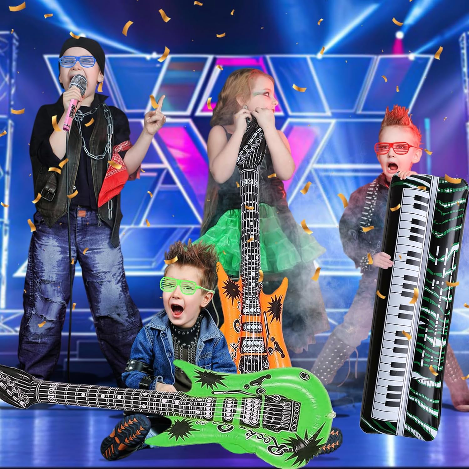 【Pacchetto Palloncini Incluso】Contiene chitarre 4x95 cm, sassofoni 2x60 cm, microfoni 4x24 cm e 4 occhiali Shutter Shade + 1 piano elettrico. 【Materiale di alta qualità】 I nostri palloncini a tema musicale sono realizzati in plastica di alta qualità e foglio di alluminio con spessore. Sono resistenti, colorati, leggeri e della giusta dimensione. 100% atossici, ti permettono di giocare con la tua famiglia e i tuoi amici. Non scoppiano facilmente e non perdono gas. 【Aggiungi divertimento alla tua festa】 Questo set è un favoloso favore per una festa da rock star. Questo è un ottimo regalo per feste di compleanno, pignatte, premi in classe, bomboniere in classe o premi di carnevale. 【Palloncini riutilizzabili】 Puoi riempire il palloncino con gas, riempirlo all'80% o al 90%, quindi chiudere la valvola del palloncino. Questo strumento di gonfiaggio è molto resistente e può essere utilizzato molte volte. Si prega di notare che il palloncino non deve essere gonfiato eccessivamente. 【Decorazione perfetta per la festa】 Il regalo perfetto: questa decorazione per una festa rock n roll contiene gli elementi classici di una festa musicale. Tutti gli articoli sono perfetti per i bambini come bomboniere, regali di Halloween, regali di Natale, costumi da ballo, giochi per bambini, attività scolastiche. Ricevi regali diversi per i bambini oggi!