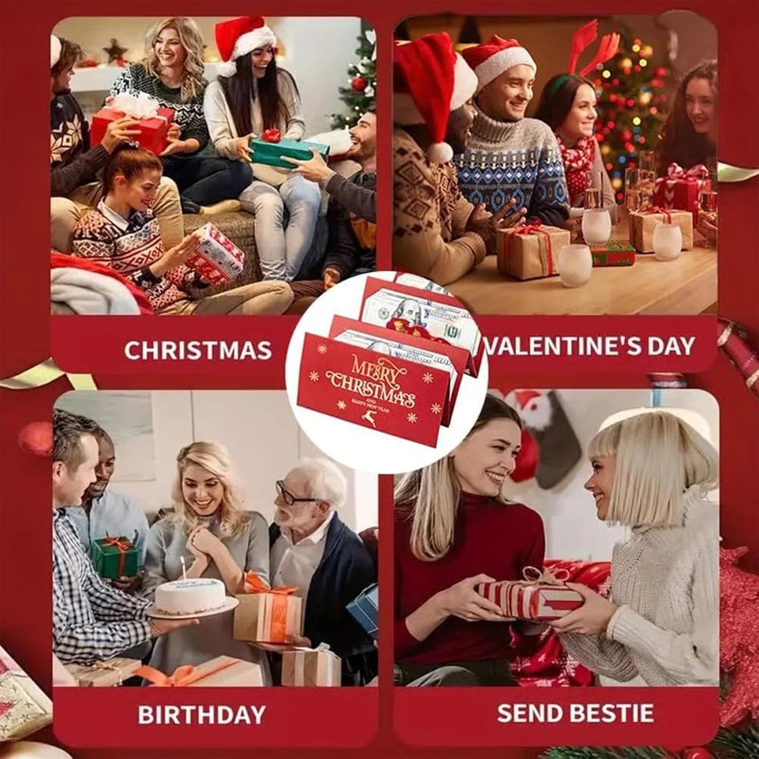 Complete Set for Festive Gifting --- Includes a set of creatively designed Christmas cash envelopes, perfect for adding a surprise element to your holiday gifts for family, friends, and kids. 6/10-Slot Surprise Design --- Features 6/10 individual slots to neatly insert cash or gift cards. Creates an engaging and unforgettable unwrapping experience for recipients. Sturdy & Quality Material --- Made from durable premium paper that securely holds cash and cards. The elegant design adds a special ceremonial touch to your gift-giving. Cherishable Memory Keepsake --- More than just an envelope—it's a memorable souvenir. Its elegant design transforms cash gifts into heartfelt moments that will be treasured for years. Multi-Occasion Use --- Ideal for Christmas, birthdays, and family gatherings. Its versatile design and luxurious feel make it suitable for any special celebration.