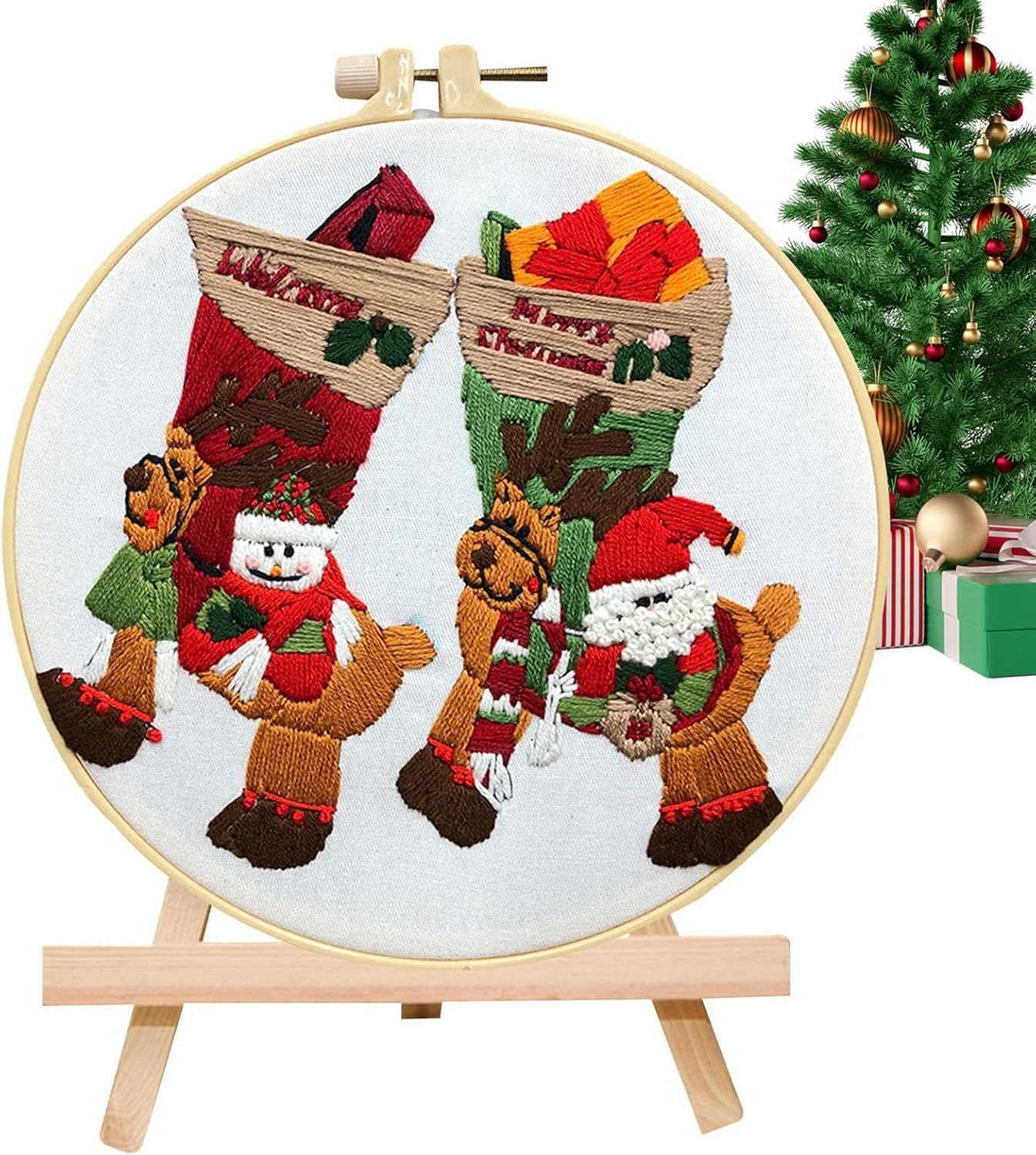 Complete Craft Set: Each kit comes with everything you need to create a beautiful Christmas stocking, including an easy-to-follow pattern, embroidery hoop, and high-quality threads for a seamless crafting experience Fun for All Ages: Designed for both adults and children, this embroidery kit provides an enjoyable activity that fosters creativity and bonding time with family and friends during the holiday season Stunning Elk Design: The charming elk pattern adds a festive touch to your home decor, making it a perfect for loved or a delightful addition to your own Christmas decorations Easy to Follow Instructions: With clear and comprehensive instructions, beginners can easily learn the art of embroidery, while experienced crafters can enjoy a relaxing and rewarding project Great for Holiday Spirit: Engage in a meaningful holiday activity that encourages relaxation and mindfulness, allowing you to immerse yourself in the festive spirit while creating a handmade treasure to cherish