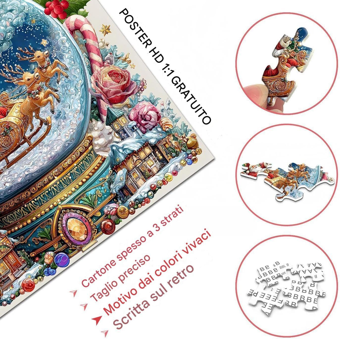 Attività artigianale familiare: Offre dettagliati intagli di natalizi ad eleganti design a di neve, garantendo un piacevole modo per migliorare l'atmosfera mentre riunisce le famiglie in gioiosi momenti assemblaggio Organizzazione Efficiente: Dotata di scatola opaca a scomparti interni, tiene i pezzi in ordine, evita smarrimenti e permette di mettere in pausa e riprendere il gioco senza interruzioni per divertimento continuo Supporto Resistente: Il puzzle globo di neve si presenta con un elegante supporto in acrilico durevole, progettato per esaltare l'arredamento domestico attraverso un intricato design 3D, offrendo un equilibrio tra appeal visivo e utilità pratica come elemento decorativo di lunga durata. di ragionamento logico: Crea ricordi indimenticabili con un puzzle a globo di neve festivo che incoraggia il lavoro di , affina le capacità di ragionamento logico e migliora i legami emotivi attraverso un gioco coinvolgente tra genitori e figli Idea regalo artigianale: Arricchito con decorazioni in nastro di seta, questo puzzle handmade è abbinato a un biglietto d'auguri e consegnato in scatola stampata oro, offrendo un modo creativo per celebrare lo spirito natalizio con doni significativi