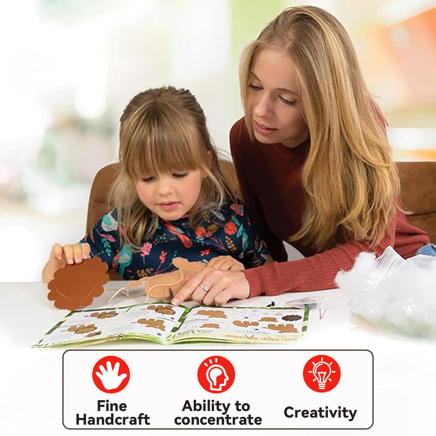Materiali di Alta Qualità: Questo set cucito è realizzato in feltro ecologico, morbido e inodore, privo di sostanze nocive, sicuro e resistente, appositamente progettato per i lavori manuali dei bambini. Kit cucito bambini è comodo da usare, non si deforma facilmente e ha bordi lisci che non forano le mani, garantendo la sicurezza dei bambini durante il processo di creazione, offrendo loro un'esperienza di lavoro manuale sicura. Creazione e Sviluppo: Questo cucito per bambini non è solo un giocattolo fatto a mano, ma anche uno strumento di alta qualità per aiutare i bambini a migliorare le loro capacità manuali, la concentrazione e la creatività. L'utilizzo di questo kit cucito consente ai bambini di padroneggiare le tecniche di cucito di base, stimolare il potenziale artistico, coltivare la pazienza e l'osservazione meticolosa, ed è un valido compagno nel percorso di crescita. Interazione Genitore-Figlio: Questo set cucito bambini non è solo adatto ai bambini che lo completano in modo indipendente, ma anche a genitori e figli che possono lavorare insieme e creare modelli di animali con i bambini. Non solo può migliorare la comunicazione e il legame emotivo tra loro, ma anche lasciare bei ricordi comuni. Set cucito è diventato un giocattolo educativo per le attività genitori-figli del fine settimana e per i progetti familiari delle vacanze. Facile da Usare: Ogni pezzo di feltro di kit cucito bambini è stato pretagliato e fustellato, senza tagli o complicate preparazioni, ed è corredato di istruzioni, così i bambini possono iniziare facilmente. Cucito per bambini include anche aghi da cucito in plastica e forbici di sicurezza, senza parti taglienti, per garantire un utilizzo sicuro e fluido, anche per i principianti. Ampio Utilizzo: Contiene 14 diverse forme di animali di confezione da cucito in feltro per bambini, ricche e varie, piene di divertimento. Il prodotto finito può essere utilizzato come decorazione per la stanza o come ciondolo per lo zaino scolastico per accrescere il senso di realizzazione e appartenenza. Che si tratti di un regalo di compleanno, di Natale o di ritorno a scuola, questo kit cucito è un regalo unico e creativo per bambini e studenti.