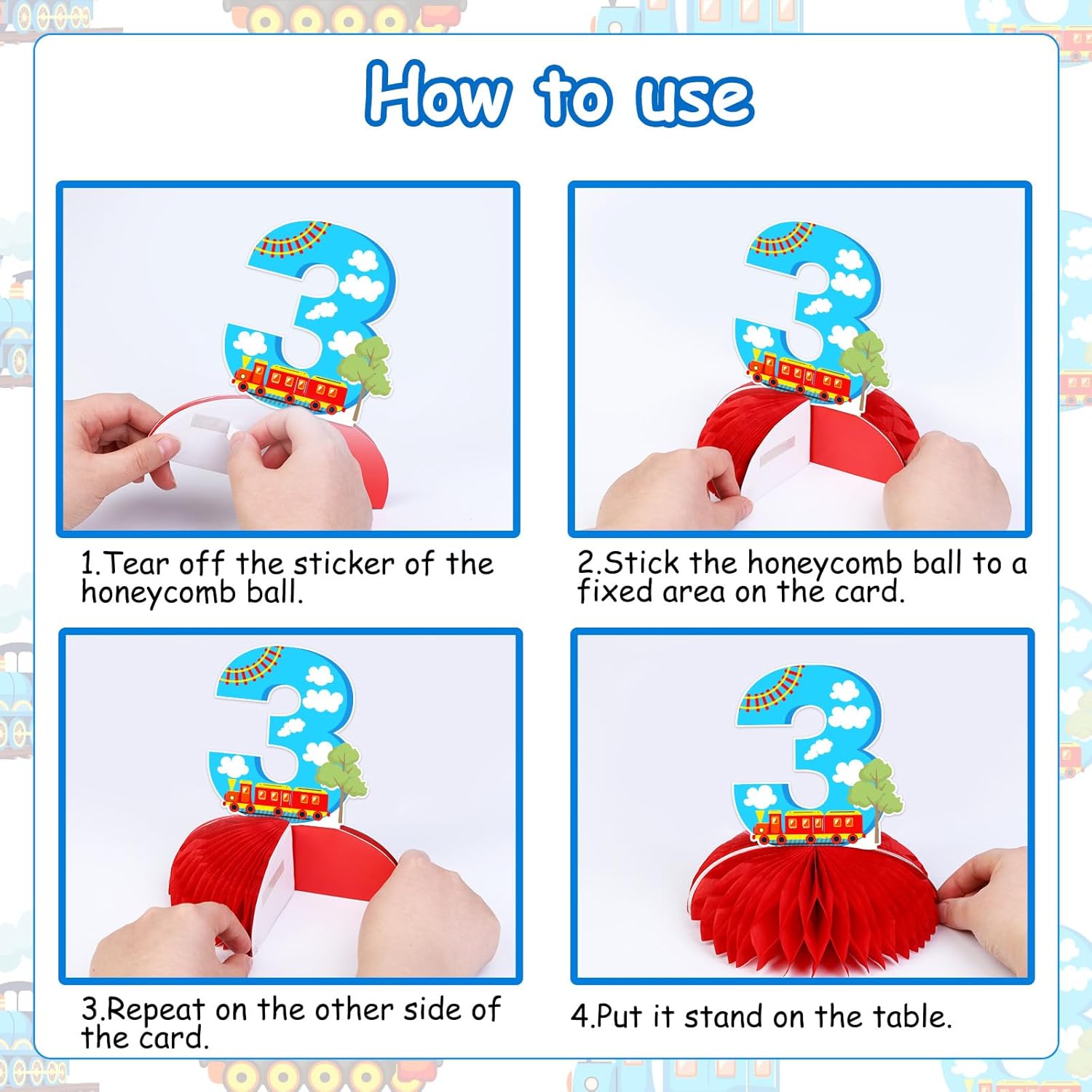 【Adorabile set per il 3° compleanno da 8 pezzi】Rallegra il compleanno del tuo bambino di 3 anni con questa decorazione del treno per il 3° compleanno da 8 pezzi. Ideale per una decorazione per una festa chugga chugga, ogni centrotavola a nido d'ape è un'opera d'arte.,Cartone fronte-retro per un look vivido: il nostro set di decorazioni per il treno del 3° compleanno utilizza cartoncino con stampa fronte-retro. Per una decorazione per feste Chugga Chugga Im Three, questo significa che ogni angolo mostra i simpatici treni. Dai classici trenini Choo Choo ai temi Chugga Chugga I'm tre, queste decorazioni aggiungono un tocco divertente e vivace alla festa di compleanno del tuo bambino. Quindi ripeti il processo sull'altro lato, otterrai un delicato centrotavola a nido d'ape da tavolo Choo Choo Choo Im Three. Occasione applicabile: le decorazioni Chugga Chugga Im Three sono adatte a diversi tipi di feste, treno per il 3° compleanno, festa Chugga Chugga Im Three, festa di compleanno con trasporto, ragazzi del 3° compleanno e altro ancora.