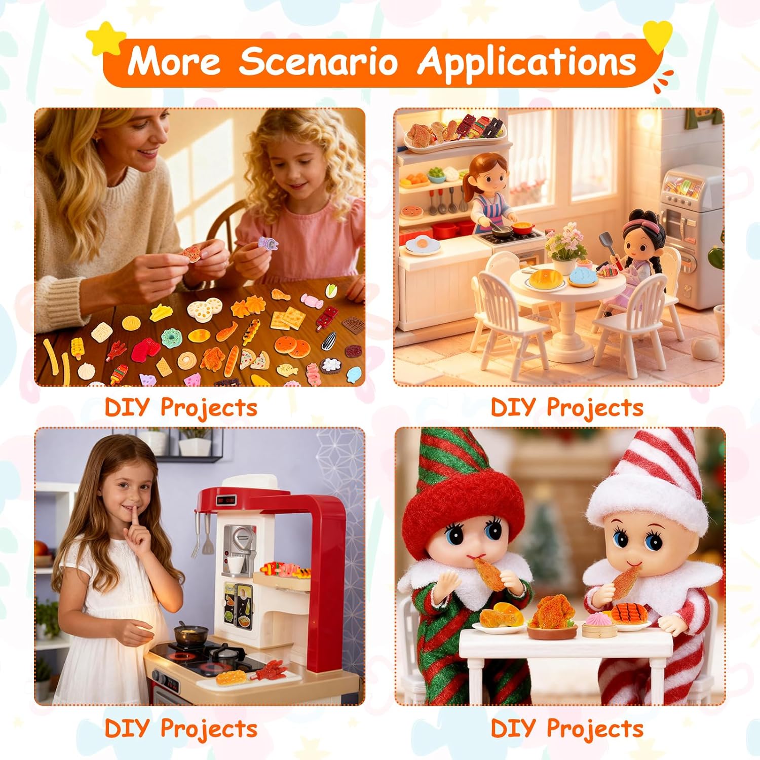 【Pacchetto incluso】Riceverai un set di cibo per una casa delle bambole in miniatura da 80 pezzi, tra cui pane in miniatura, toast, sushi, cupcakes, uova, panini, patatine, biscotti, arance, porridge, hamburger, croissant, popcorn e altro (stili casuali). La quantità e la varietà di stili sufficienti sono sufficienti per soddisfare le tue esigenze e permetterti di giocare con gli amici e rafforzare le tue relazioni. 【Design realistico】 Ogni accessorio per gnomo in miniatura presenta colori vivaci e trame chiare, che li rendono realistici. Le dimensioni ridotte li rendono ancora più belli e attraenti. Progettati per bambole e case delle bambole, questi adorabili giocattoli alimentari in miniatura aggiungeranno un senso di raffinatezza e integrità alla tua casa delle bambole e forniranno la decorazione perfetta per un look più realistico. 【Materiali di alta qualità】 I nostri accessori per gnomi natalizi sono realizzati in resina di alta qualità e presentano una lavorazione artigianale dettagliata. Sono durevoli, sicuri, stabili e resistenti alle crepe o allo sbiadimento. Cucinare per le tue bambole o i tuoi amici è un'esperienza divertente. Puoi anche giocare a giochi di cucina o al ristorante con i tuoi bambini, promuovere la loro immaginazione e creatività, la coordinazione occhio-mano e insegnare loro il cibo. 【Decorazioni in miniatura】 Queste case delle bambole da colazione in miniatura ti consentono di ricreare la vita di tutti i giorni con dettagli realistici. Sono perfetti per il gioco di ruolo e sono adatti a tutte le case delle bambole in miniatura in scala 1:12, giardini in miniatura, paesaggi in miniatura, scene in miniatura e vetrine dei negozi. Possono essere utilizzati anche per il fai da te e per la decorazione di telefoni cellulari, cornici per foto, terrari e molto altro ancora. Ottimo regalo: questi accessori in miniatura per casa delle bambole aggiungono vitalità e calore a qualsiasi casa delle bambole, rendendoli il regalo perfetto per la famiglia, gli amici, i bambini e gli appassionati di case delle bambole per compleanni, festa dei bambini, Natale, Ringraziamento e Pasqua. Permettono ai bambini di immergersi nelle gioie della cucina e del cucinare senza noia e di risvegliare la loro creatività e curiosità.