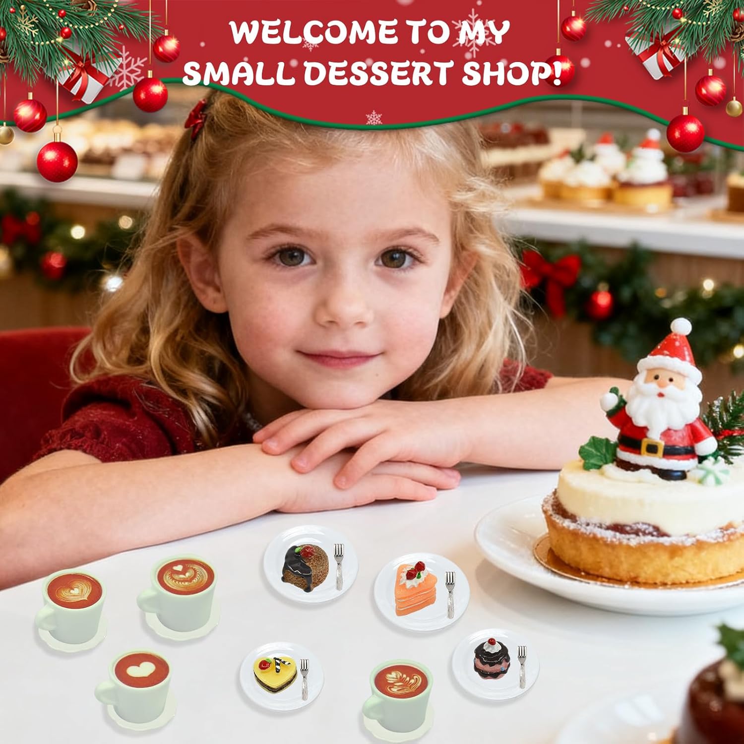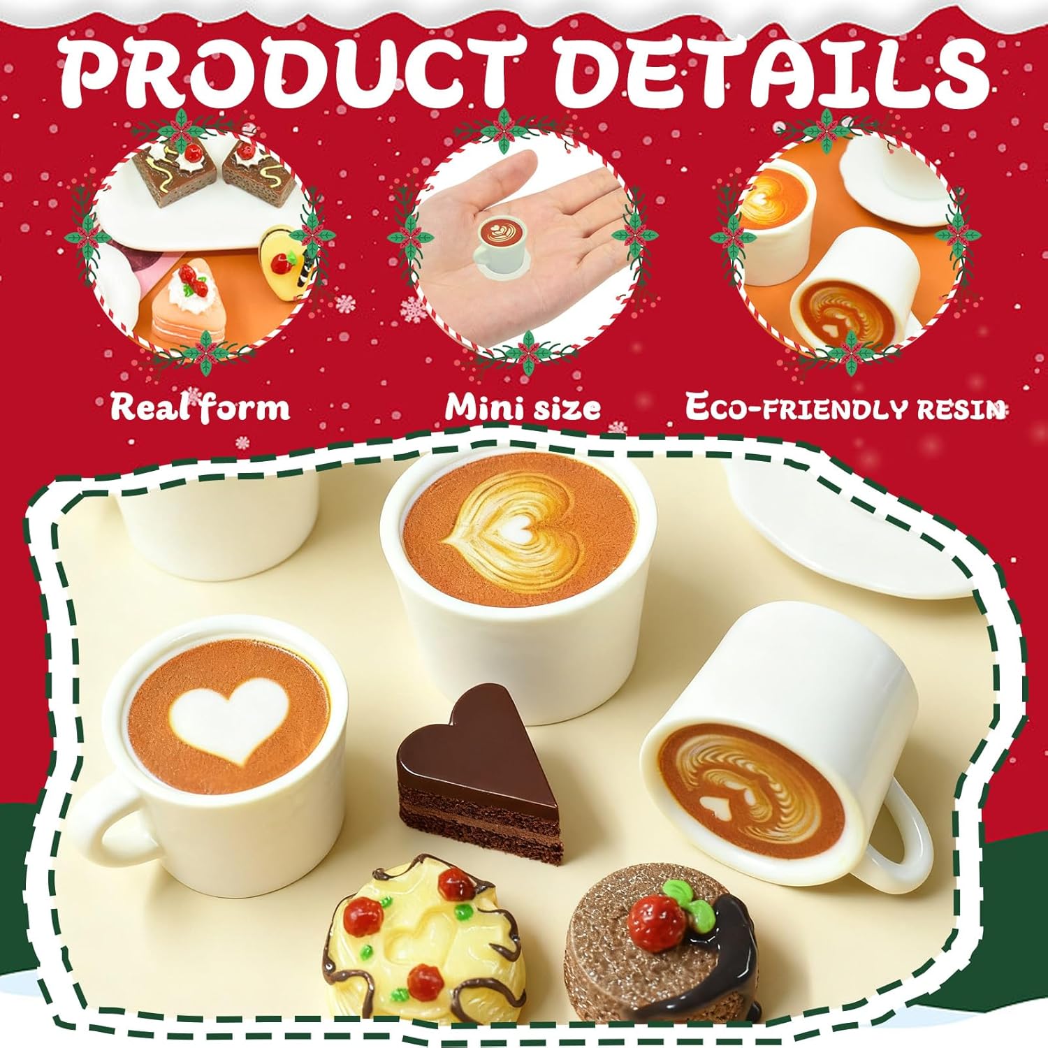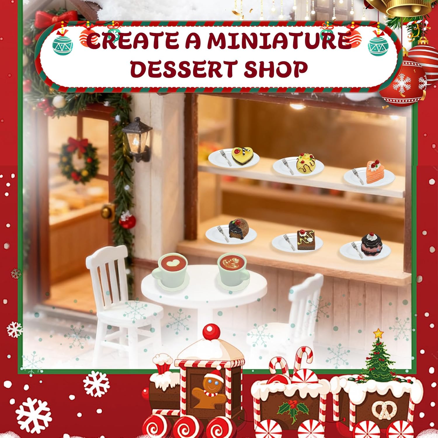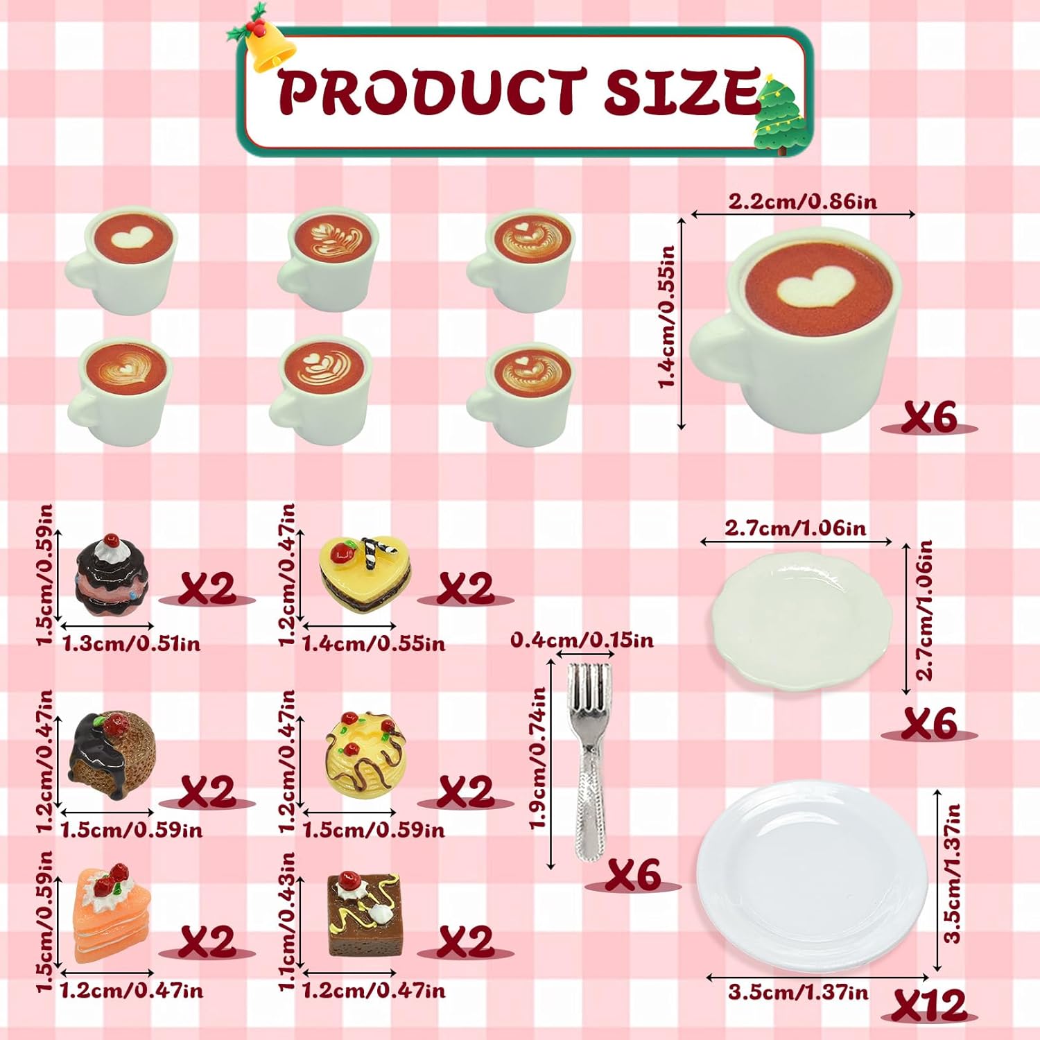 【Set di alimenti in miniatura】: Il nostro set include: 6 tazze da caffè + 6 piattini da caffè + 12 piattini da torta + 12 torte in miniatura + 6 forchette in miniatura. Progettati per case delle bambole in scala 1:12, questi pezzi compatti sono ideali per le decorazioni natalizie. 【Materiali sicuri】: Realizzati in resina, questi accessori in miniatura per case delle bambole presentano superfici lisce. Ecologici e atossici, resistono alla deformazione per un uso duraturo. Nota: contiene piccole parti non adatte a bambini di età inferiore a 3 anni. 【Dettagli realistici】: i prodotti da forno a tema elfo, realizzati con cura, presentano colori vivaci che rendono questi dolcetti in miniatura straordinariamente realistici. La loro scala compatta ne accentua il fascino. Arricchite facilmente la cucina della vostra casa delle bambole con fascino e gioia organizzando tea party in miniatura, elevando la vostra casa delle bambole a una raffinata perfezione. 【Decorazioni fai da te】: usa questi accessori da forno a tema fatato per creare una casa delle bambole fai da te, stimolando la creatività dei bambini e favorendo le loro abilità manuali. Il cibo a tema fatato crea un'atmosfera natalizia festosa, regalando a te e ai tuoi bambini più divertimento e momenti di relax. 【Il regalo di Natale perfetto】: questo set di cibo in miniatura è un'aggiunta raffinata a qualsiasi casa delle bambole, con la sua delicata collezione di dessert che lo rende un regalo davvero incantevole. Adatto sia come giocattolo decorativo per case delle bambole che come accessorio paesaggistico in miniatura, è un regalo ideale per bambini, familiari e amici.