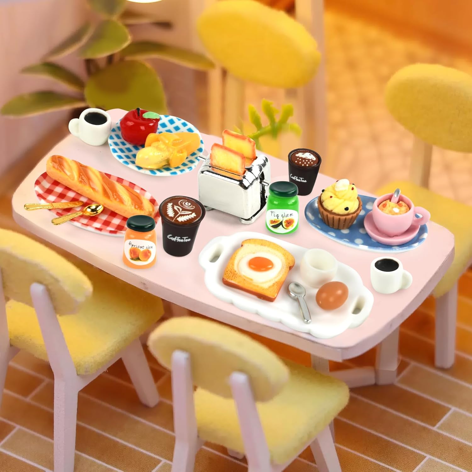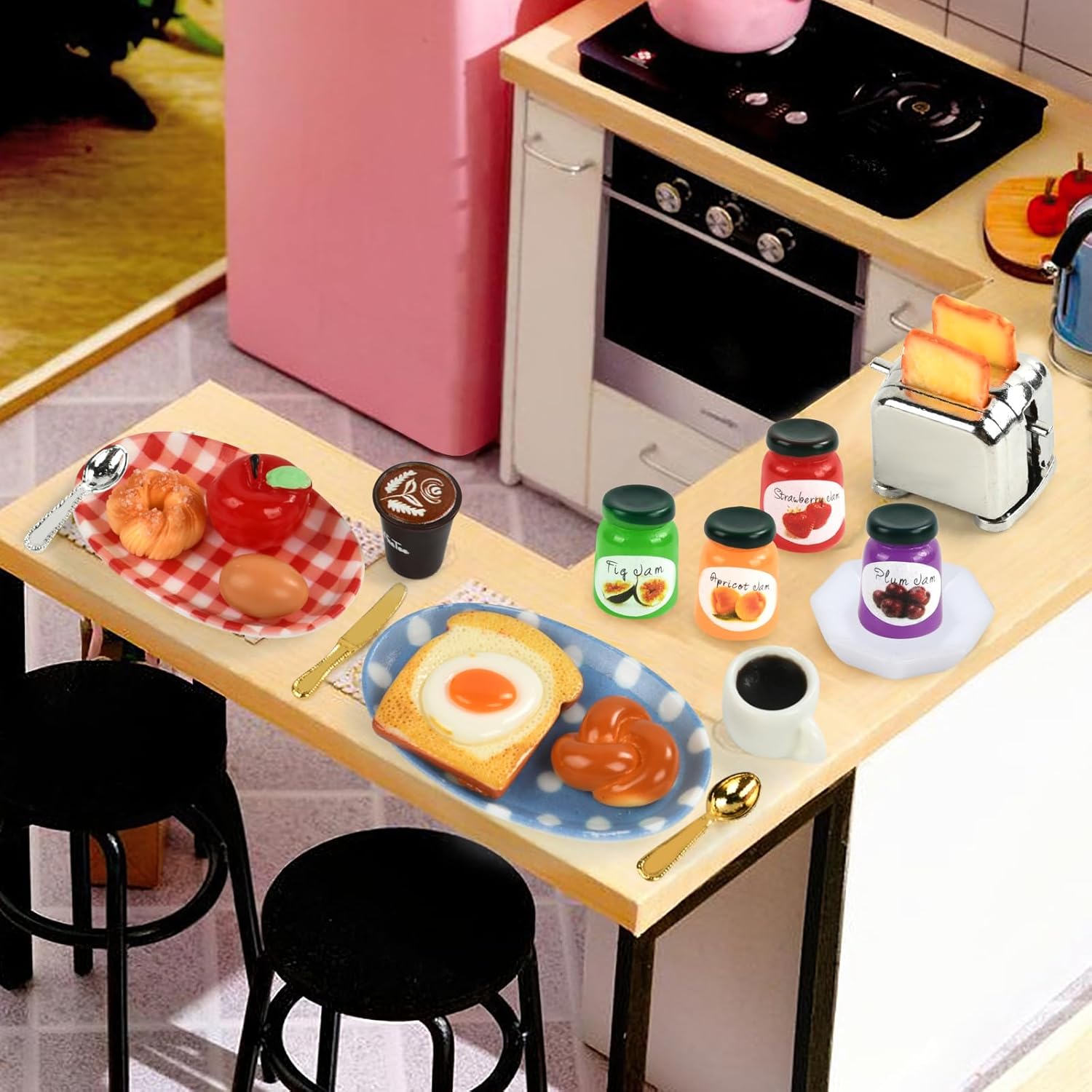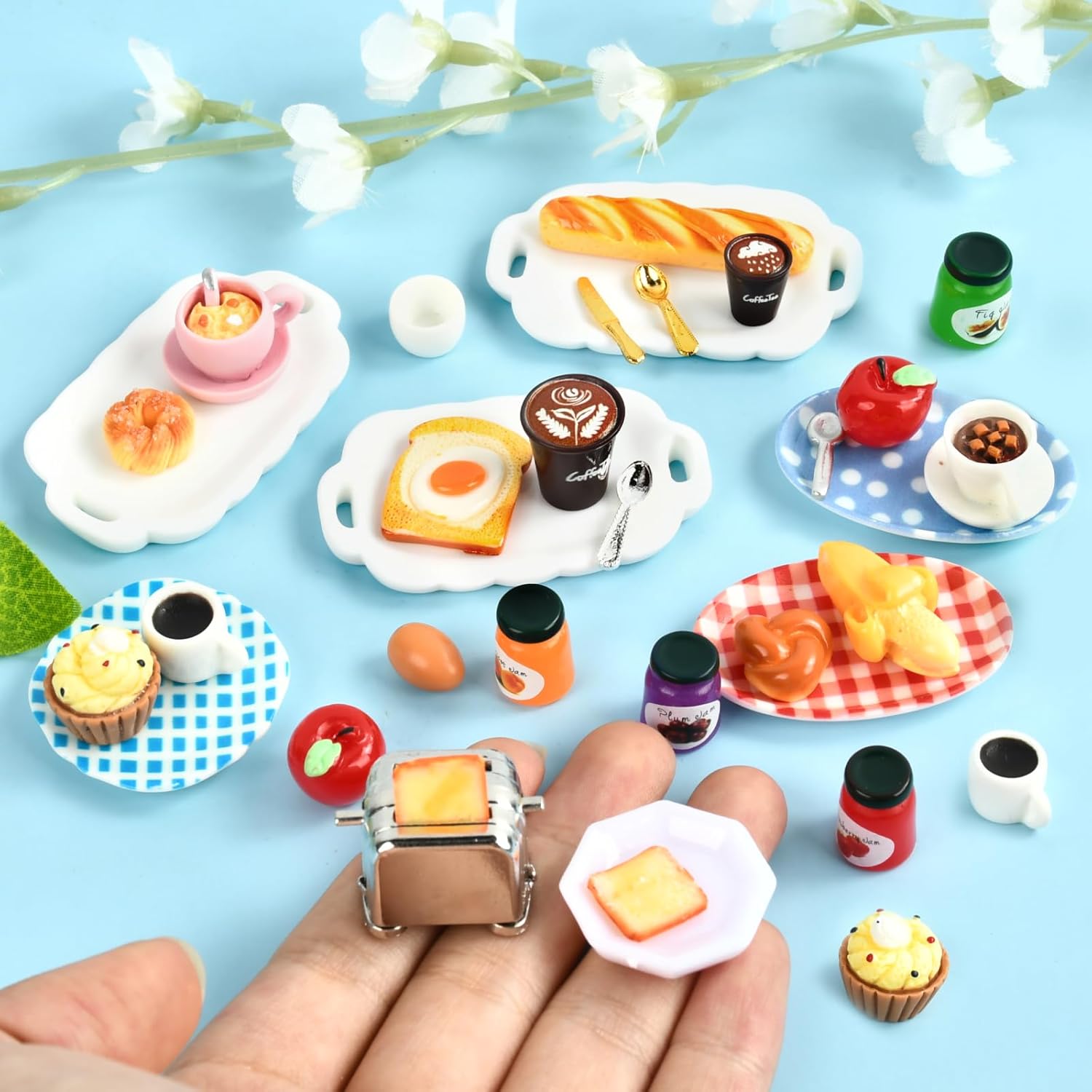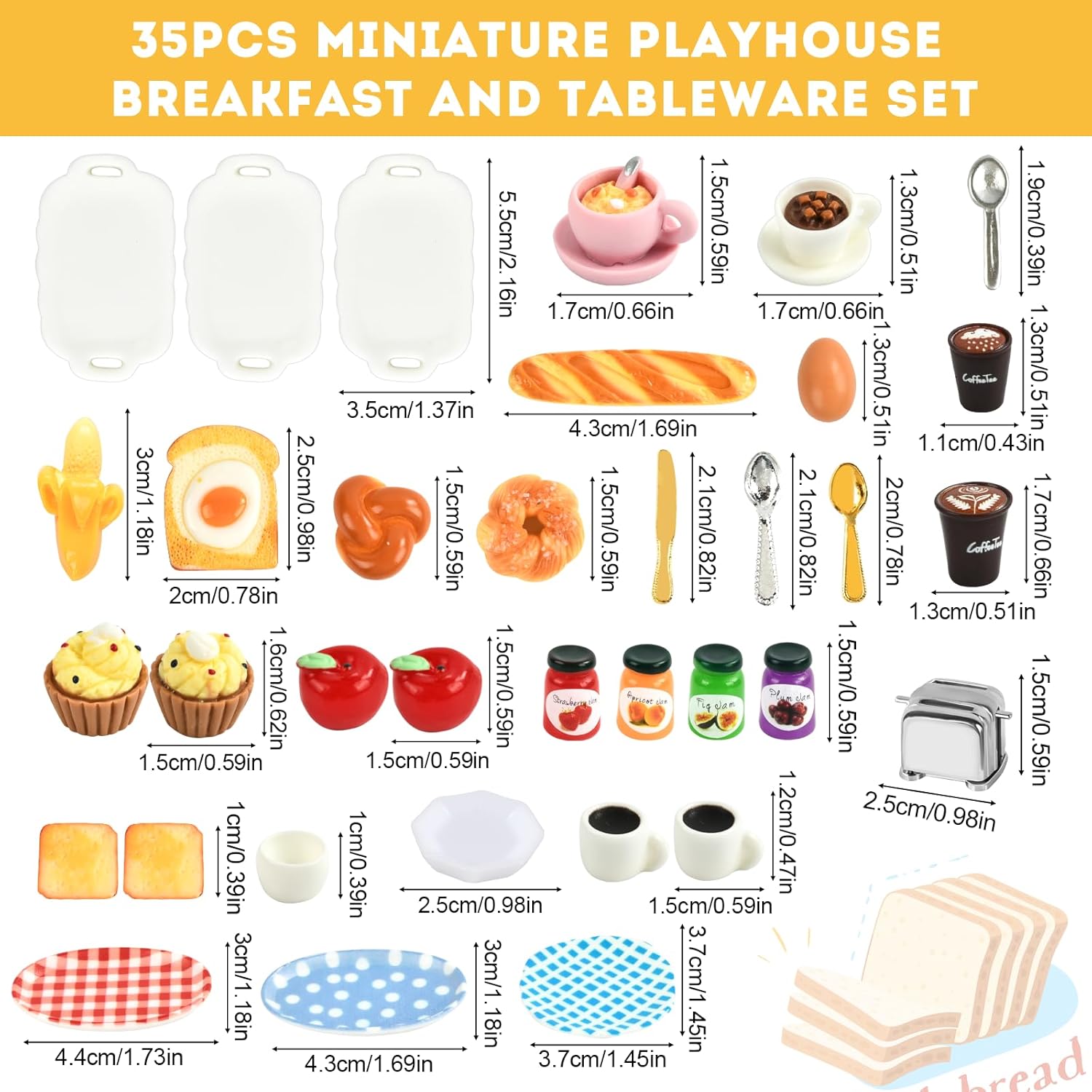 【pacchetto include】Riceverai 8 set di accessori casa bambole miniatura con 35 pezzi in totale, tra cui pane in miniatura, toast, ciambelle, cupcake, uova, caffè, bevande, banane, mele, cucchiai, coltelli, forchette, marmellata, tostapane e vassoi. Tantissimi stili e quantità sono sufficienti per soddisfare le tue esigenze e puoi anche giocare con i tuoi amici per migliorare il vostro rapporto! 【Design realistico】Ogni miniature cibo bambole sembra realistico con colori vivaci e texture chiare. Le piccole dimensioni li rendono più belli e attraenti. Progettati per bambole e casette da gioco, i graziosi mini cibi aggiungono un senso di raffinatezza e completezza alla tua casetta da gioco, fornendo il tocco finale perfetto per avvicinare la tua casetta da gioco alla vita reale. 【Materiali di alta qualità】I nostri miniature cibi sono realizzati in resina di alta qualità, ben fatti, durevoli, sicuri, robusti e non facili da rompere o sbiadire. Il gioco è divertente perché puoi cucinare per la tua bambola o i tuoi amici. Puoi anche giocare a giochi di cucina o di ristorante con i tuoi bambini per sviluppare la loro immaginazione e creatività, la coordinazione occhio-mano e insegnare loro il cibo. 【decorazioni in miniatura】Questo cibo miniatura gioco ti consente di ricreare una vita quotidiana realistica, perfetto per i giochi di ruolo, adatto a tutte le case delle bambole in miniatura in scala 1:12, giardini in miniatura, paesaggi in miniatura, scene in miniatura e vetrine di negozi, e può anche essere utilizzato per lavori fai da te, decorare telefoni cellulari, cornici per foto, contenitori di vetro e altro ancora. 【regalo squisito】Questi alimenti miniatura aggiungono vitalità e calore a qualsiasi casa da gioco e sono regali perfetti per la famiglia, gli amici, i bambini e gli amanti delle case da gioco per compleanni, festa dei bambini, Natale, Ringraziamento, Pasqua. I giocatori possono immergersi nel divertimento della cucina e del cibo senza annoiarsi, il che stimola anche la loro creatività e curiosità.