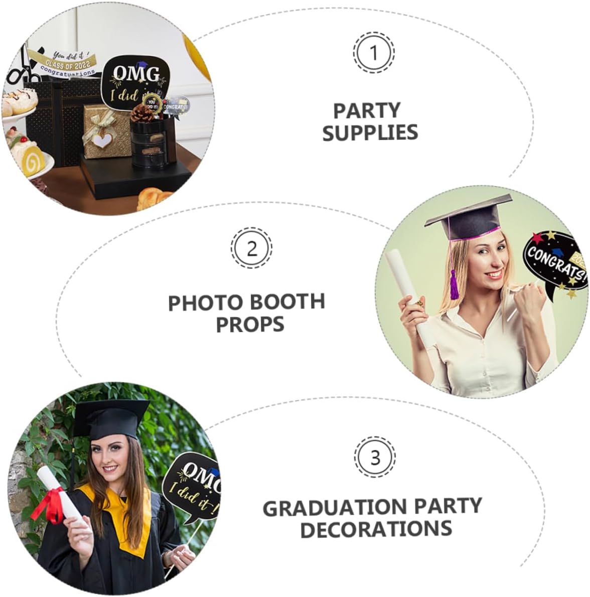 Accessori per selfie: questo set di accessori per foto a tema laurea include diversi stili creativi, consentendoti di scegliere di scattare foto con compagni di classe e insegnanti, accessori per foto scolastiche Photo booth per festa di laurea: gli accessori per selfie possono aggiungere un tocco speciale alla tua festa a tema o alla tua festa di laurea! congratulazioni, accessori per foto di laurea Photobooth per festa di laurea: un design bello e interessante per le foto di scena che renderà la festa di laurea vivace! congratulazioni, ritaglio per foto di scena di laurea Accessori per foto di laurea: decora la tua festa con questi accessori per foto di laurea, eleganti e accattivanti, accessori per photobooth Oggetti di scena per foto: i colori vivaci possono creare un'atmosfera , rendendo ogni luogo bello e unico, oggetti di scena per la celebrazione di eventi