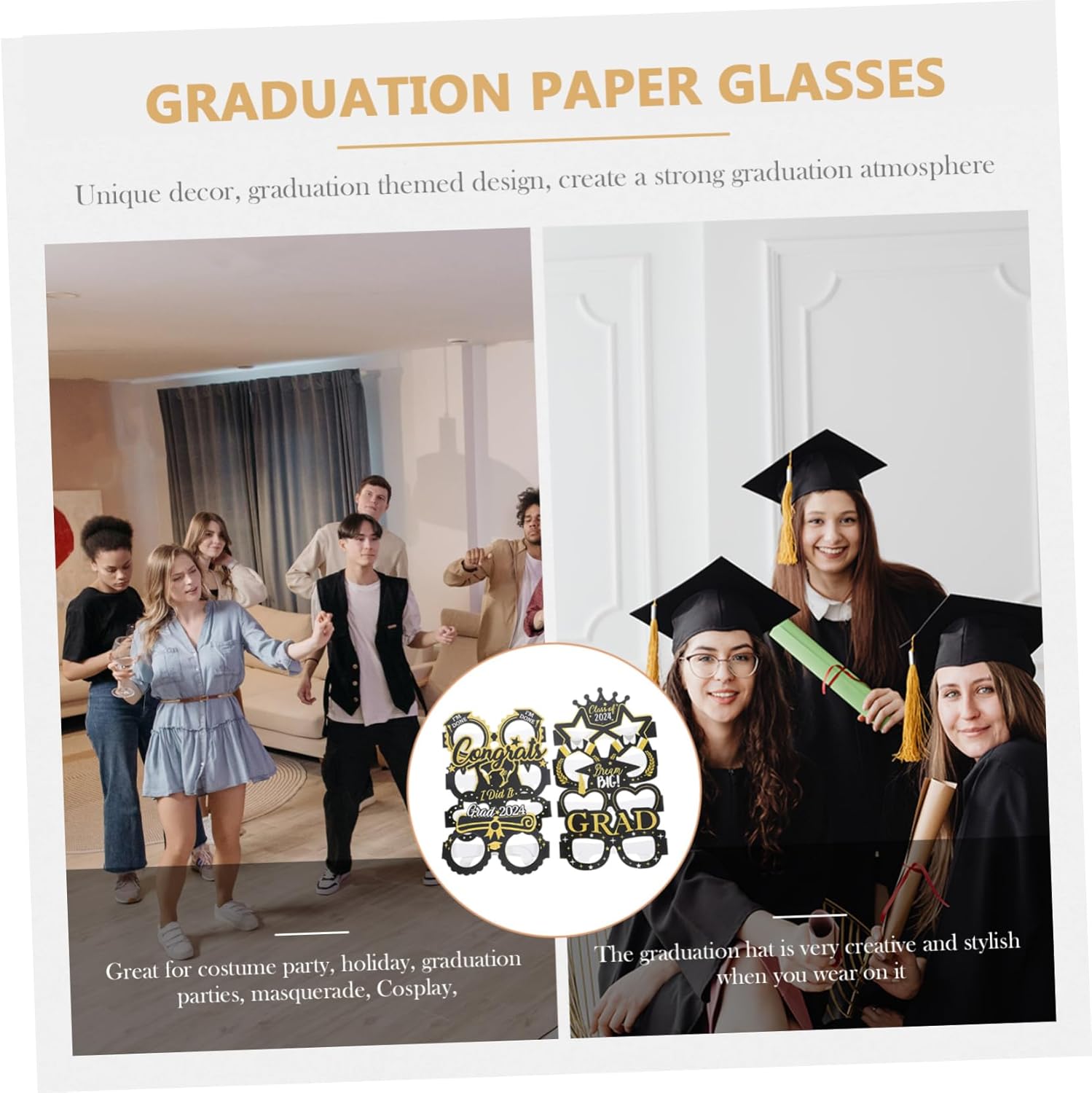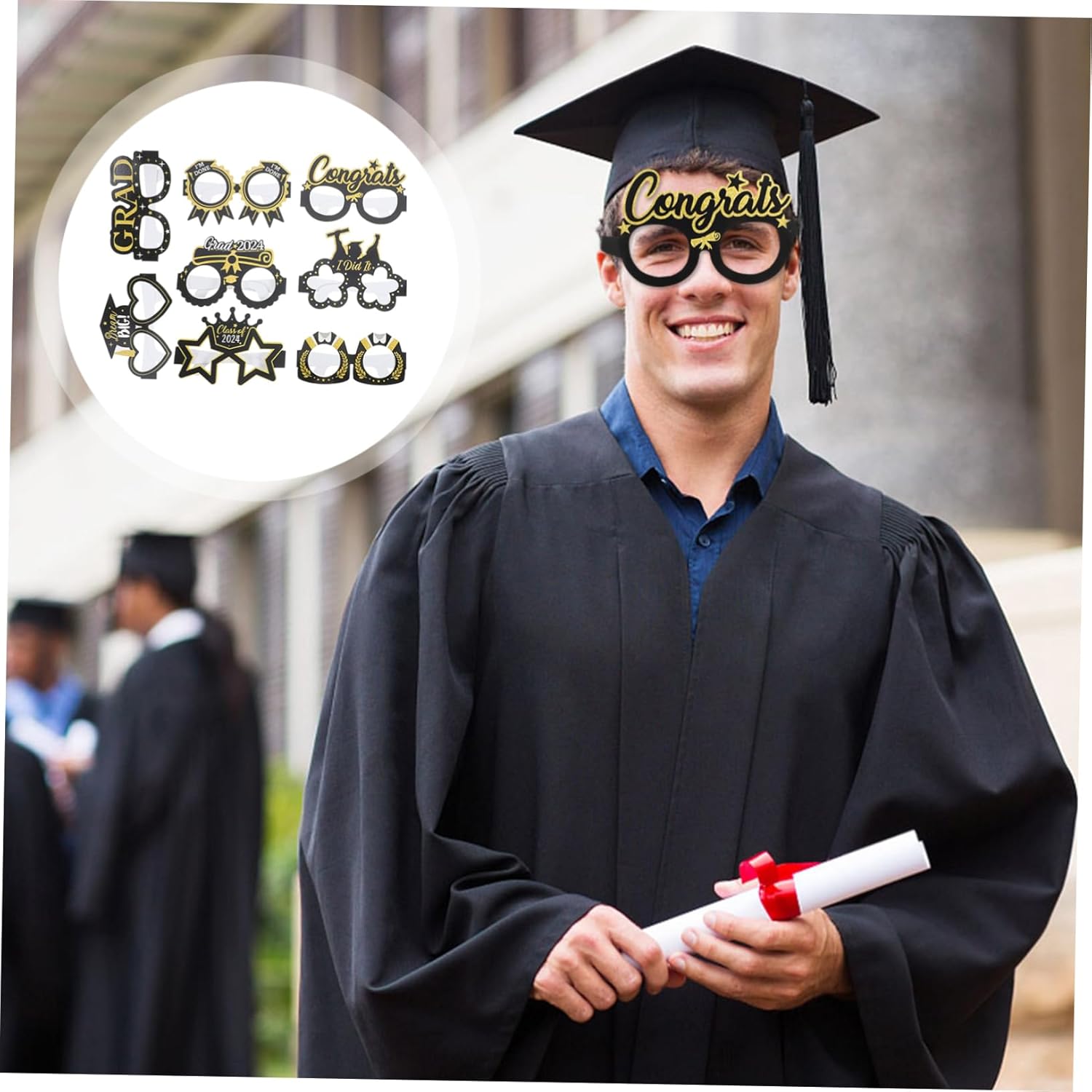 Il pacchetto include 8 bicchieri da laurea Caratteristiche -Materiale: carta per forniture per feste di laurea -Colore: oggetti di scena fotografici assortiti - Dimensioni: 14,50X12,50X9,70 cm/5,70X4,91X3,81 pollici oggetti di scena per foto di laurea -Disponibile in un set di diversi stili di occhiali, offrendo agli utenti una varietà di opzioni tra cui scegliere per le foto della festa di laurea. -Versatili e adatti a varie celebrazioni come feste di laurea, servizi fotografici di laurea e altri interessanti oggetti di scena fotografici. -Leggeri e portatili, comodi da indossare, facili da portare con sé in diverse occasioni ed eventi. Accessori per foto di laurea 2024. - Aumenta il divertimento e il valore sentimentale delle foto di laurea con i suoi occhiali da laurea dal design unico e giocoso. - Puoi indossare gli occhiali con i tuoi compagni di classe o amici per scattare delle foto alla festa di laurea e lasciare dei ricordi con gli occhiali da laurea. Descrizione della merce forniture per feste Con diversi stili di occhiali inclusi in ogni confezione, possono soddisfare diversi requisiti di tema e scena. montature per occhiali per la laurea Questi occhiali di carta aggiungono divertimento e valore commemorativo alle foto di laurea. laurea Gli accessori per foto di laurea, gli occhiali di carta, sono un must per qualsiasi stagione di laurea. occhiali per la laurea Realizzati in materiale di carta, sono sicuri e leggeri