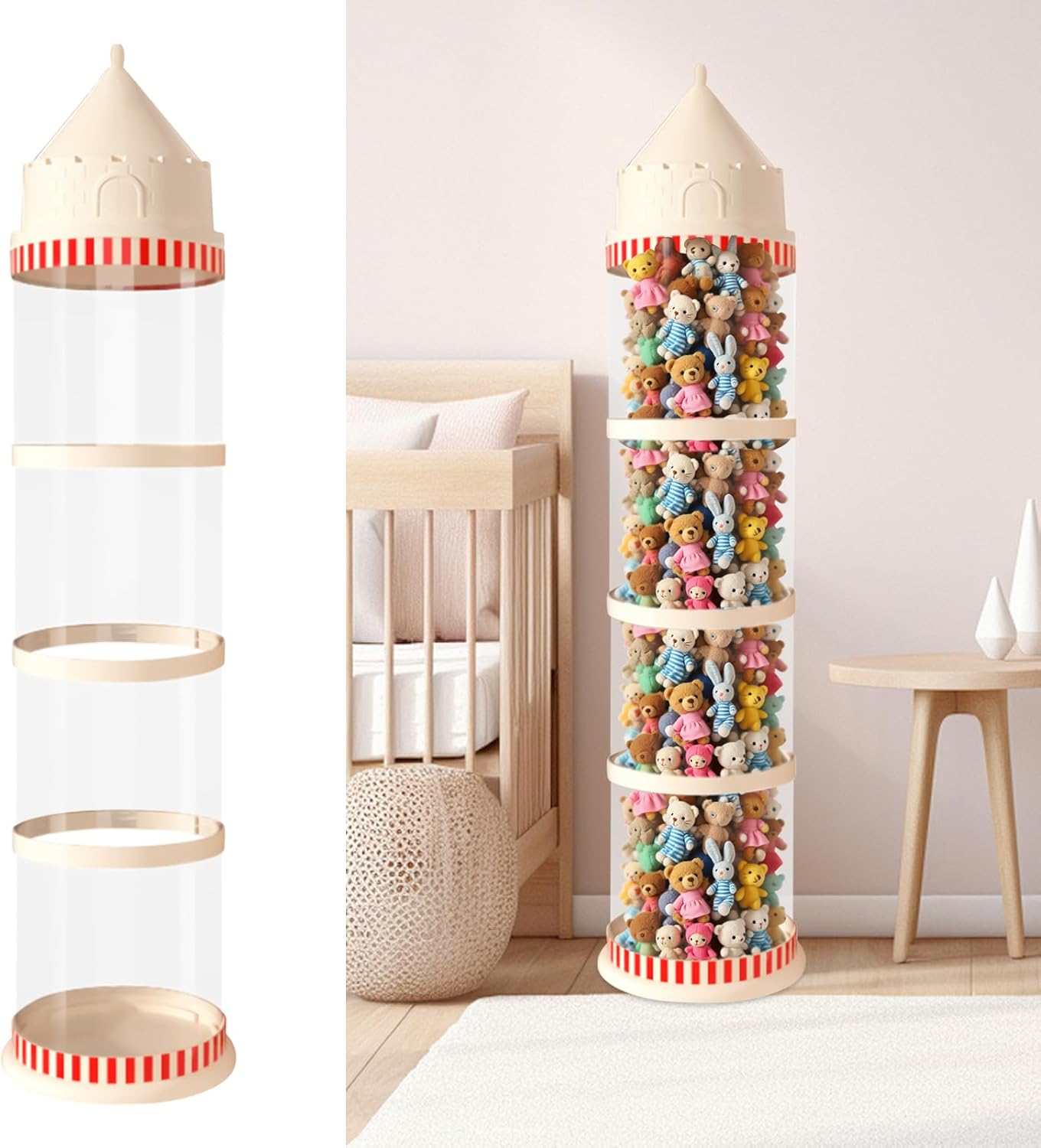 Incantevole ambiente fiabesco: con colori vivaci e brillanti e design sognante ispirato al burgine, questo contenitore per giocattoli dona alle aree dei bambini un'atmosfera incantevole e combina un fascino giocoso con la creatività infantile Conservazione ordinata: mantiene a portata di mano collezioni di animali di qualsiasi dimensione, favorisce una suddivisione chiara ed elimina le zone di gioco disordinate grazie alla struttura intelligente Pulizia garantita: la struttura antipolvere protegge dallo sporco, isola le particelle nocive e garantisce condizioni di conservazione permanenti per animali di peluche. Facile da usare: la parete trasparente permette di localizzare rapidamente i giocattoli e rimuovere facilmente i peluche, garantendo una comoda organizzazione in qualsiasi stanza senza compromettere la funzionalità o l'accessibilità. Vantaggio del materiale: la speciale struttura in ABS del contenitore garantisce una stabilità ottimale della forma e una lunga durata in caso di uso quotidiano