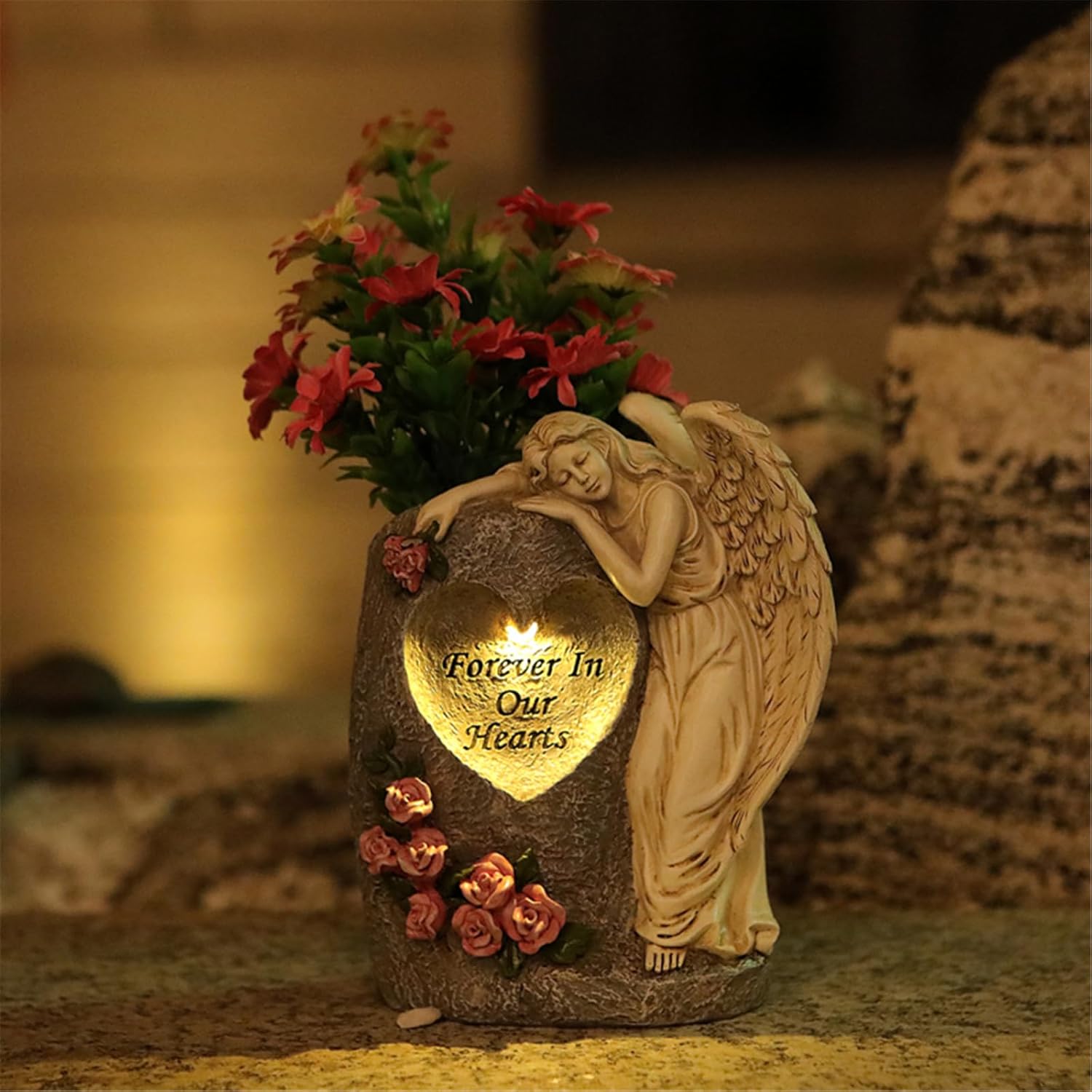 Disegni per luoghi di sepoltura, sentieri del giardino, monumenti angolo o terrazze, la sua illuminazione solare crea un'atmosfera tranquilla mentre resistono alle condizioni climatiche difficili Artigianato realizzato con resine di alta qualità, questo vaso da 14,3 × 18,4 cm contiene un'energia solare per la conversione di energia degli effizzatori e con due punte stabilizzanti per il posizionamento sicuro in diversi terreni La statua angelica scolpita che si verifica e l'illuminazione automatica creano una presenza rilassante e forniscono sia la marcatura del percorso funzionale che la connessione emotiva zona sacra Ideale per famiglie in lutto, appassionati di giardinaggio e cimiteri che cercano una soluzione semplice e significativa per la decorazione domestica Migliora il tuo spazio monumento all'aperto con questo vaso da tomba solare dispone di resine resistenti alle intemperie e un'eleganza dell'ornamento angelo per una grande durata e ambienti sereni