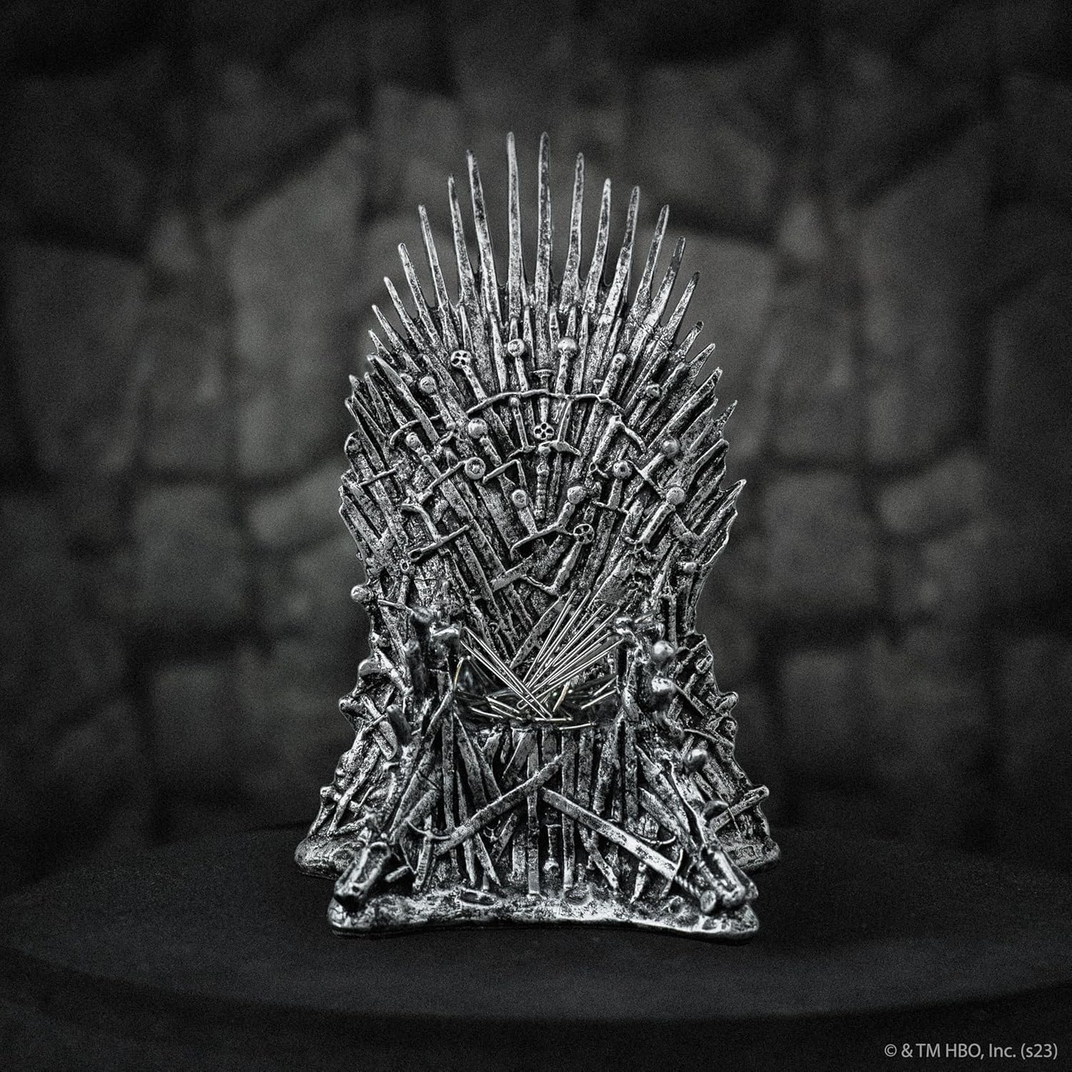 Entra nel mondo di Game of Thrones: questo supporto in ferro magnetico è l'oggetto da esposizione definitivo per ogni fan. Progettato per assomigliare esattamente all'iconico Trono di Spade dello show, questo supporto è il modo perfetto per mostrare il tuo amore per i Sette Regni. PRODOTTO UFFICIALE CON LICENZA WARNER BROS - Questo supporto magnetico per trono di ferro è stato progettato nel rigoroso rispetto della licenza Warner Bros. DESIGN ORIGINALE: Realizzati al 98% in poliresina e al 2% in magnete, gli intricati dettagli sul trono, comprese le spade che compongono la sua struttura, sono impressionanti e attireranno sicuramente l'attenzione di chiunque lo veda. Un marchio riconosciuto: Warner Bros si affida a Warner Bros per rappresentarli in termini di produzione di merchandising e per sviluppare linee di prodotti di alta qualità de Il Trono di Spade e La Casa dei Draghi