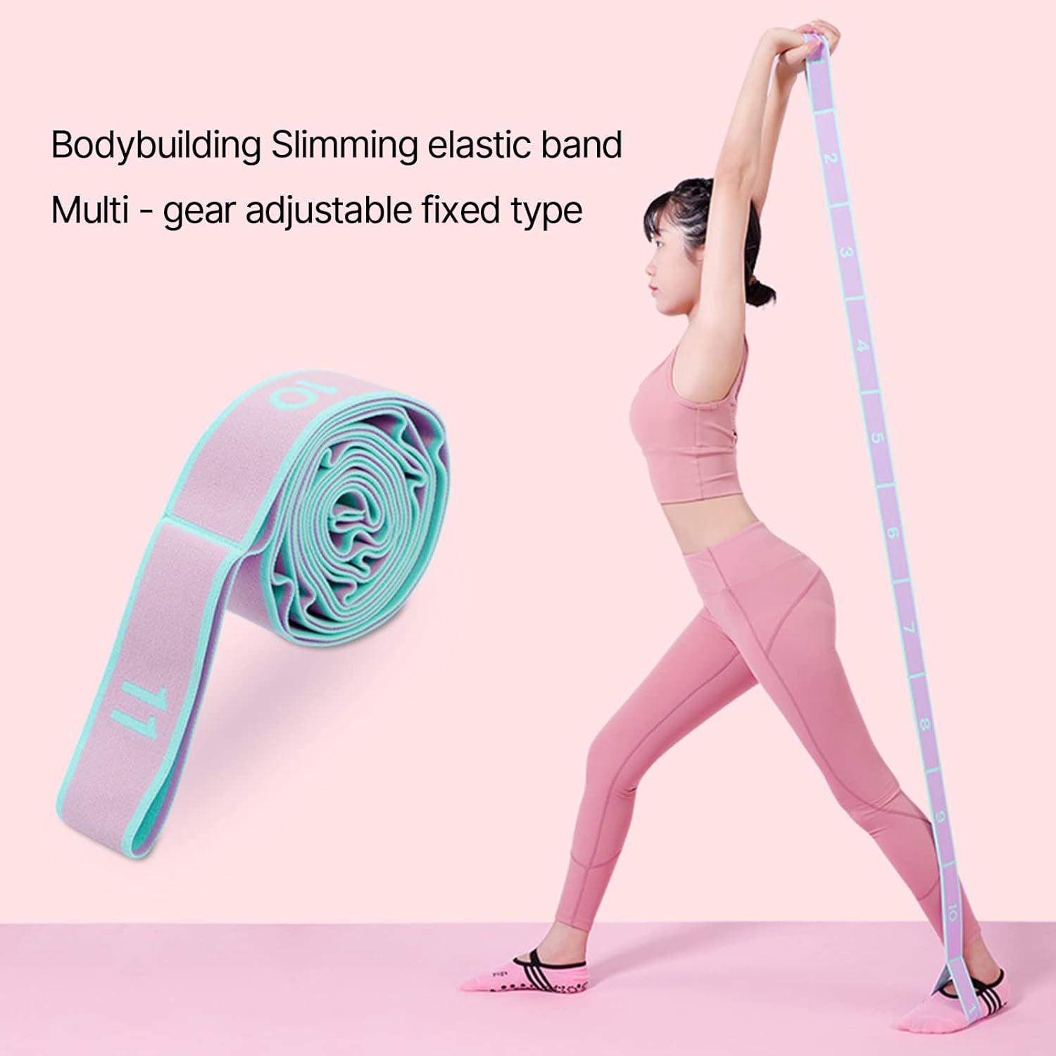 Cinghia elastica per yoga. Queste cinghie elastiche per yoga sono appositamente progettate per allungare le gambe, le braccia, le spalle e tutto il corpo. Ideale per yoga, pilates, balletto, danza, allenamento, fitness, ginnastica, allenamento della forza del tendine del ginocchio e fisioterapia AUMENTA LA FLESSIBILITÀ. Cinghia elastica molto adatta per principianti e atleti avanzati e yoga, fisioterapia per un modo sicuro ed efficace per allungare e allentare i muscoli tesi durante gli allenamenti BANDA ELASTICA ELASTICA A 9 ANELLI. Design professionale, con 9 anelli individuali, consente di aumentare gradualmente la difficoltà di stretching ed esercizi. Progettato per allungare tutti i muscoli e tendini in modo sicuro PRATICABILITÀ. Allungare il corpo per rendere i muscoli più elastici, che aiuta e lesioni, può anche migliorare la flessibilità del corpo e aumentare il movimento. Speciale per ballerini, yogi e atleti professionisti Leggero e portatile. Questa fascia elastica per yoga, leggera e portatile. 120 x 4 cm, dimensioni compatte da trasportare