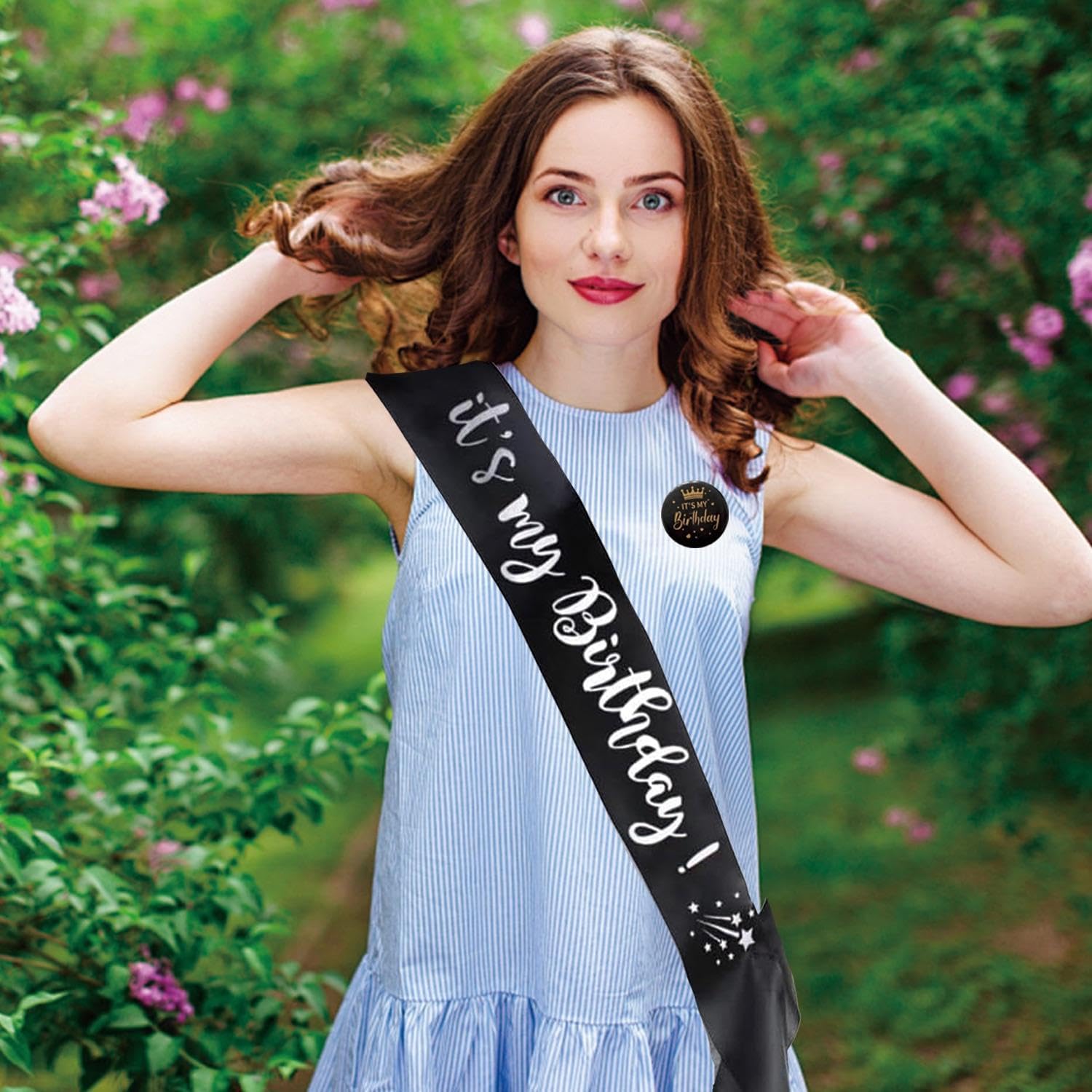 【Contenuto Del Prodotto】 Riceverai 1 Tracolla Di Compleanno E 1 Badge Di Compleanno. La Dimensione Della Tracolla È 9,5 X 156 Cm E La Dimensione Dello Stemma È 7,6 Cm. Sono Entrambi In Nero E Sono Accessori Che Aggiungono Un'Atmosfera Festosa Alle Feste Di Compleanno. 【Materiale Del Prodotto】 Questa Tracolla Per Compleanno È Realizzata In Raso, Morbido E Liscio Ed È Comodo Da Indossare. Il Badge Di Compleanno È Realizzato In Materiali Plastici E Metallici Ed È Robusto E Durevole. La Parte Metallica È Un Perno Solido Per Garantire Che Il Badge Sia Stabile E Non Cada Facilmente. 【Design Alla Moda】 I Nastri E I Badge Di Compleanno Di Questo Prodotto Hanno Uno Sfondo Nero E Presentano Un Accattivante Testo Bianco E Oro Stampato Con Le Parole "It'S My Birthday". È Semplice Ed Elegante Ed È Adatto A Molti Tipi Di Feste Di Compleanno A Tema, Soprattutto Di Notte O In Ambienti Scarsamente Illuminati, Sembra Più Accattivante. Facile Da Usare: Questo Cinturino Per Compleanno È Di Media Lunghezza E Facile Da Trasportare, Adatto Alla Maggior Parte Degli Adulti E Degli Adolescenti. Il Badge È Dotato Di Una Spilla Metallica Che Può Essere Facilmente Agganciata Ad Indumenti O Accessori. È Leggero E Comodo Da Indossare E Adatto Per Un Uso A Lungo Termine. 【Ampia Applicazione】 Questo Nastro E Badge Di Compleanno È Perfetto Per Feste Di Compleanno Come Feste, Riunioni O Servizi Fotografici, Ecc. Il Suo Design Elegante E Semplice È Adatto Non Solo Per Le Donne Ma Anche Per Gli Uomini, Rendendolo La Scelta Ideale Per Aggiungere Atmosfera Delle Feste Di Compleanno Da Migliorare.