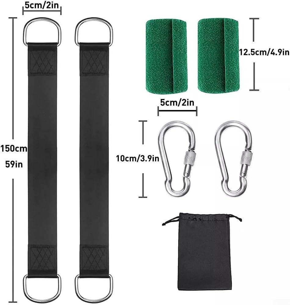 【Elevata capacità di carico】Ogni cinghia dell'attacco è progettata per resistere a una capacità di carico di 500 kg. È dotato di un gancio a forma di D e di una chiusura di sicurezza in acciaio industriale per evitare che l'altalena dell'albero cada durante l'oscillazione, la sicurezza di tutta la famiglia. Facile da usare e trasportare: per l'installazione non sono necessari fori o strumenti aggiuntivi. Con due allegati, l'intera configurazione può essere completata in cinque minuti. Offre un modo rapido e senza problemi per creare un'altalena sicura e resistente per i bambini senza aspettare. 【Adatto a diversi tipi di altalene】 Questo set include due accessori per altalene per alberi, adatti per altalene per alberi, altalene da giardino, altalene per bambini, altalene per portico e patio e persino altalene a cinghia singola, altalene per pneumatici, altalene a disco e altalene a rete. Offre versatilità e compatibilità con diverse opzioni di oscillazione. 【Resistente alle intemperie e】 Le grucce altalena sono realizzate in poliestere ad alta resistenza, che è sia impermeabile che resistente alle intemperie. Il grande moschettone e l'anello a D sono forgiati in acciaio inossidabile, la loro sicurezza, robustezza e resistenza all'usura. Goditi il divertimento e la libertà dell'altalena all'aperto tutto l'anno. 【Sicurezza e protezione degli alberi】 Il nostro accessorio per altalena per alberi è dotato di cuscinetti di protezione per alberi per fornire una forte protezione agli alberi mentre ti godi l'altalena. Ti permette di divertirti preservando l'ambiente naturale.