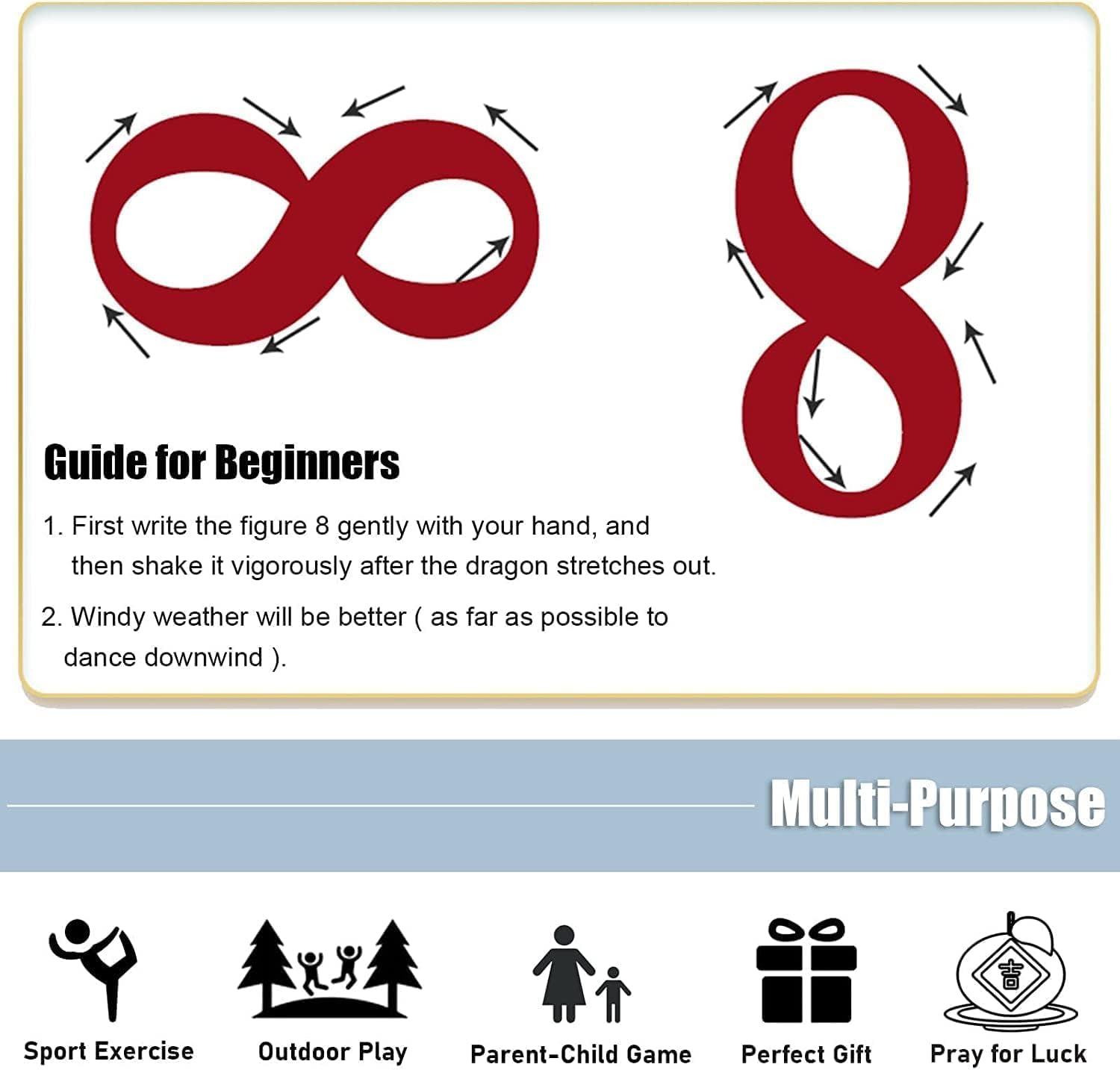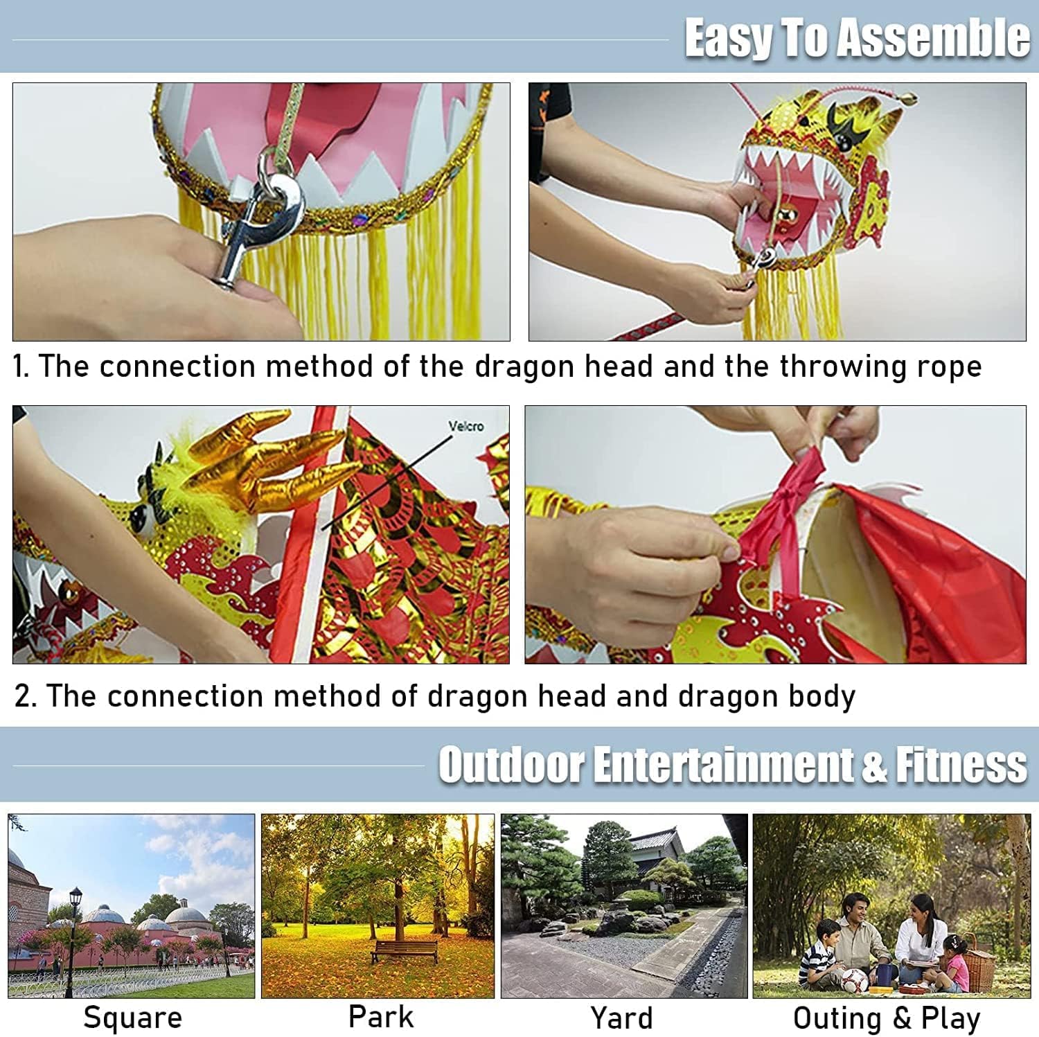 La Dragon Flag Dance è uno sport a basso impatto che può migliorare la coordinazione, l'immagine di sé, la fiducia in se stessi e la funzione cerebrale. Materiale: tessuto. Il colore del tessuto è particolarmente bello. La cintura svolazzante è dotata di una lunga corda che può essere utilizzata per vari movimenti mentre si balla e si gioca. Facile da montare: 1. Collegamento tra la testa del drago e la corda da lancio; 2. La connessione tra la testa del drago e il corpo del drago. CINTURA COLORATA FOLK FITNESS CINESE - Può portare un divertimento senza fine a te e ai tuoi genitori. È anche un'attrezzatura da gioco/esercizio fisico/fitness per la danza, il pole spinning, l'allenamento di ginnastica, l'allenamento circense, ecc. La bella combinazione di colori è attraente per bambini e adolescenti.