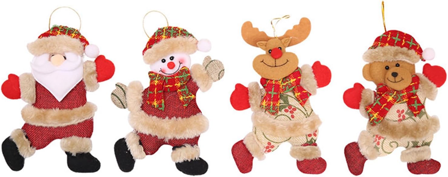 Porta il Natale a casa con il nostro incantevole set di 4 Babbo Natale pupazzo di neve e decorazioni pendenti per creare atmosfere festive Non solo queste decorazioni per albero di Natale servono come aggiunta alla tua decorazione, ma fanno anche amicizia Realizzati con tessuto, questi ciondoli natalizi sono robusti, facili da pulire e progettati per durare stagione dopo stagione Per familiari, studenti e impiegati che amano le vacanze e apprezzano la decorazione del festival Multiuso, questi ciondoli possono essere appesi all'albero di Natale, alla parete o anche in auto per diffondere le vacanze in qualsiasi ambiente