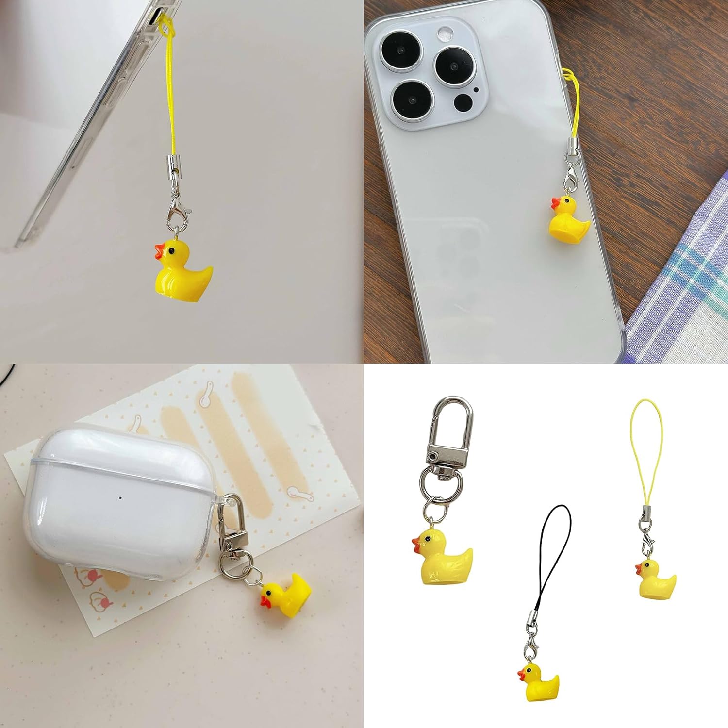 Abbraccia fascino e fantasia con questo adorabile ciondolo per telefono a forma di anatra gialla, una miscela di carinità e praticità per le tue esigenze di accessori mobili. Realizzato con materiali in resina, il ciondolo presenta un design unico che è sia leggero che resistente allo sbiadimento, garantendo un fascino di lunga durata. Questo ciondolo per telefono risuona particolarmente con il pubblico femminile che apprezza un tocco di dolcezza nei loro stili. Versatile nell'uso, può essere attaccato a telefoni, portafogli o zaini, rendendolo una deliziosa aggiunta al tuo essenziale quotidiano o un premuroso per una persona speciale. Migliora la tua dichiarazione di moda con questo ciondolo a forma di anatra gialla, un pezzo alla moda che aggiunge personalità ai tuoi effetti personali.